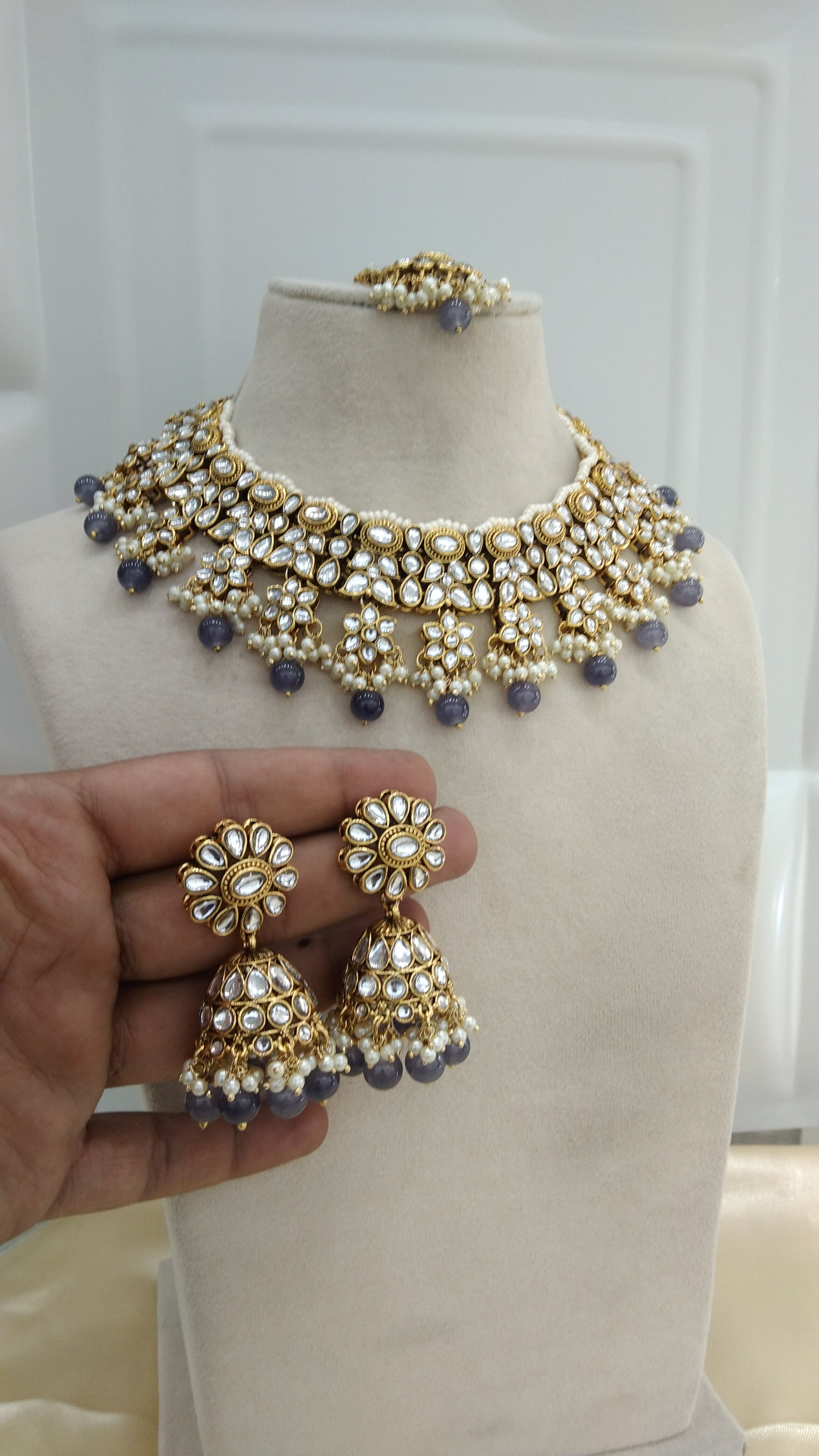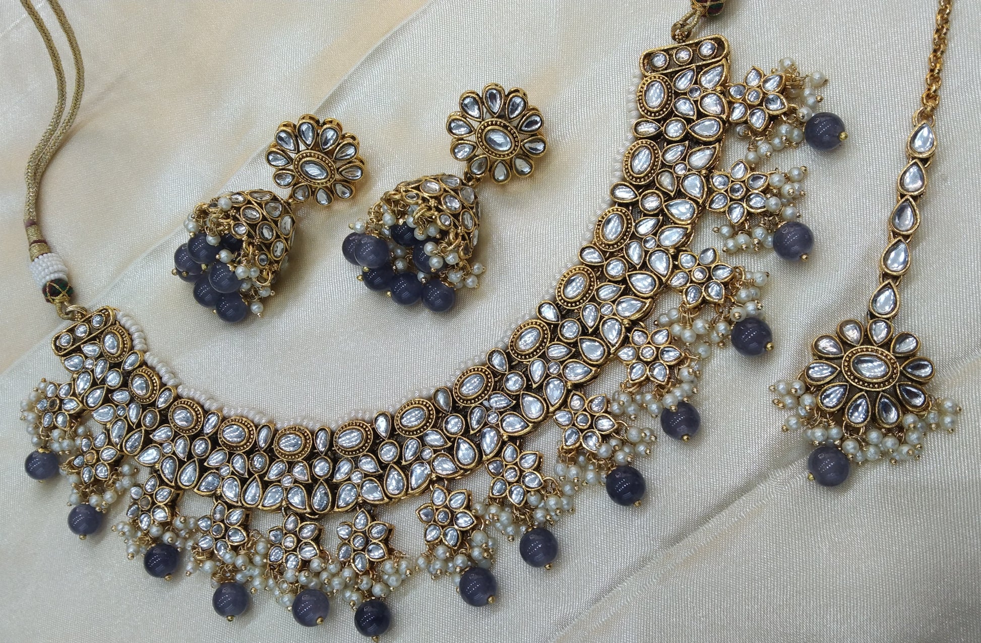 Ishani Grey kundan Indian Necklace Jewellery Set