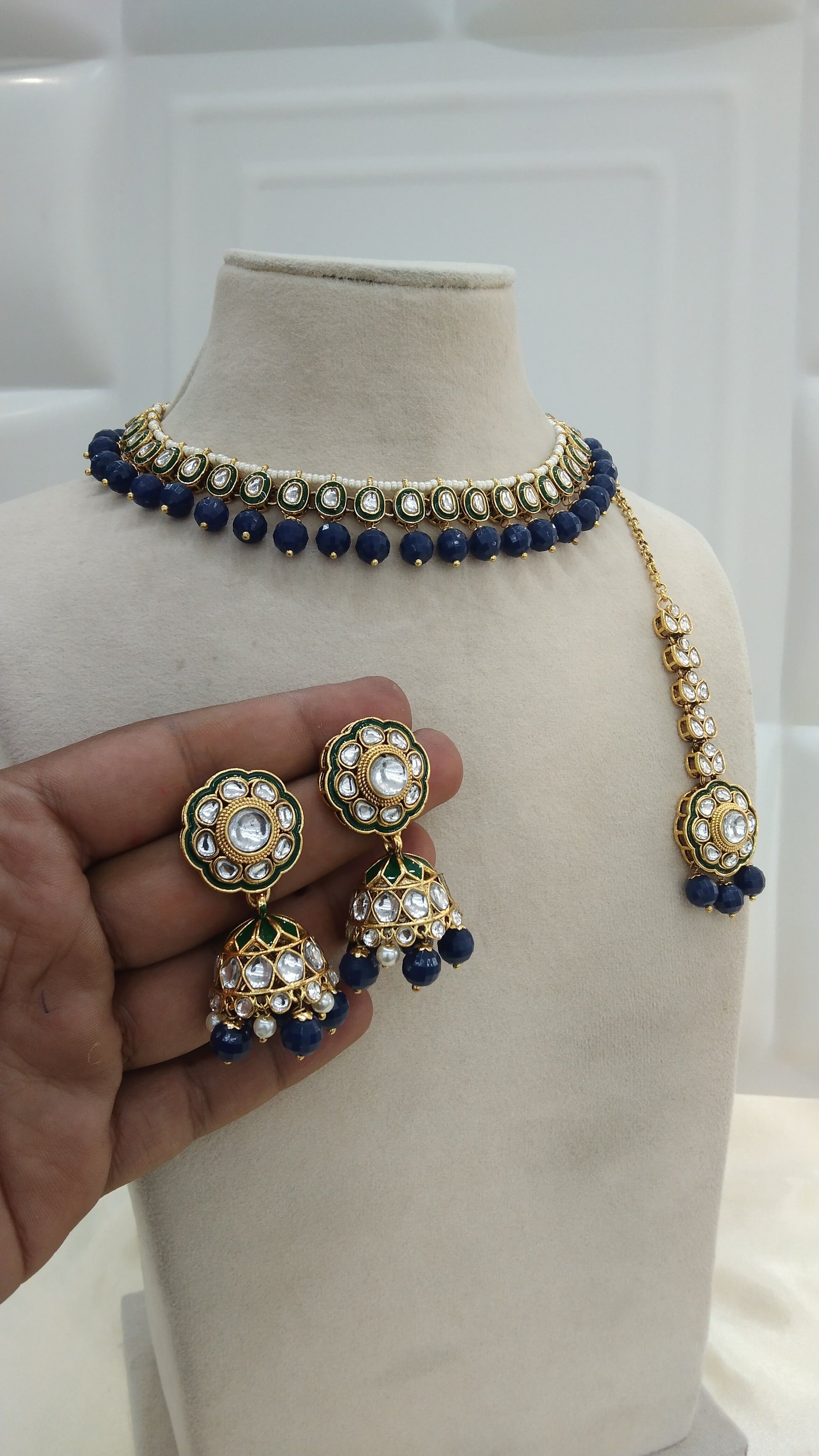 Honey Navy blue kundan Indian Necklace Jewellery Set