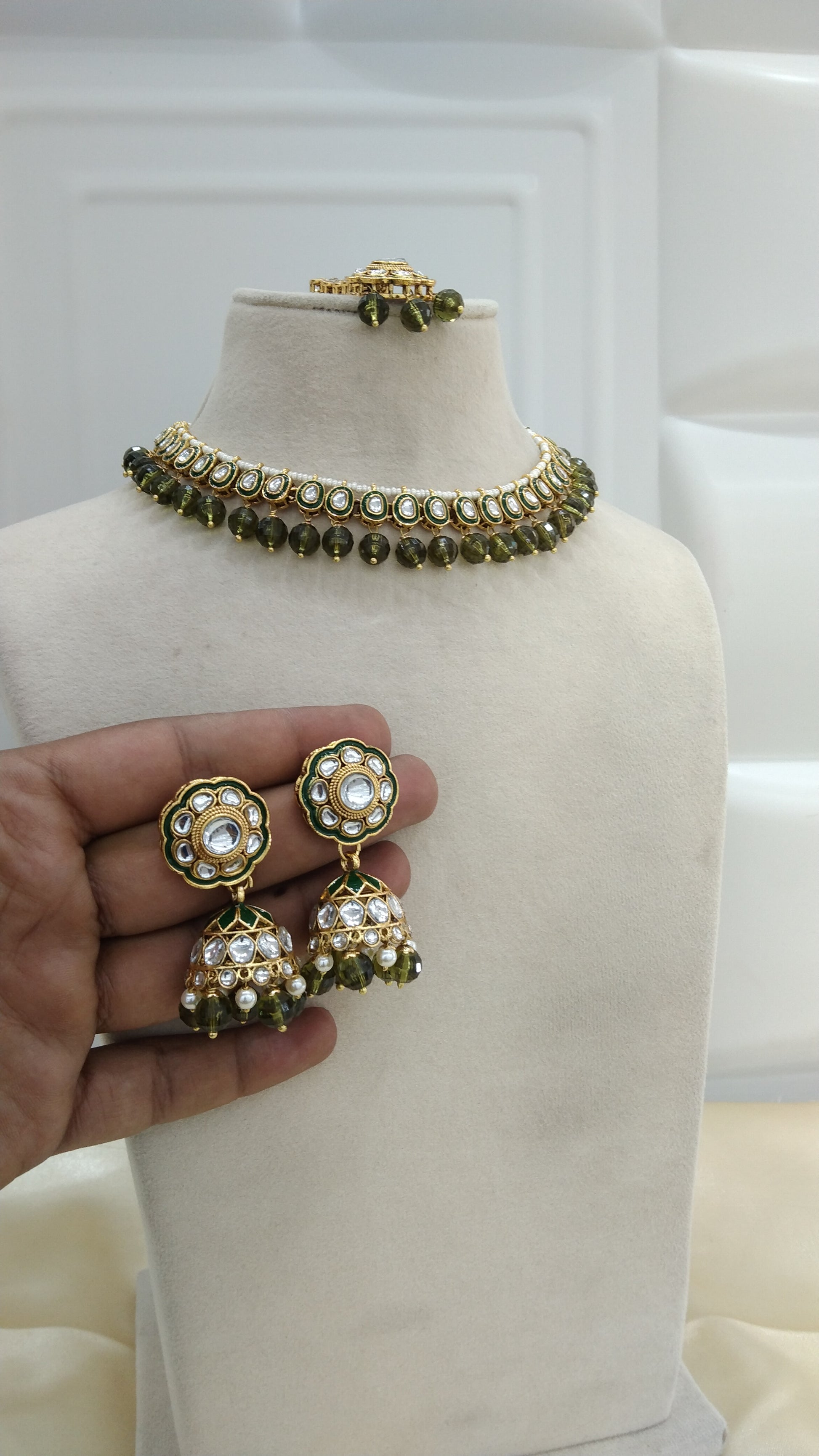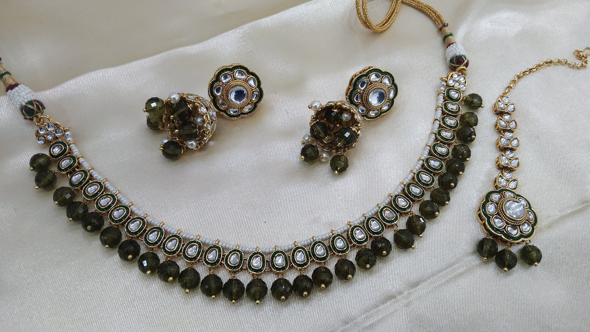 Honey Mehndi kundan Indian Necklace Jewellery Set
