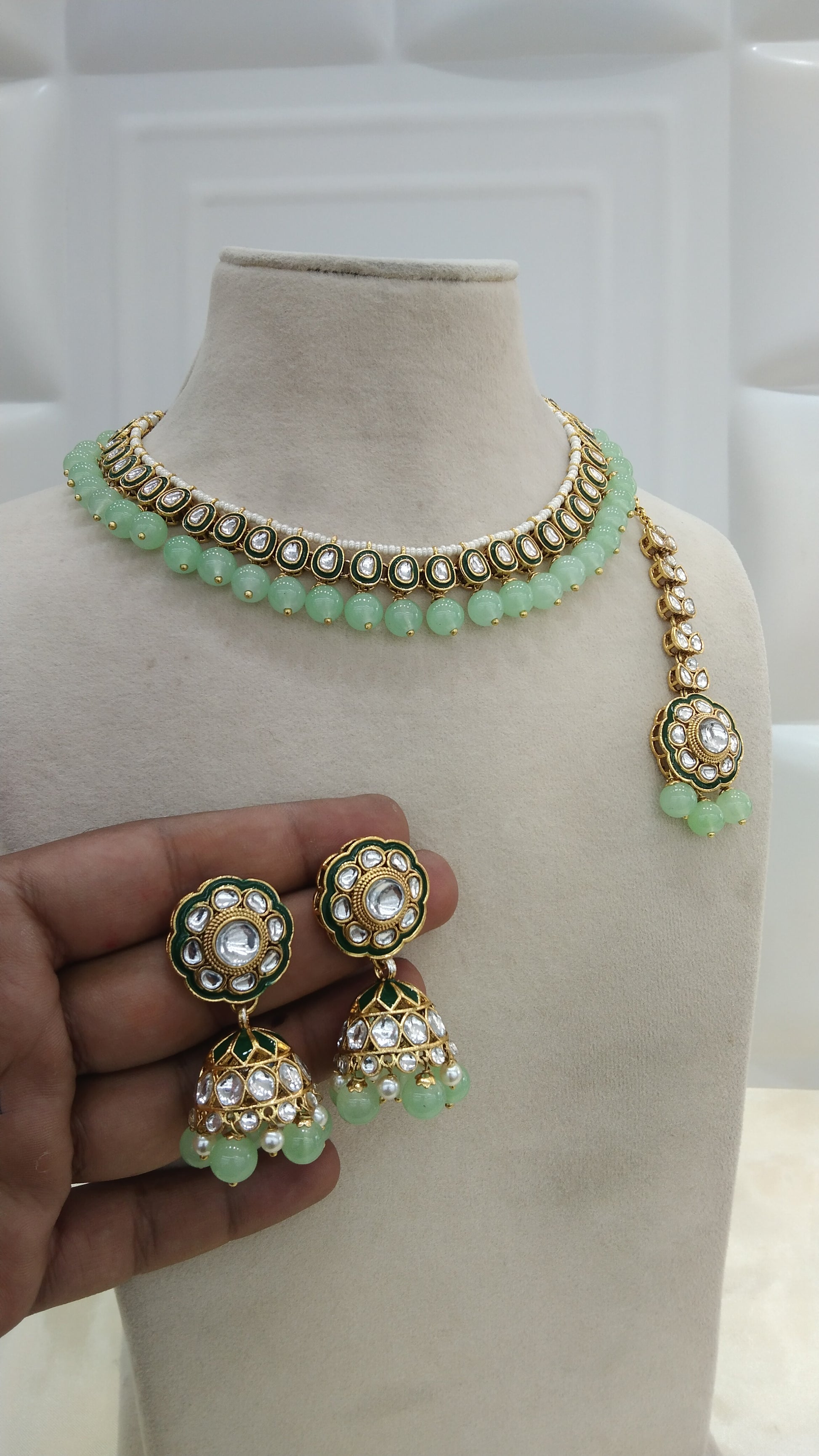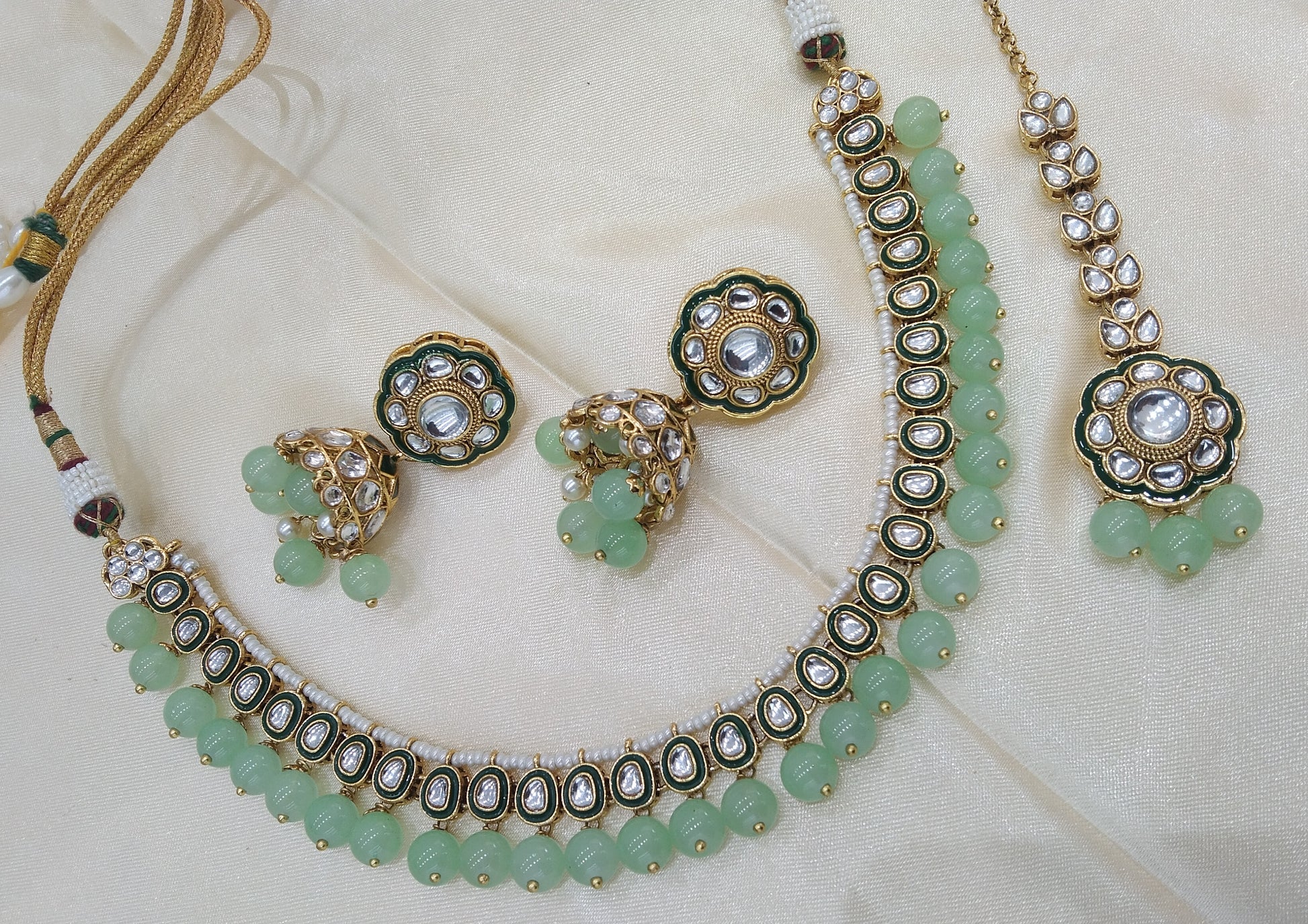 Honey Pista kundan Indian Necklace Jewellery Set