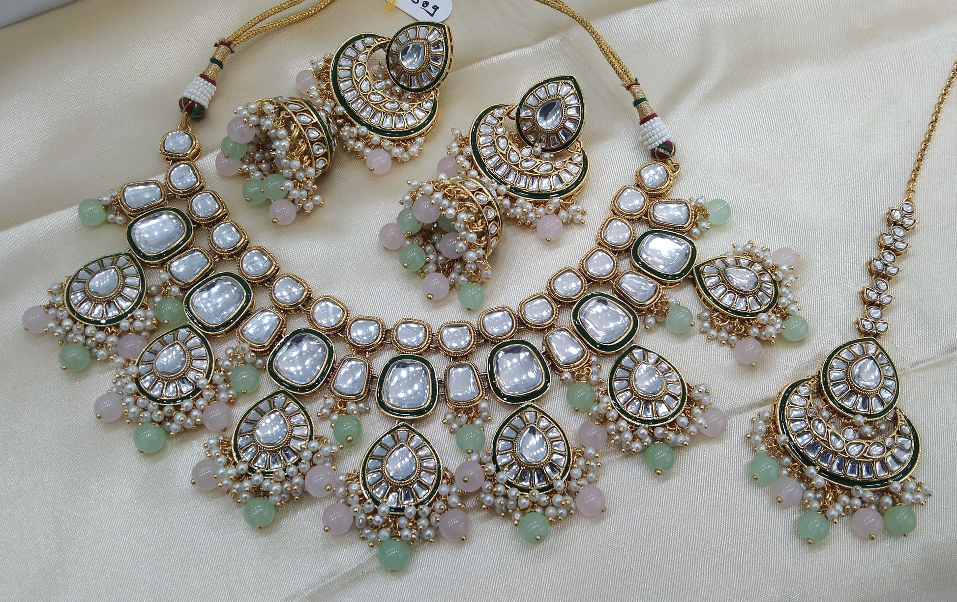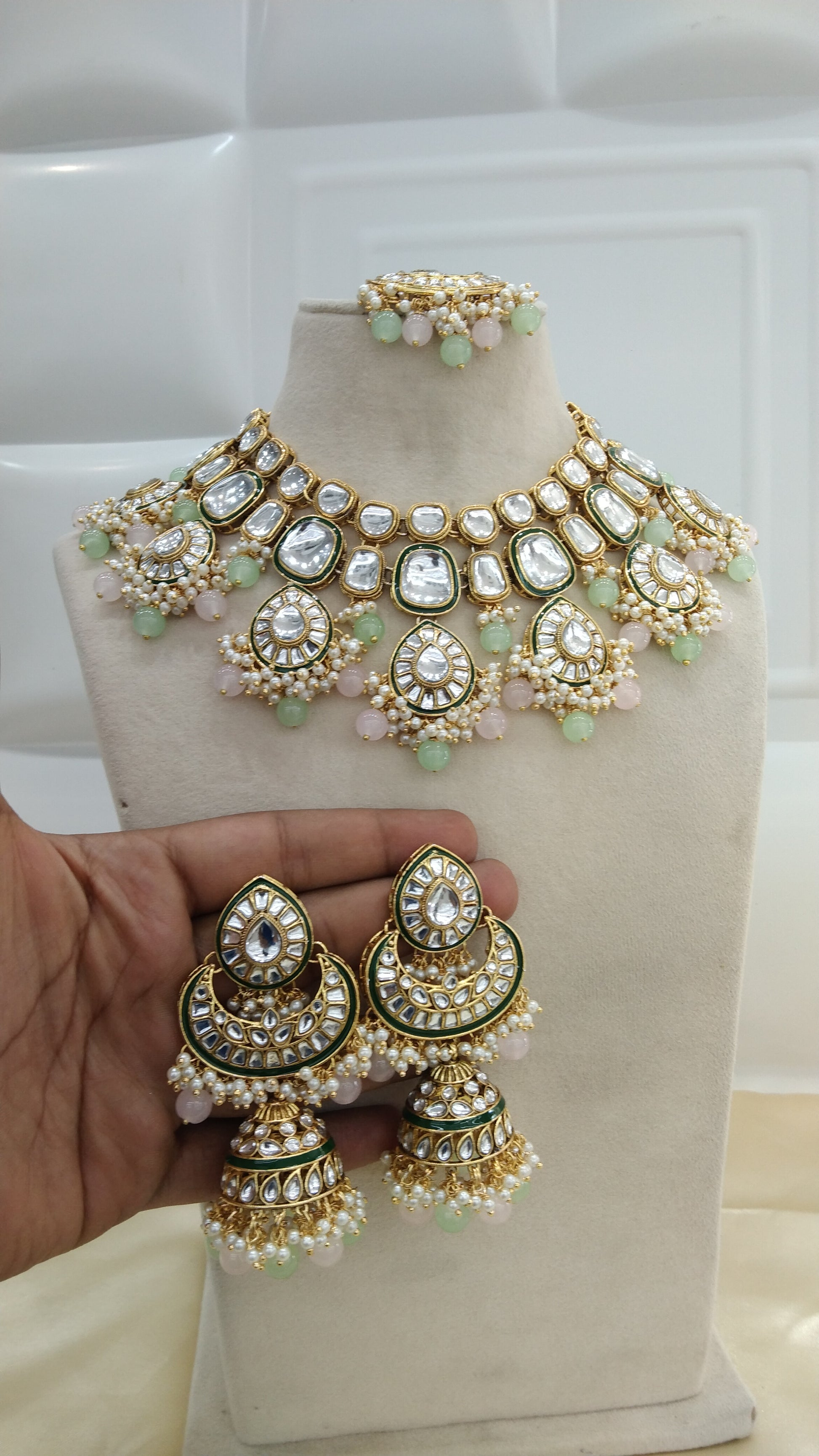 Harry Mint pink kundan Indian Necklace Jewellery Set