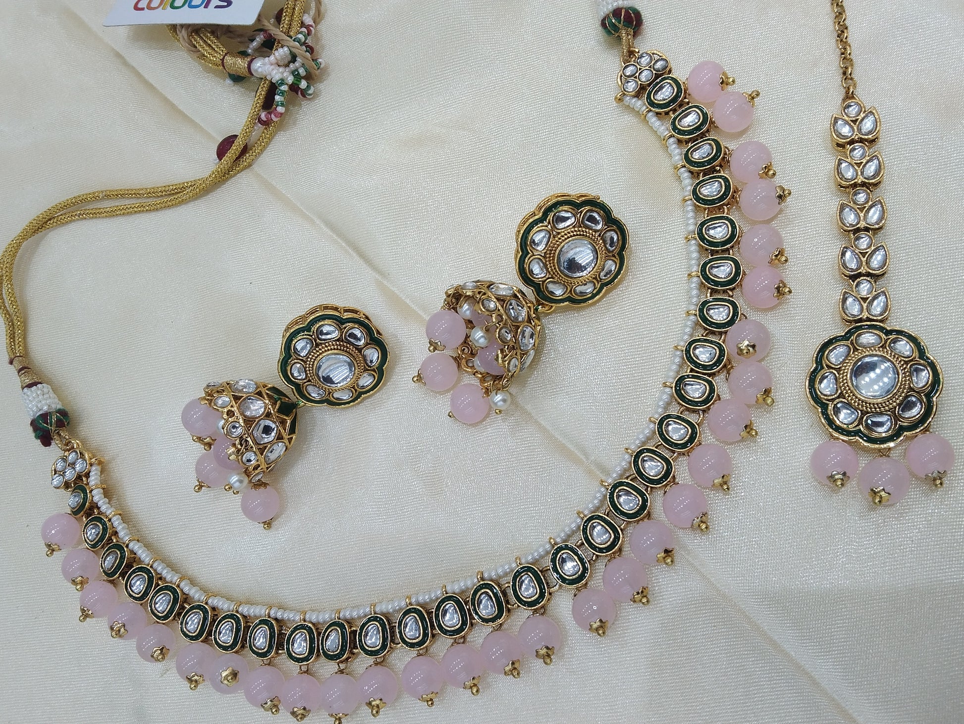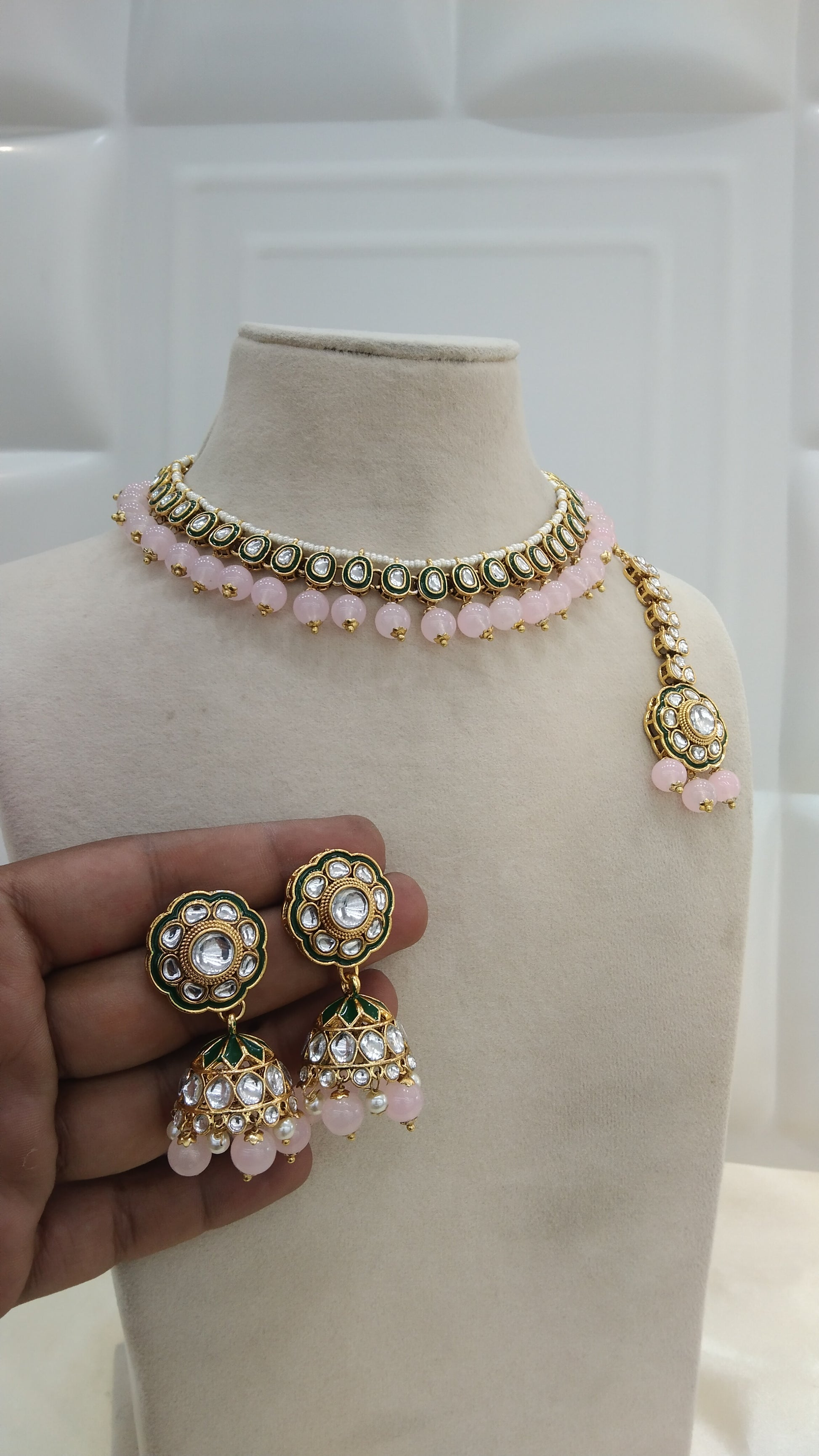 Honey Baby pink kundan Indian Necklace Jewellery Set
