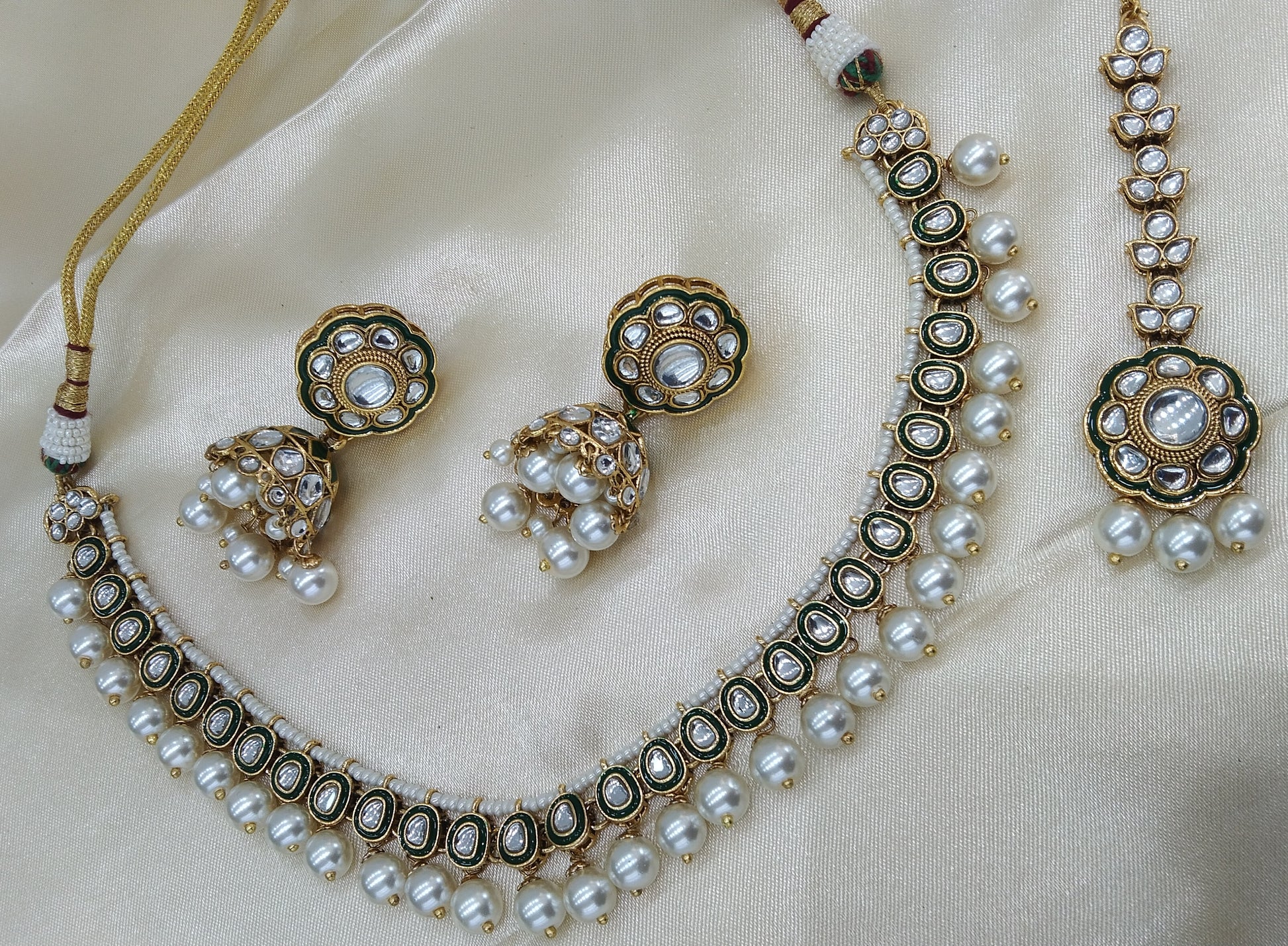 *Kundan necklace set with earrings and tikka.