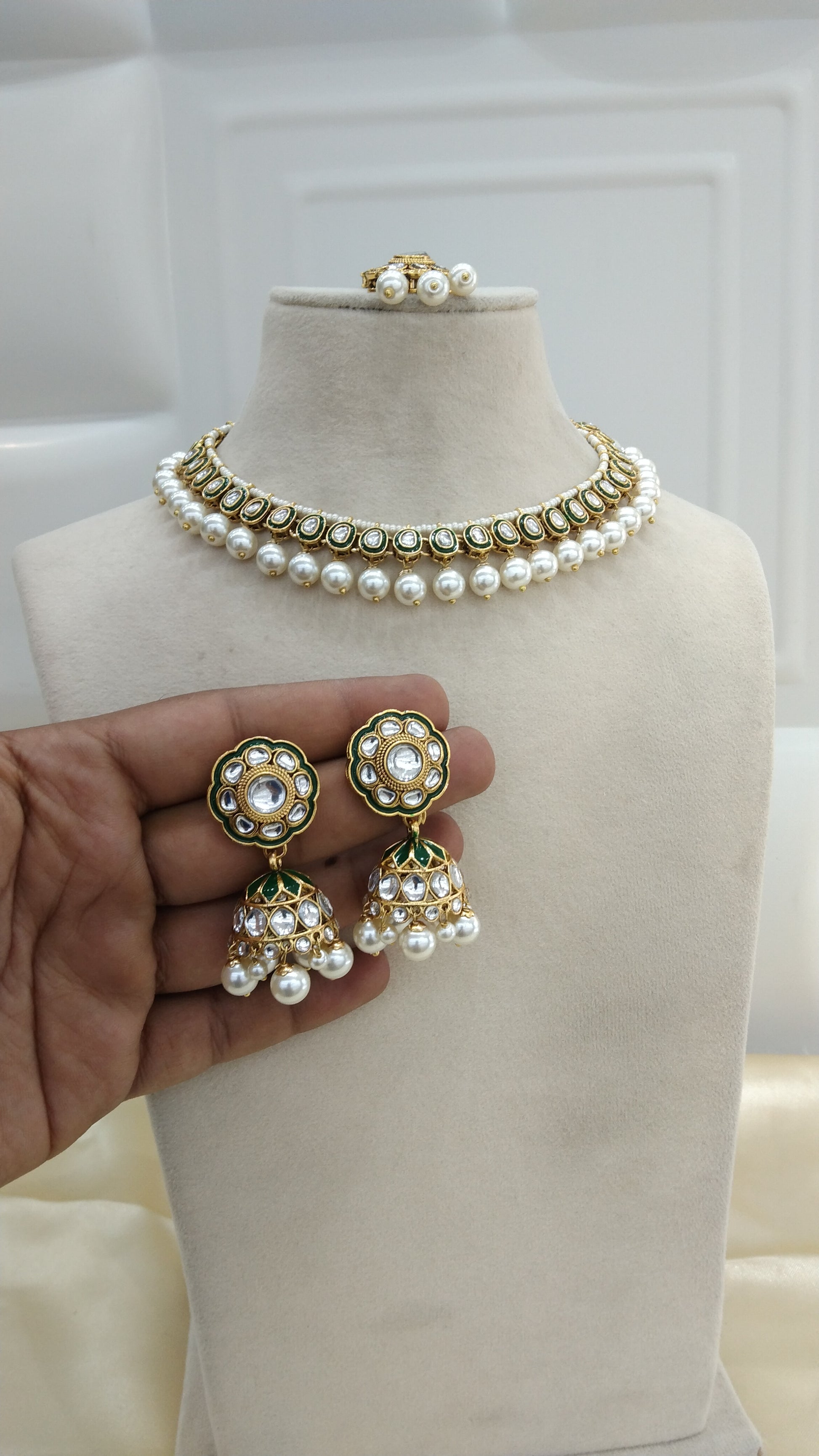 Honey White kundan Indian Necklace Jewellery Set