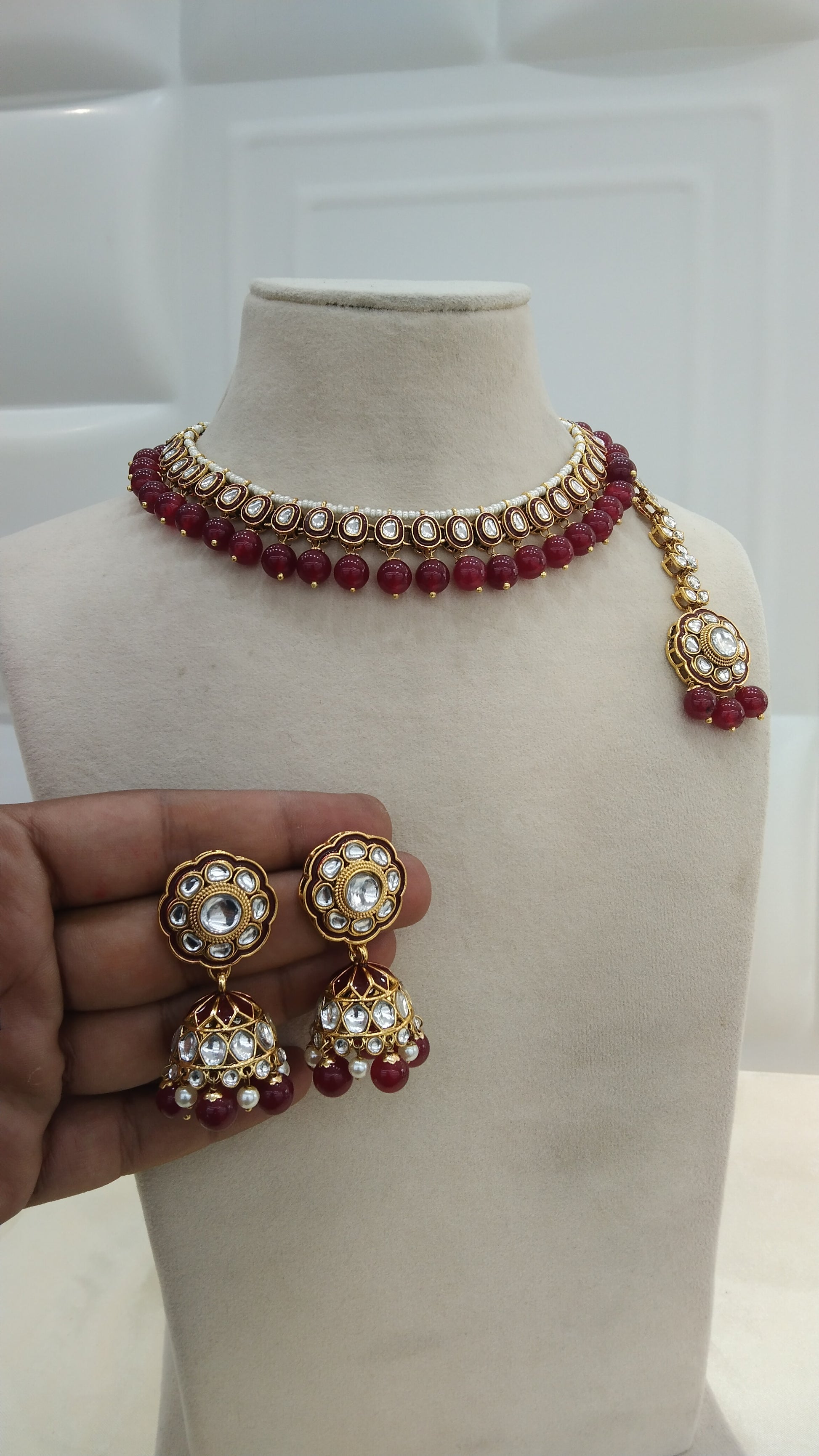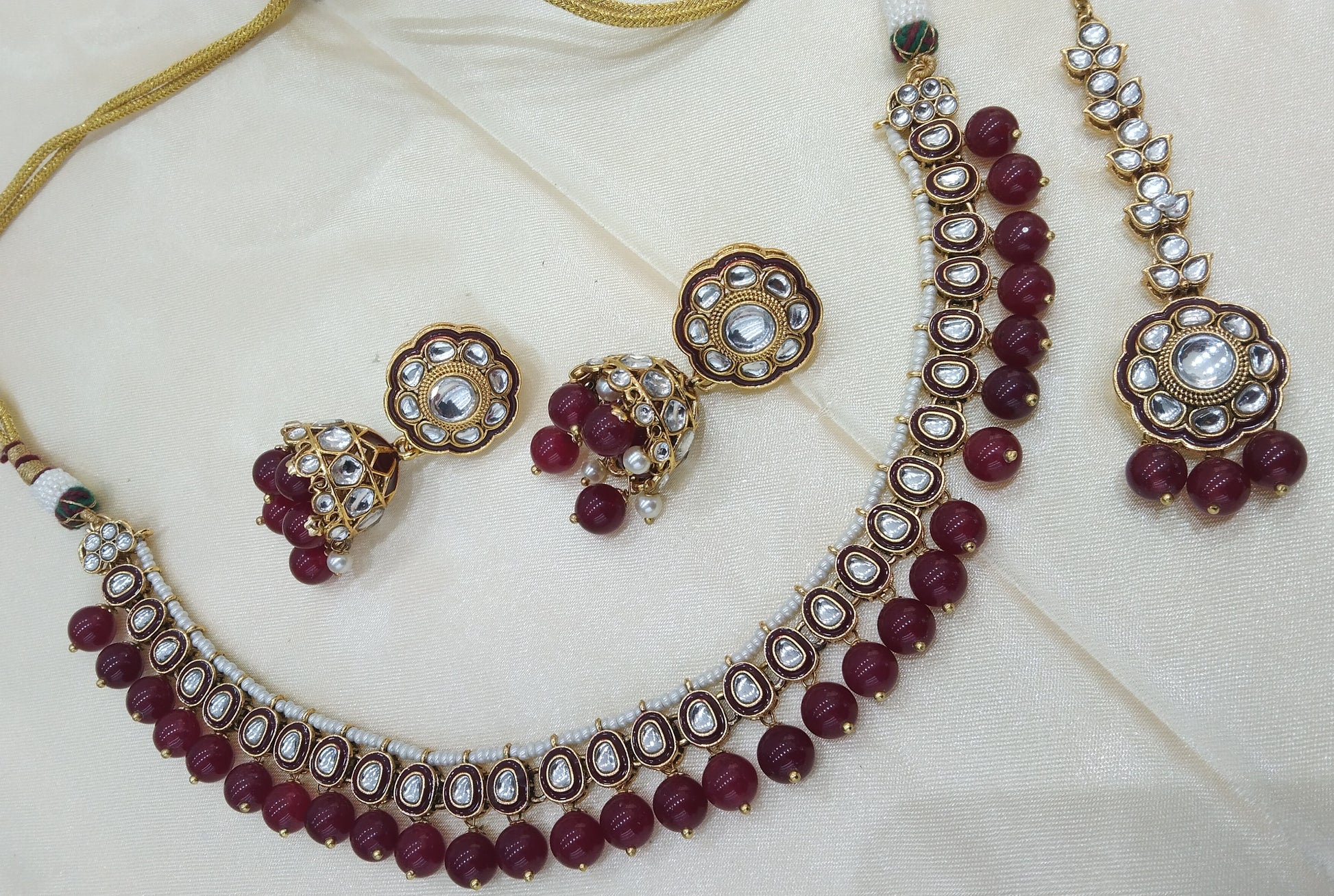 Honey Maroon kundan Indian Necklace Jewellery Set