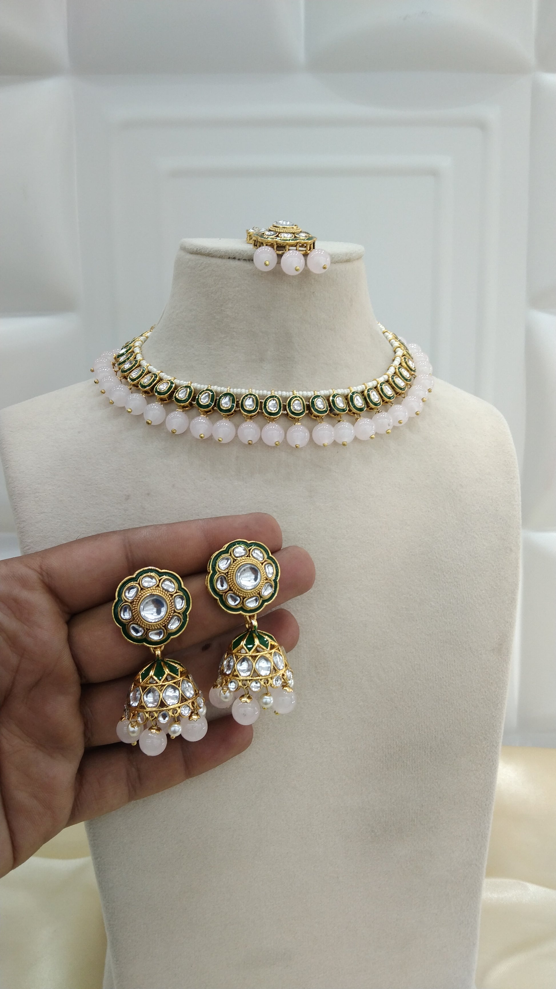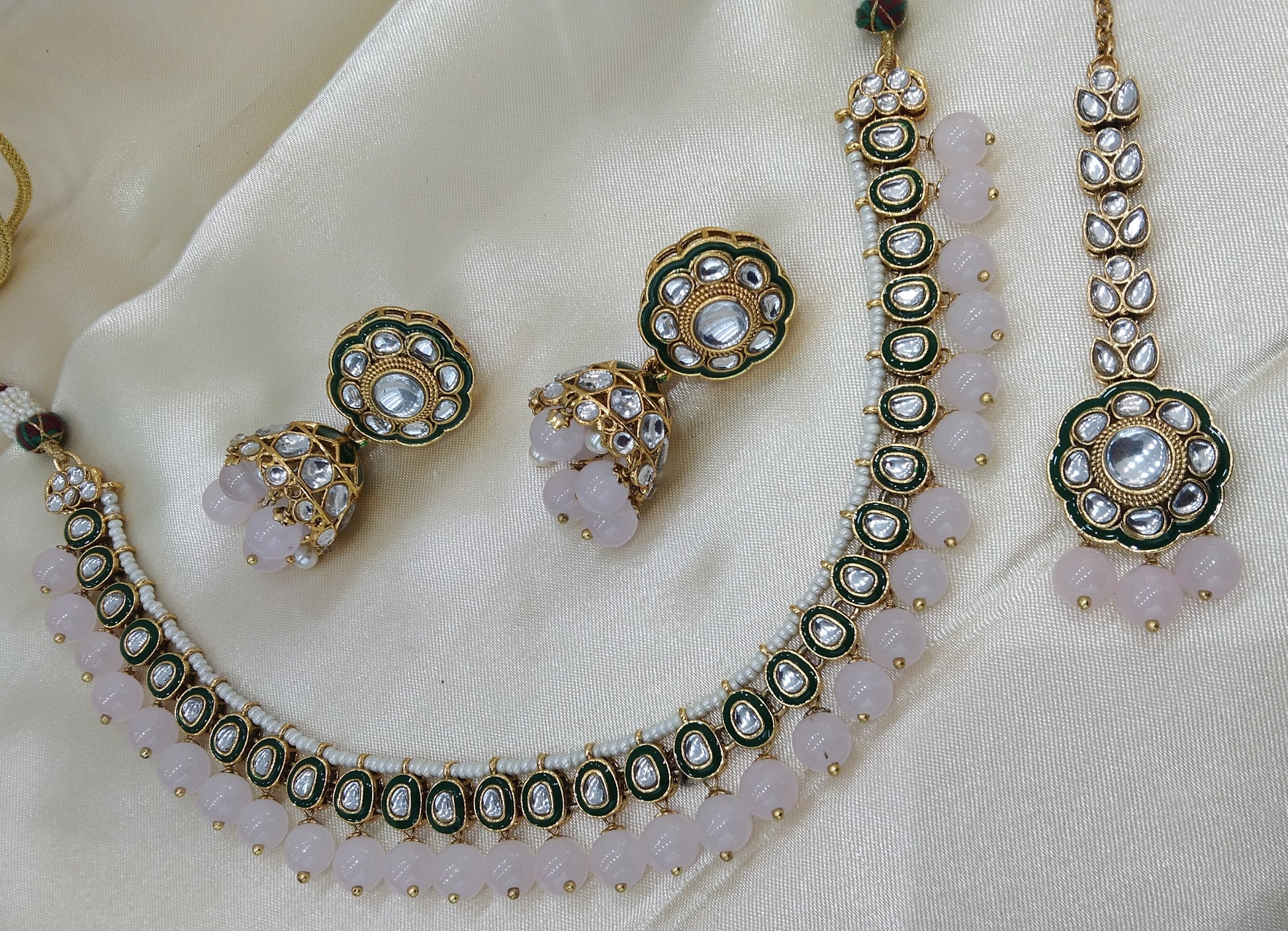 Honey Baby pink kundan Indian Necklace Jewellery Set