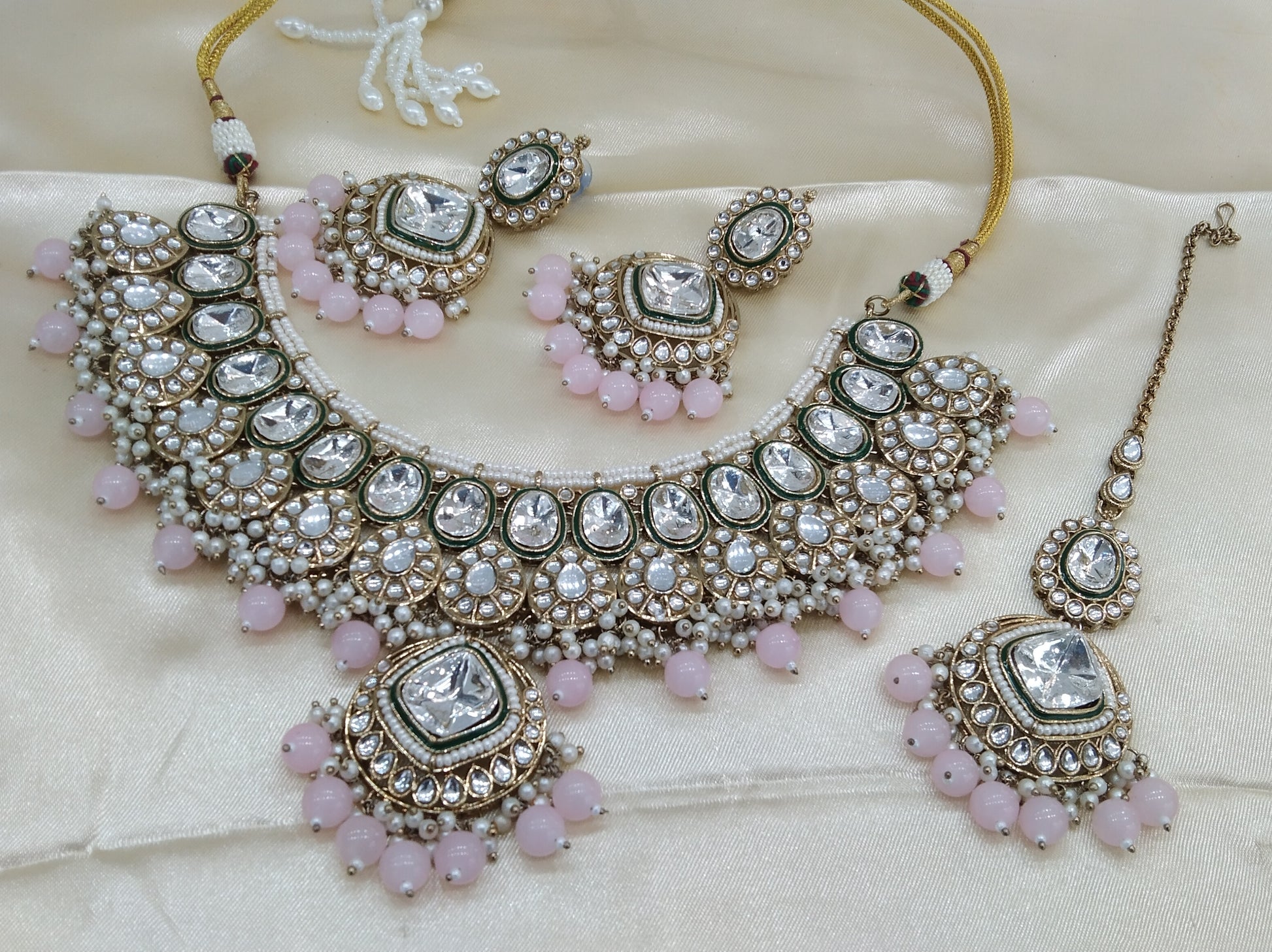 Jasika Baby Pink kundan Indian Necklace Jewellery Set