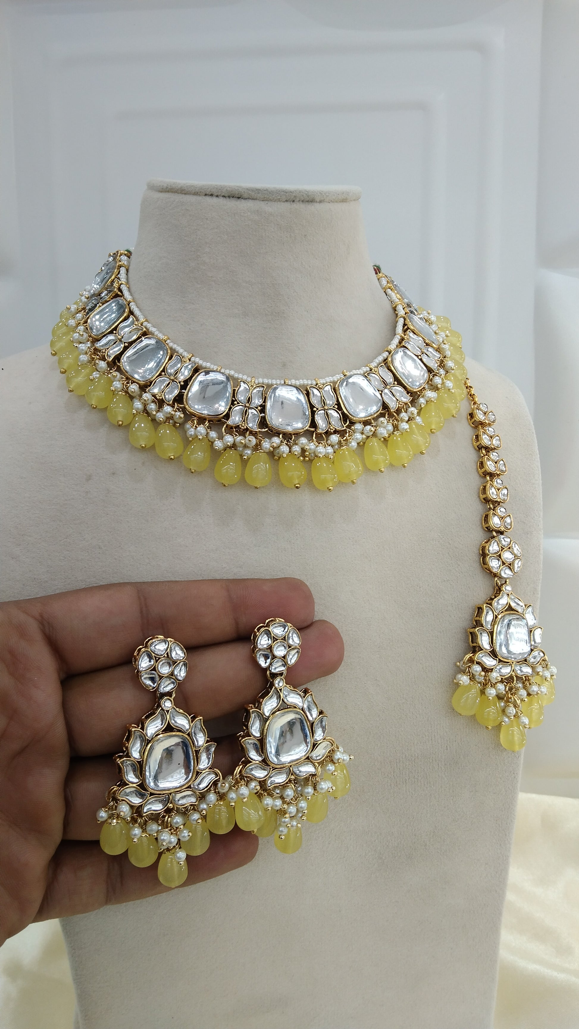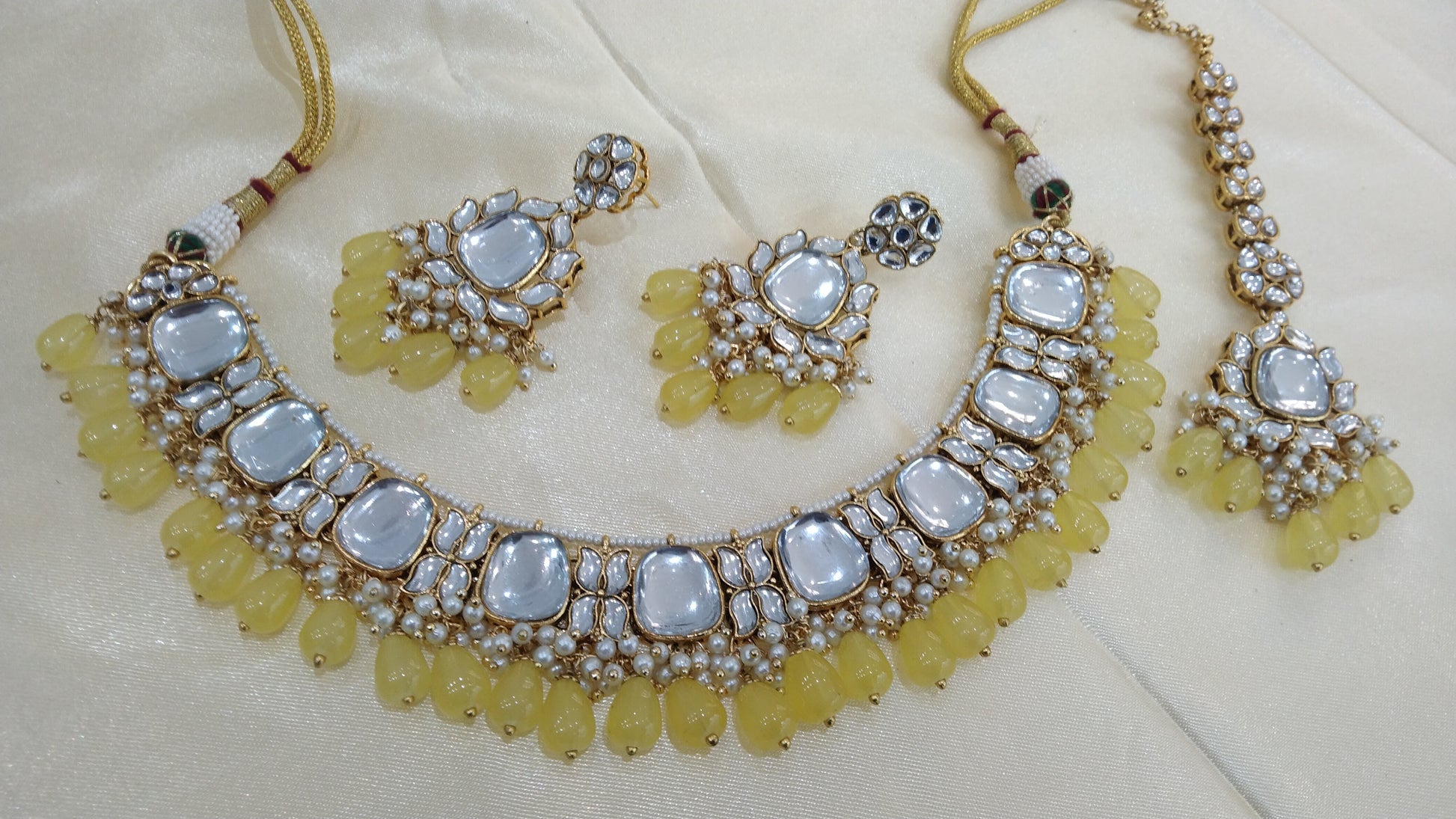 Janvi Yellow kundan Indian Necklace Jewellery Set
