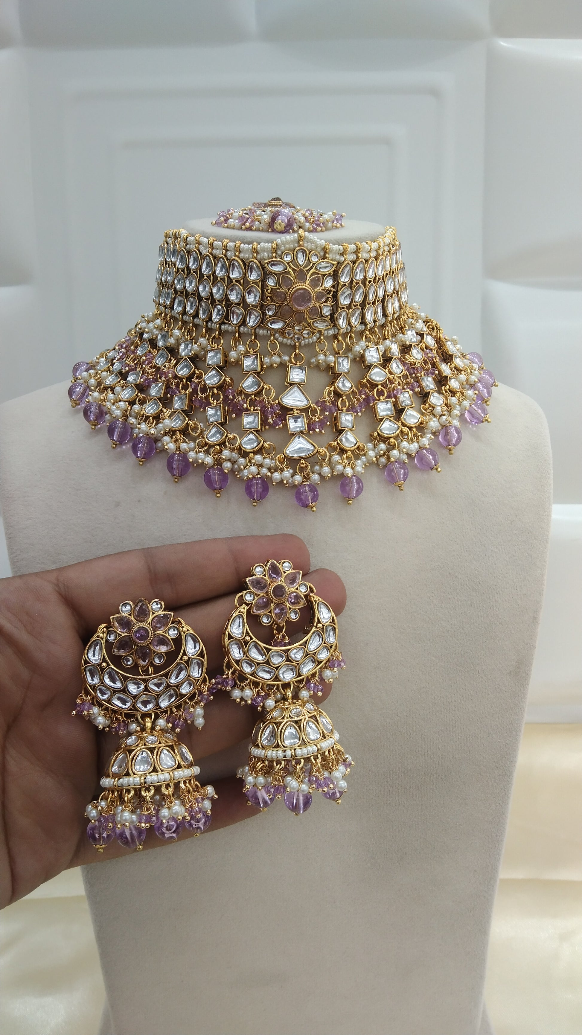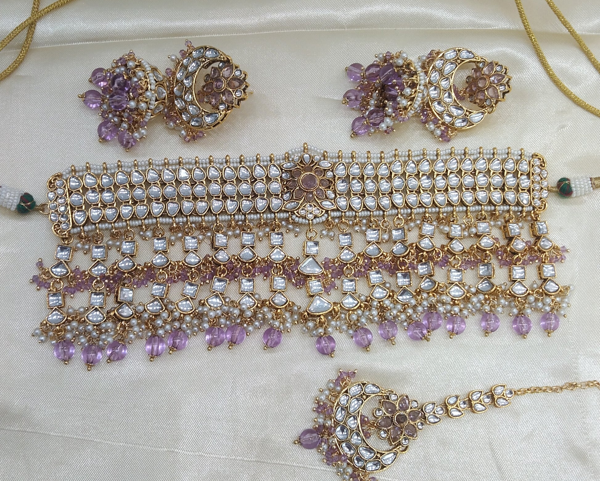Kashmir Lavender kundan Indian Choker Jewellery Set