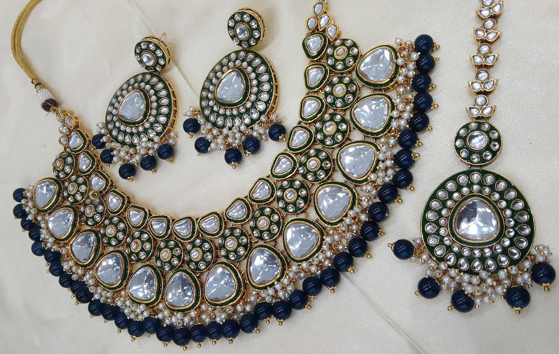 kayna Blue kundan Indian Necklace Jewellery Set