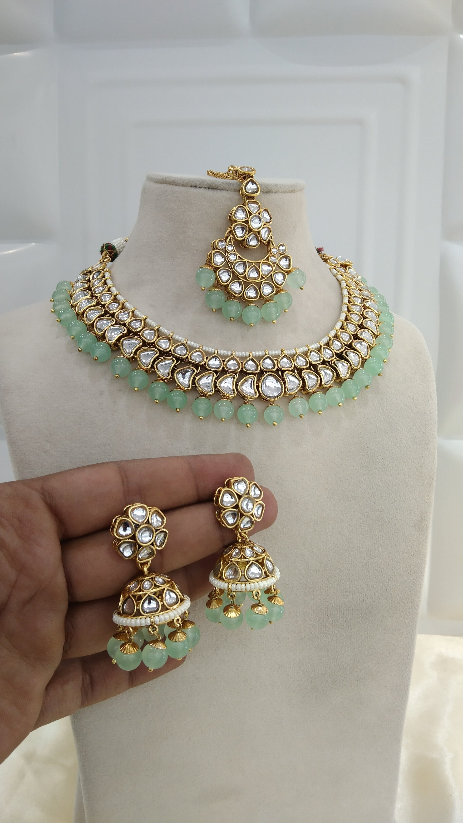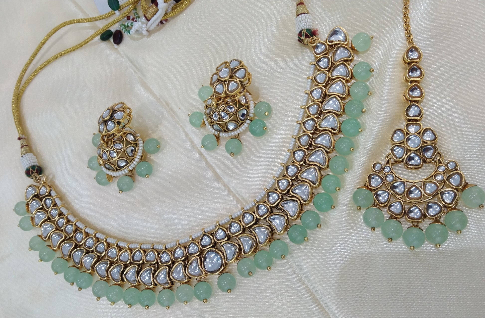 Kevi Pista kundan Indian Necklace Jewellery Set