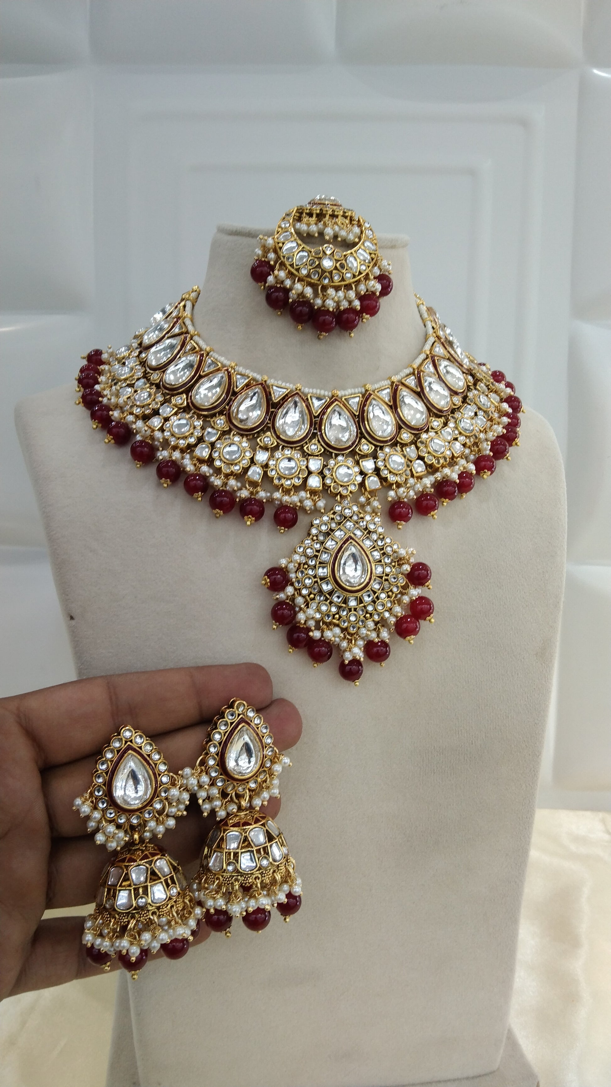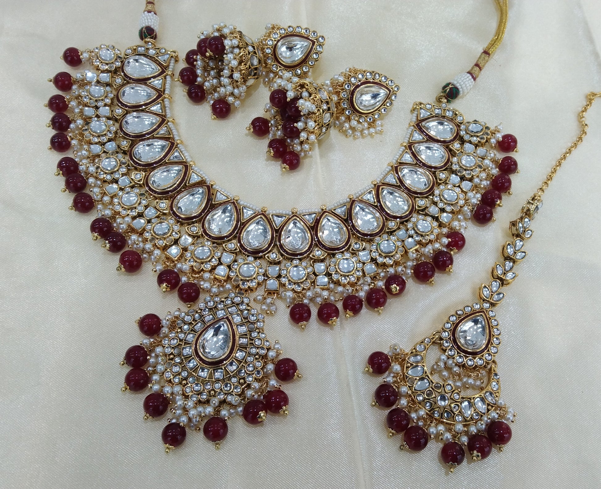 Kiran Maroon kundan Indian Necklace Jewellery Set