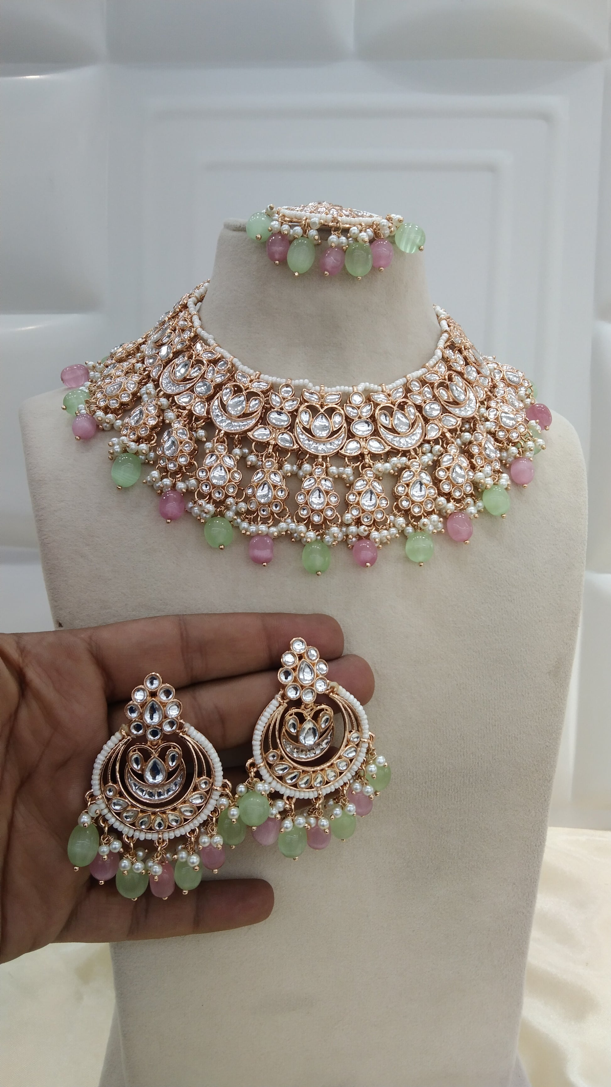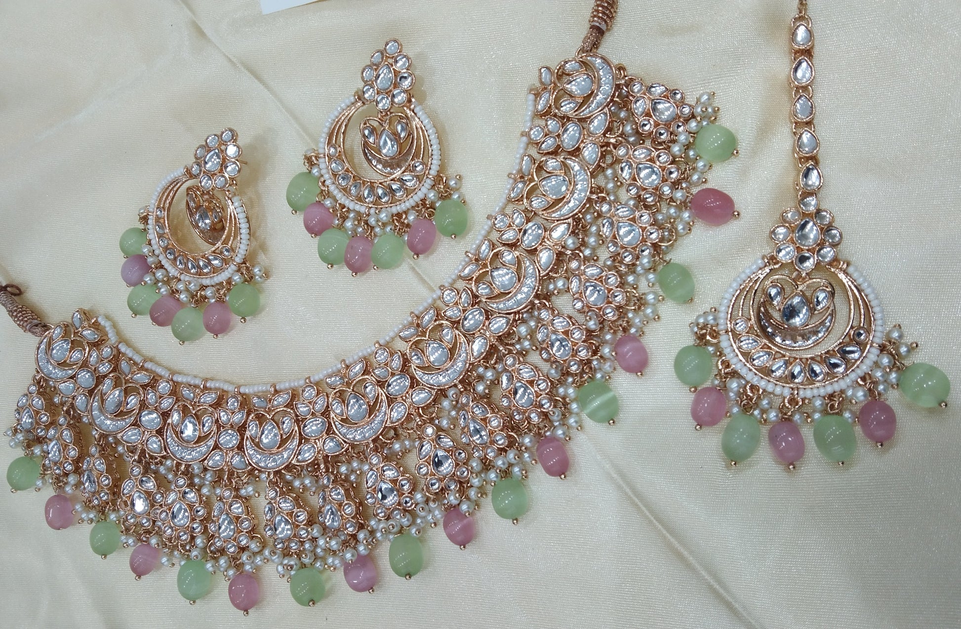 Kirna Pista pink kundan Indian Necklace Jewellery Set