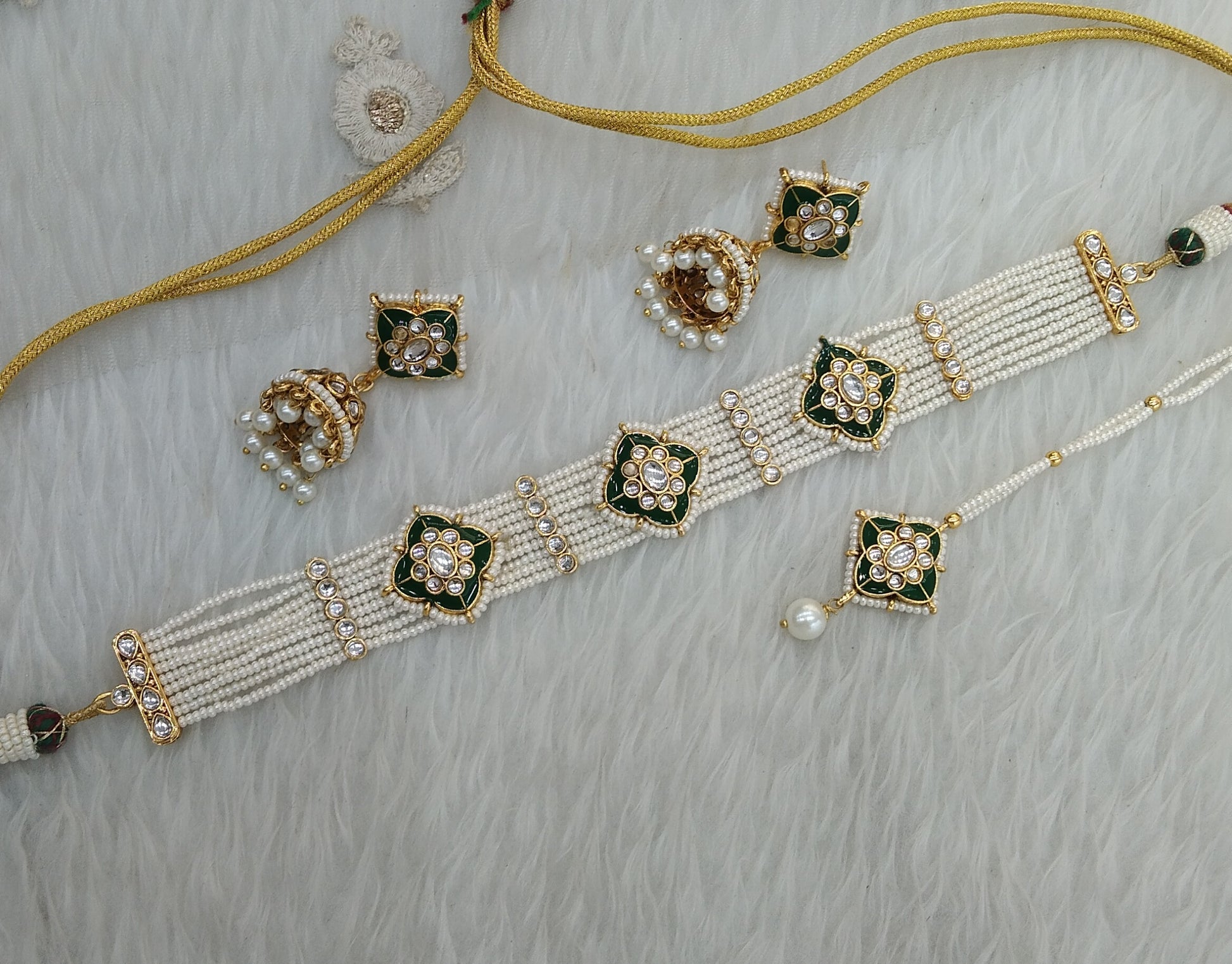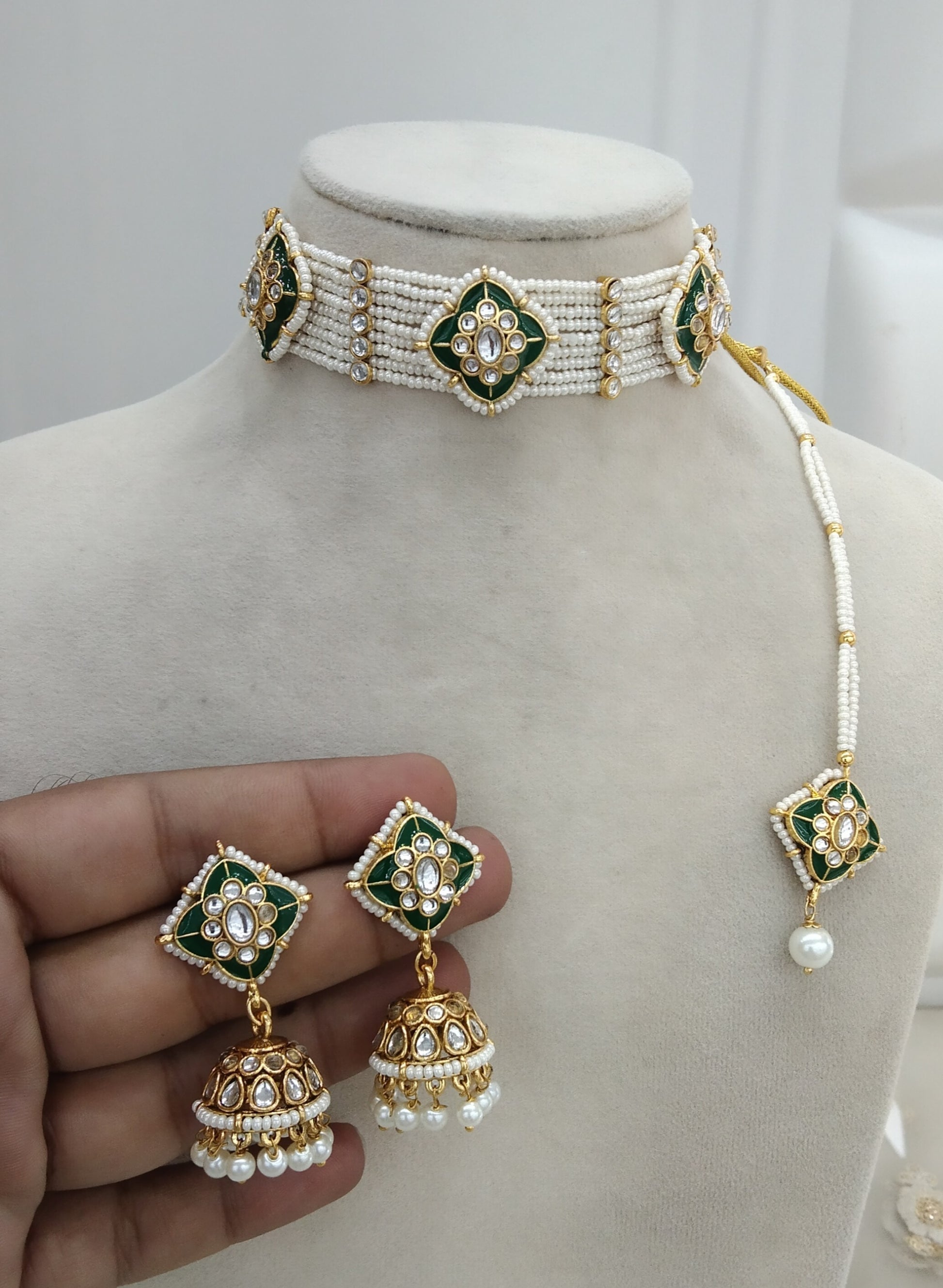 *Kundan Choker set with earrings and tikka.