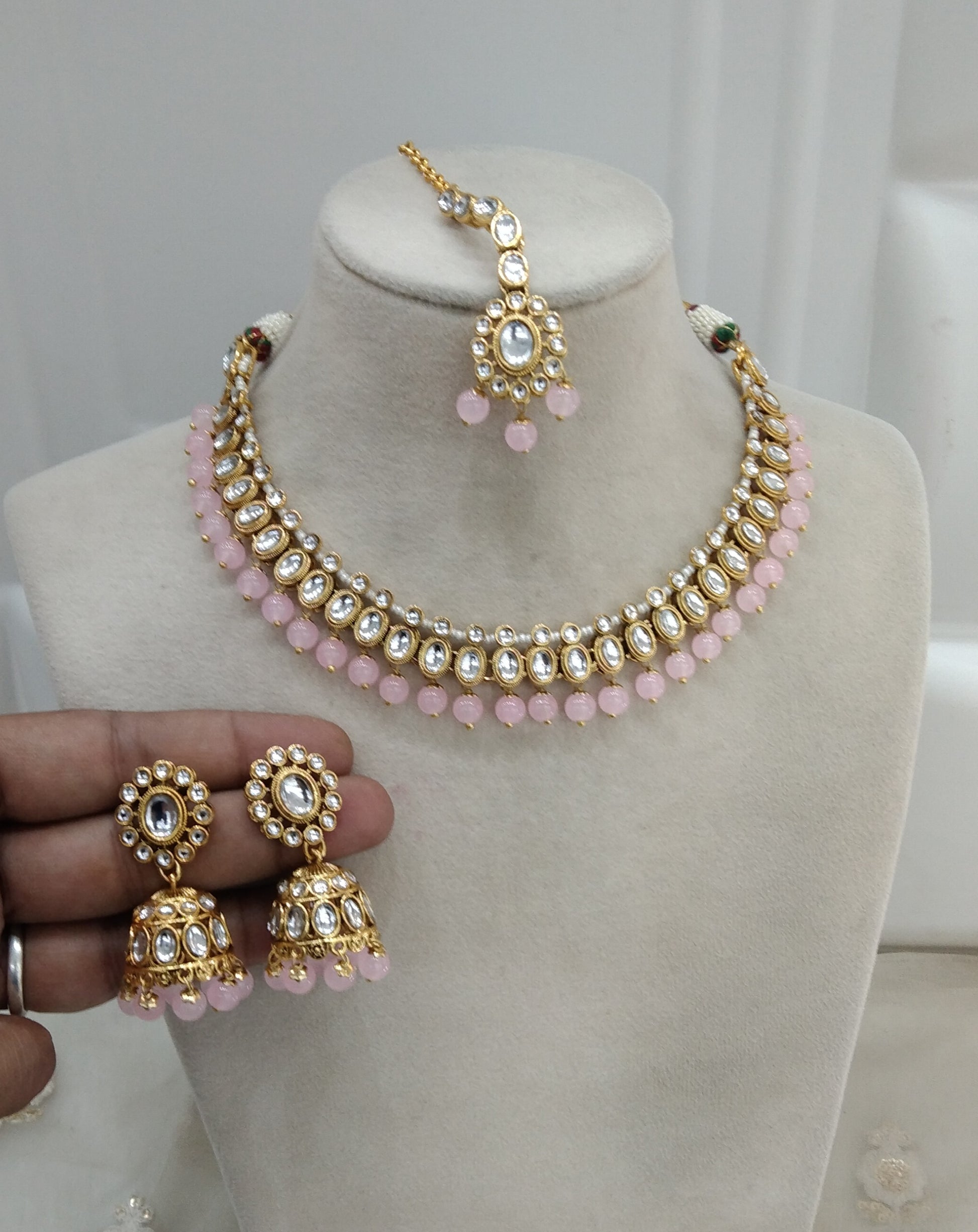 Kundan Jewelry Necklacea Baby Pink Laksha Set