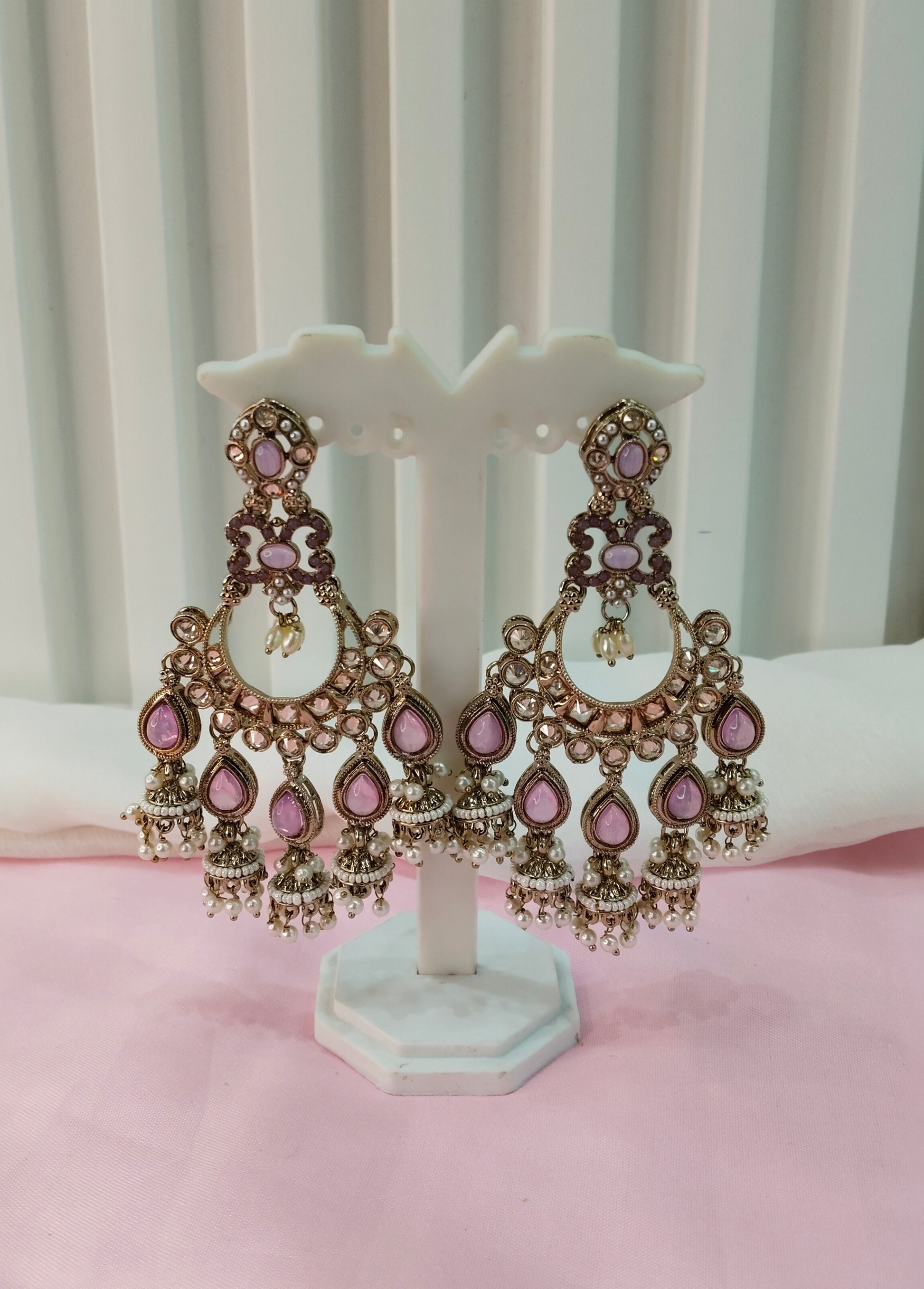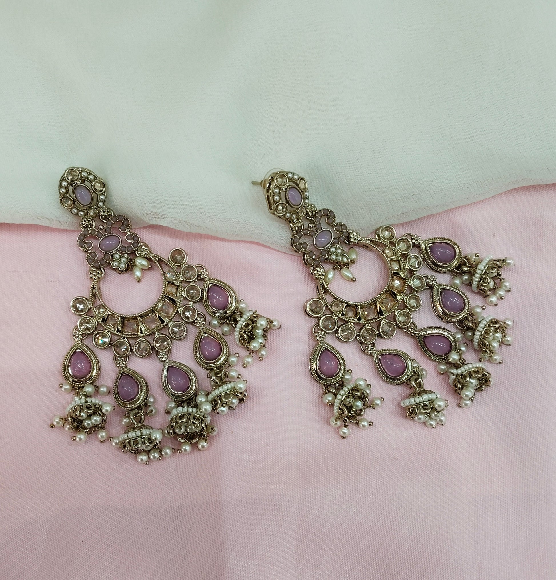 Lavender Antique Gold Chandbali Bollywood Earrings Paavni Set