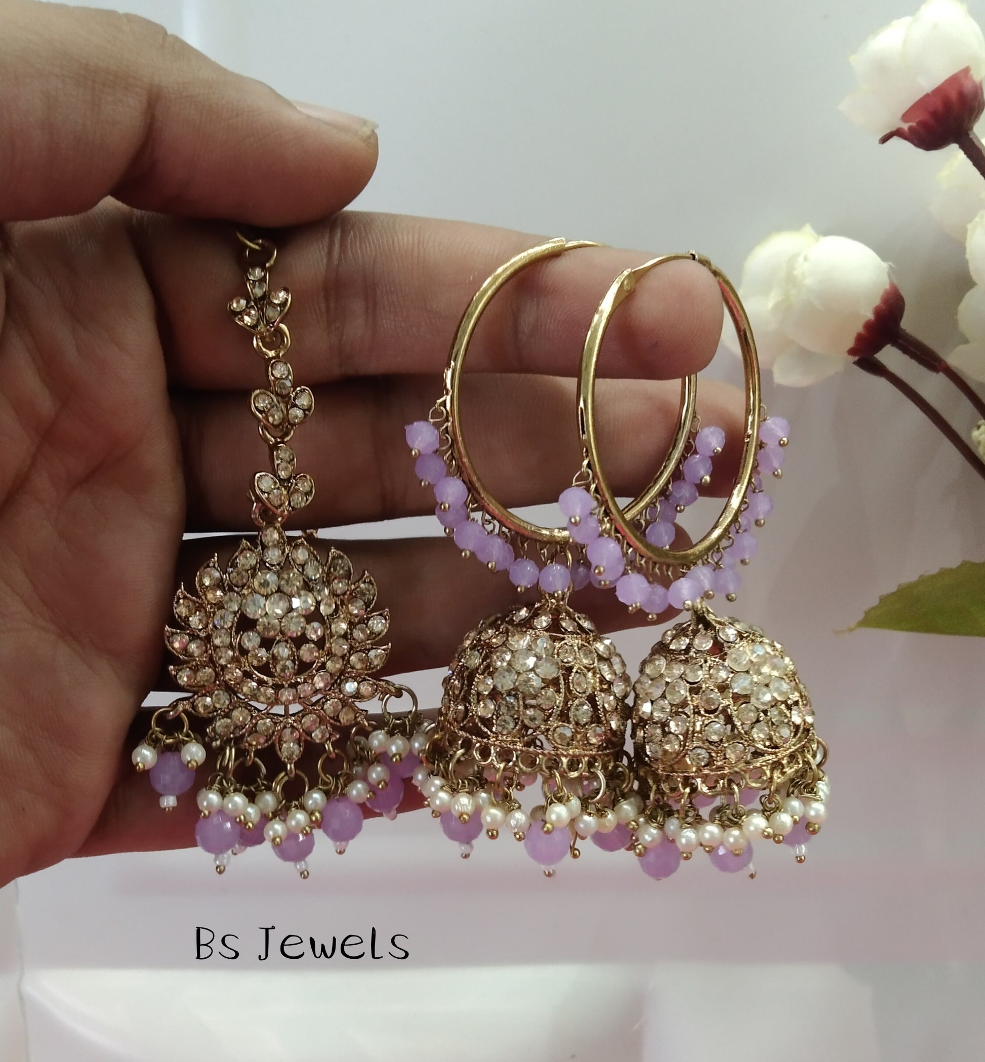 Lavender Bali Jhumka Arsh Bollywood Earrings