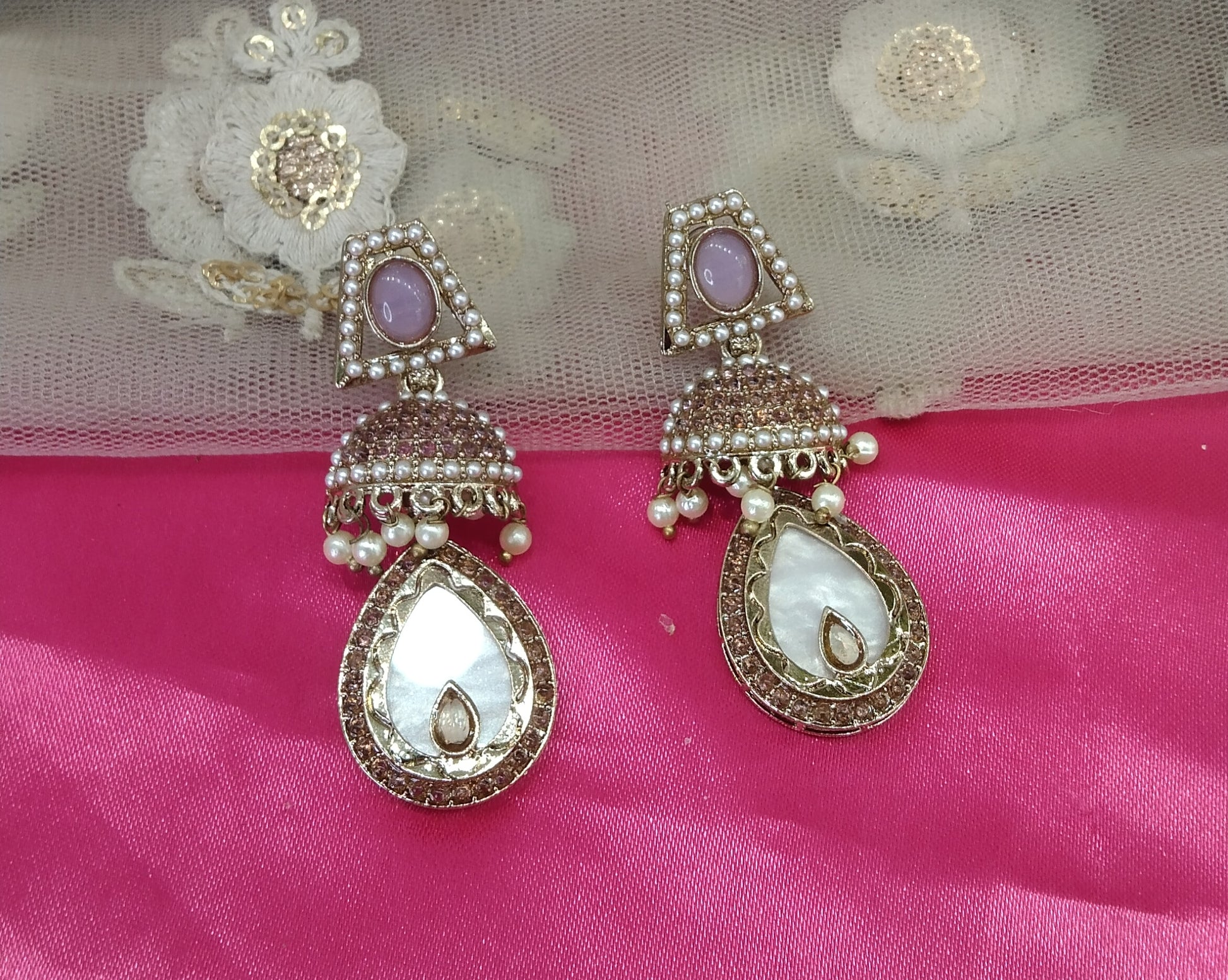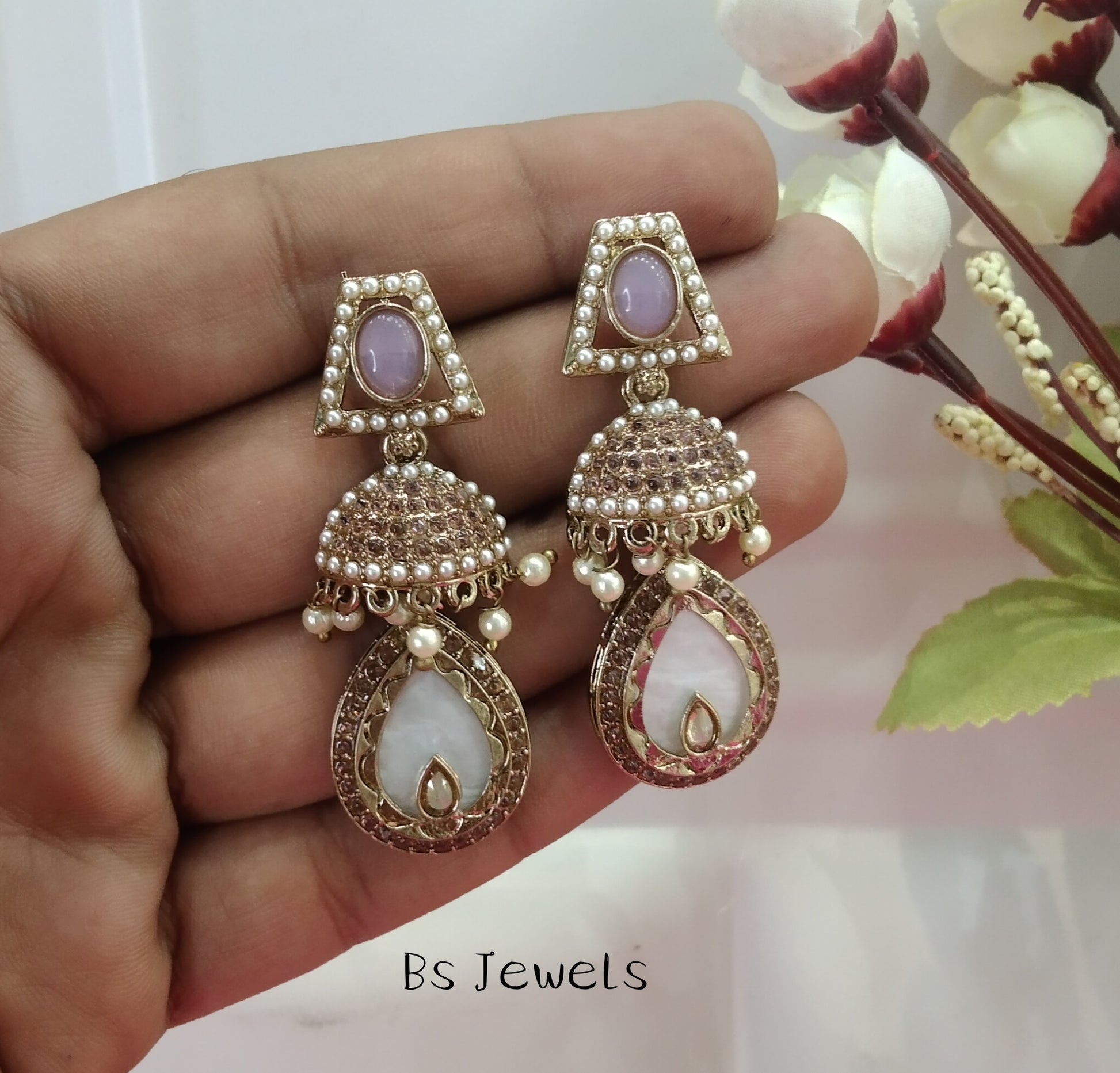 Lavender Champagne Gold Mannat Bollywood Earrings