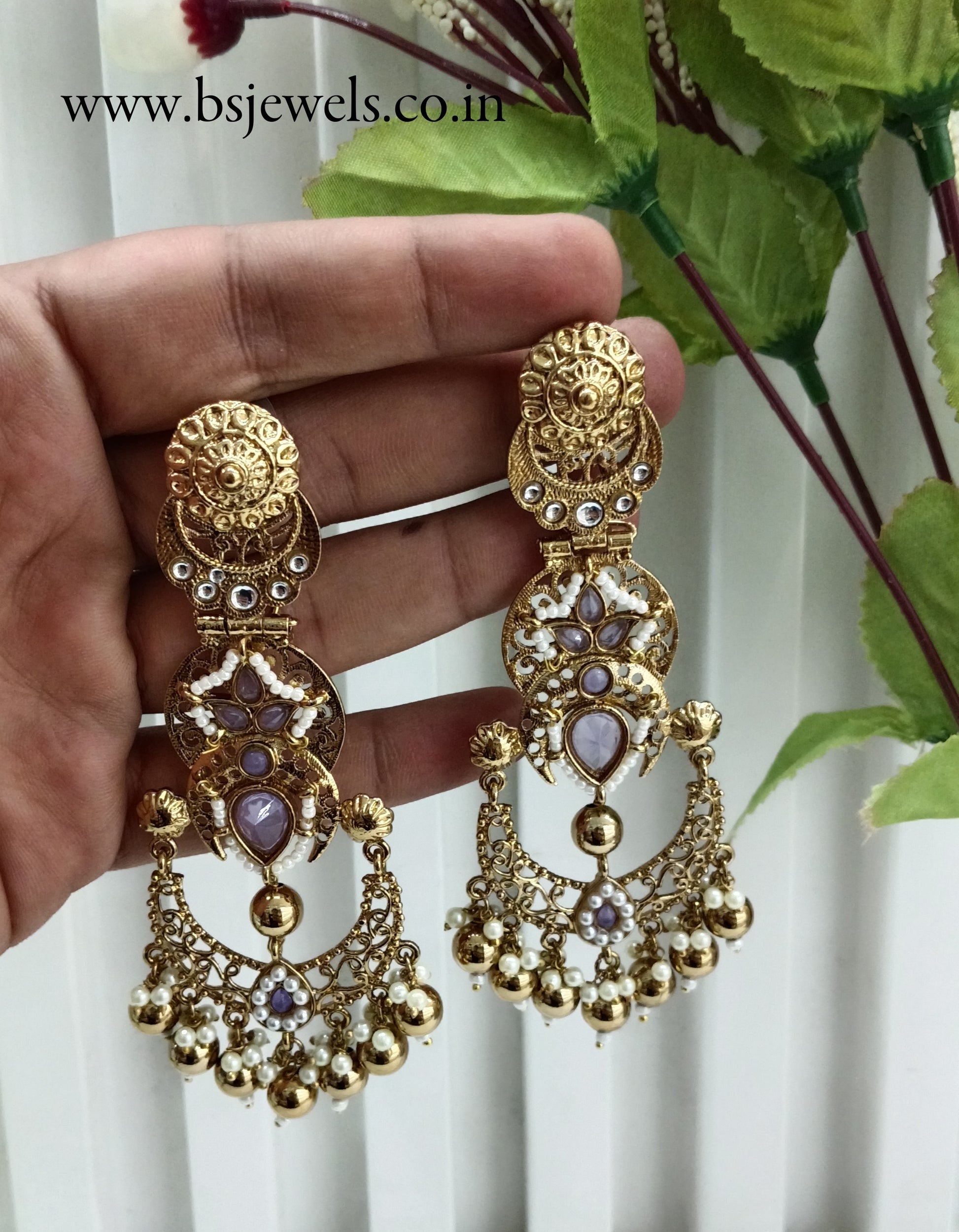 Lavender Kundan Chandbali Bollywood Shon Earrings