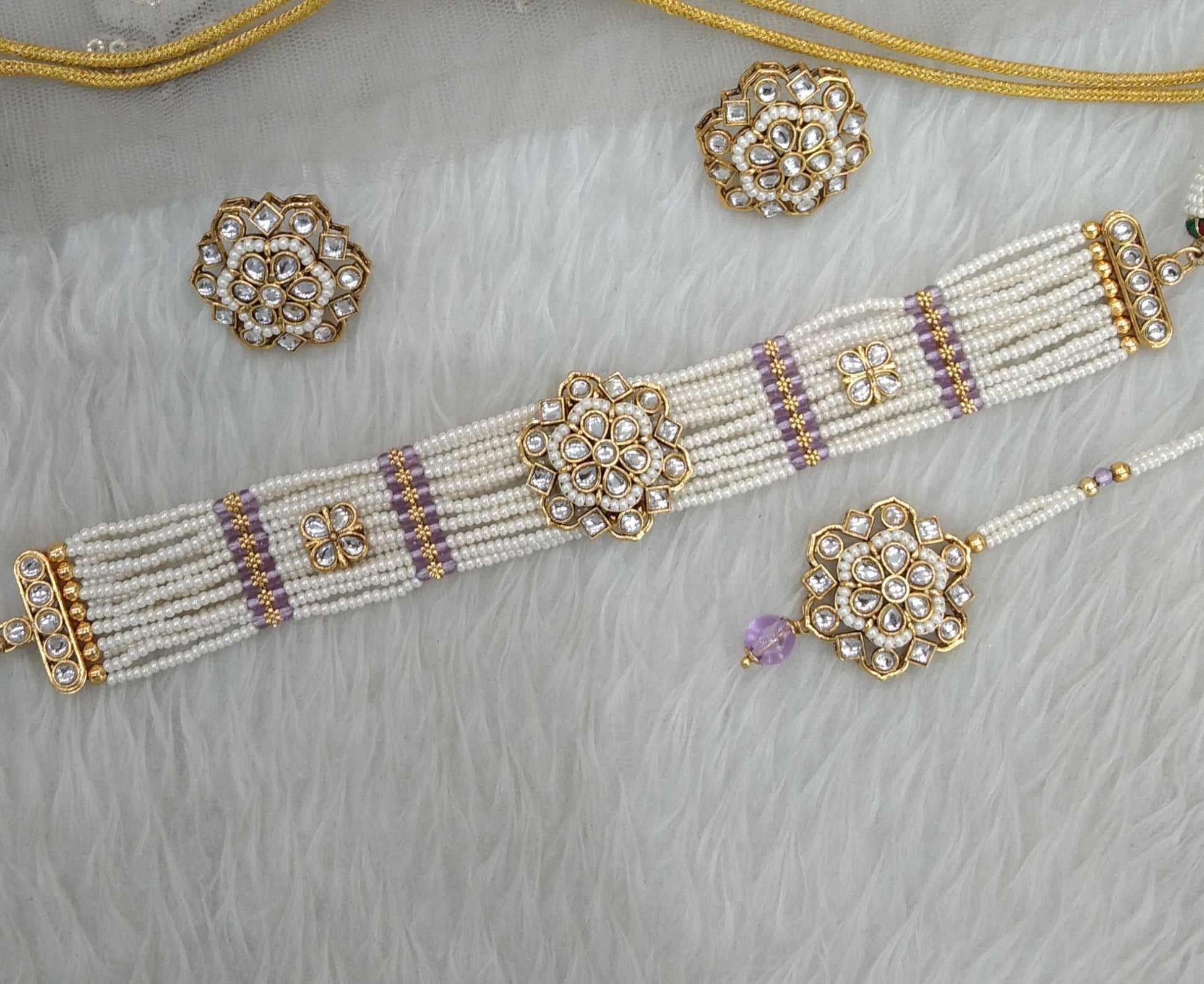 Lavender Kundan Choker Jewelry Sandeep Set