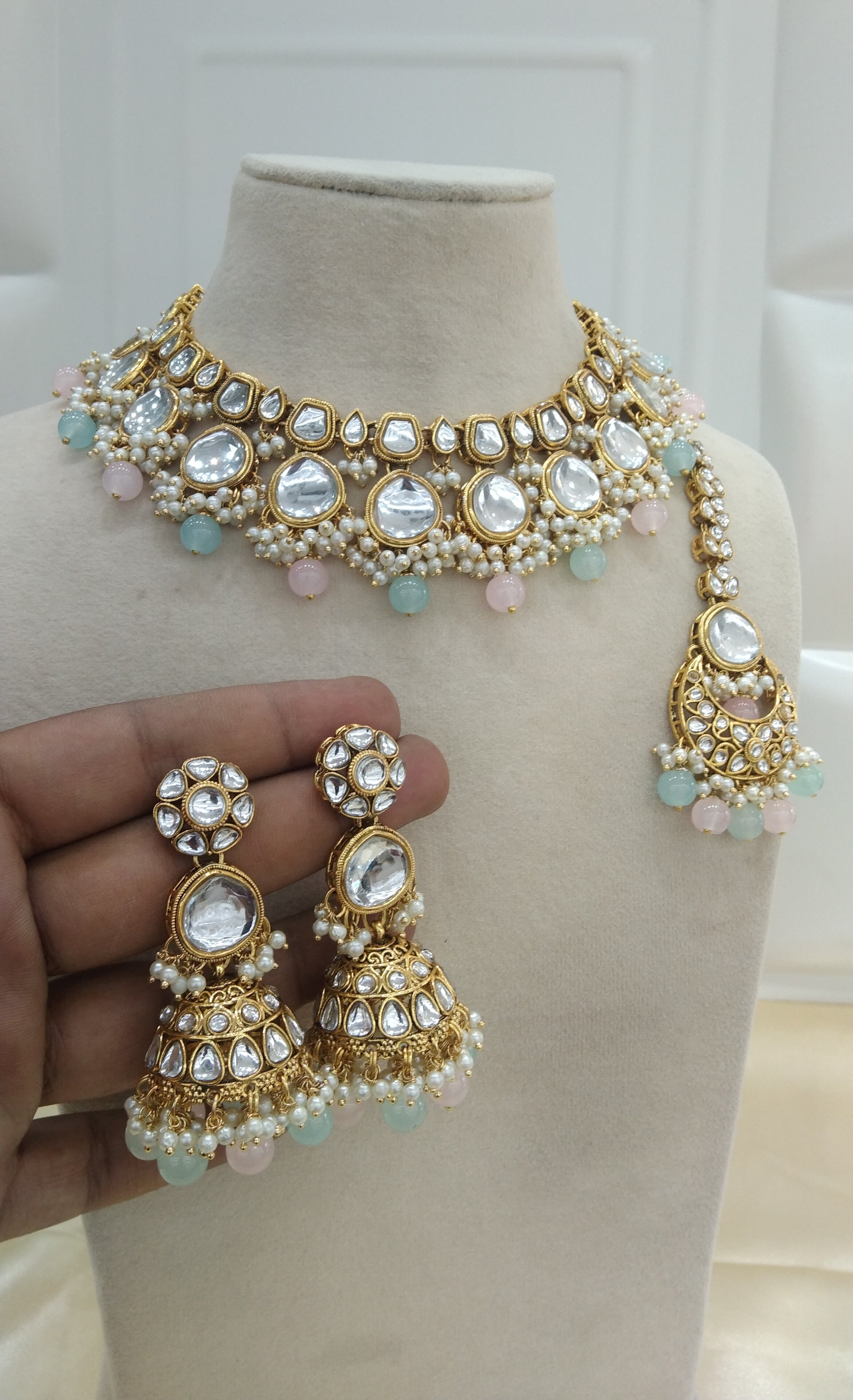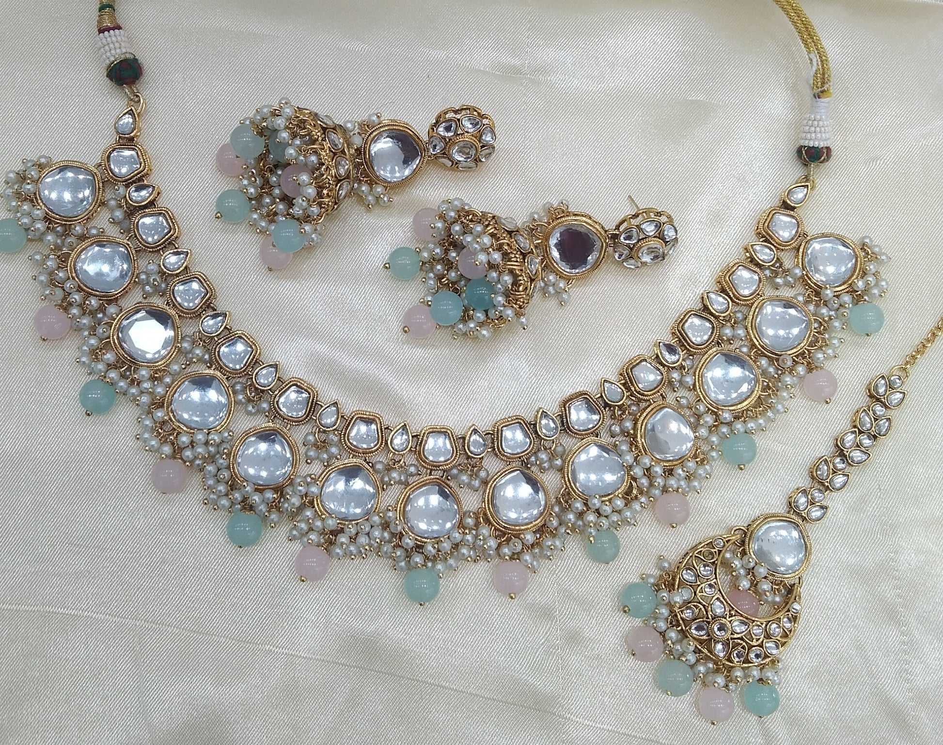 Lavi Pista Pink kundan Indian Necklace Jewellery Set