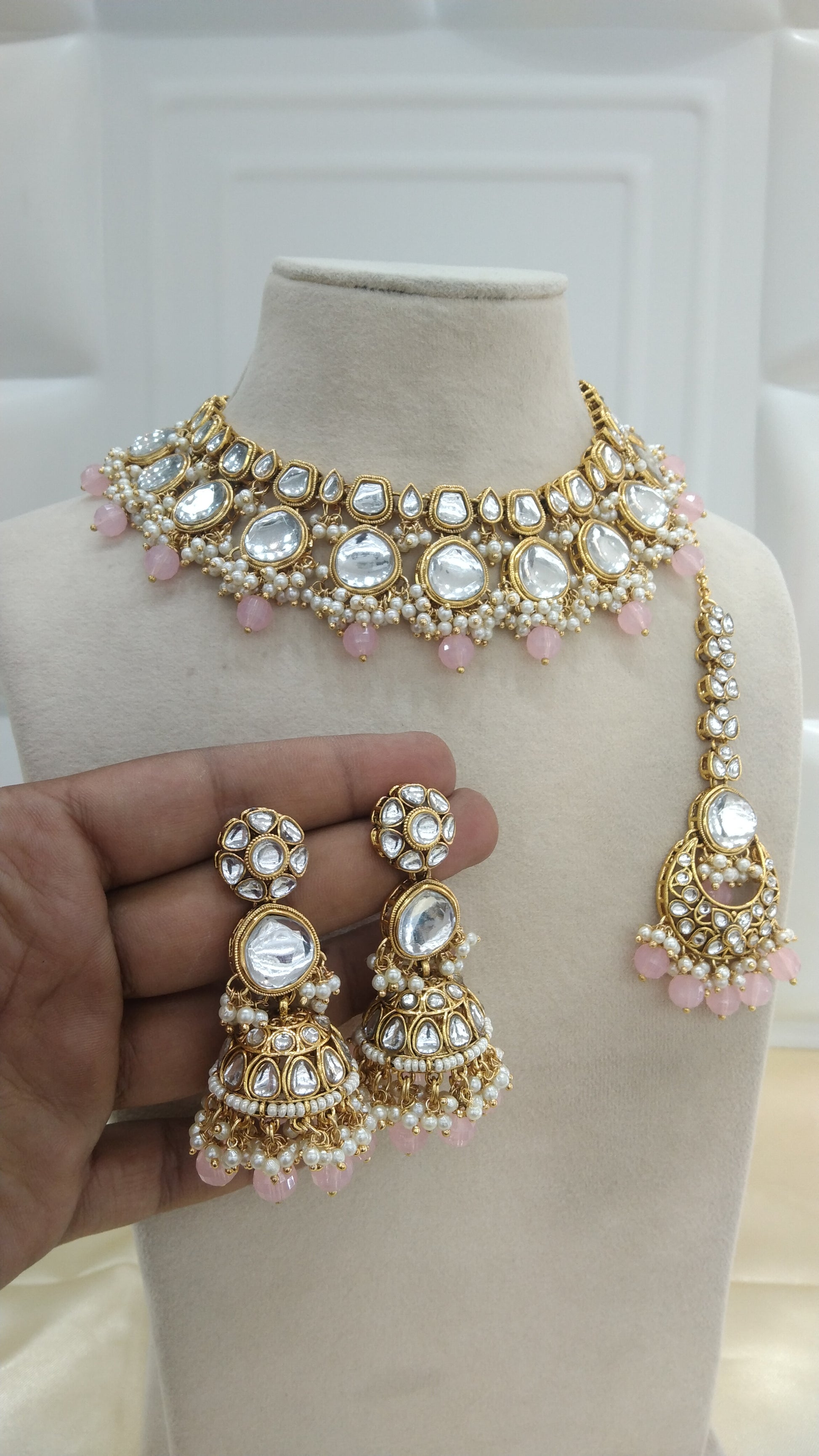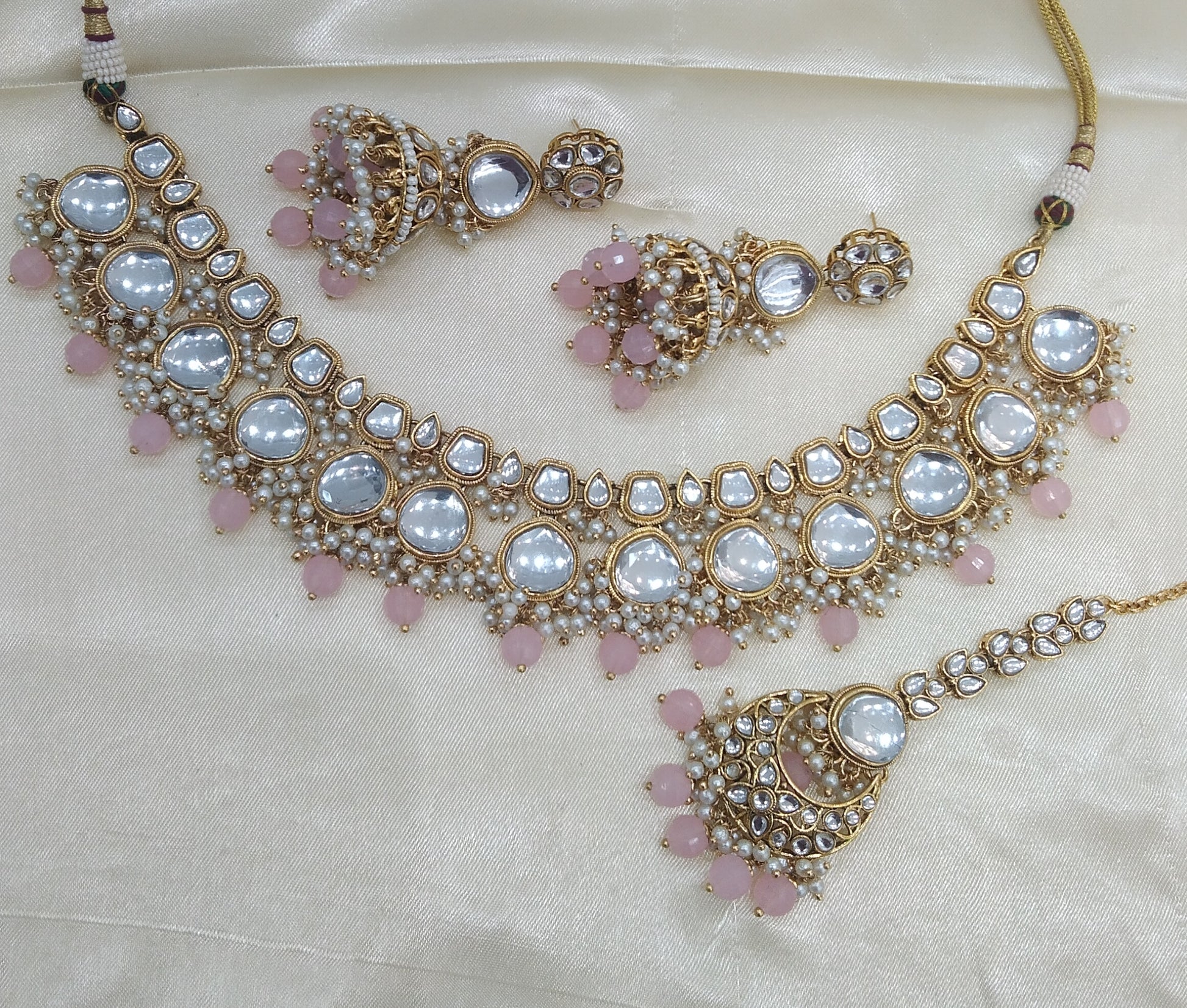 Lavi Baby Pink kundan Indian Necklace Jewellery Set