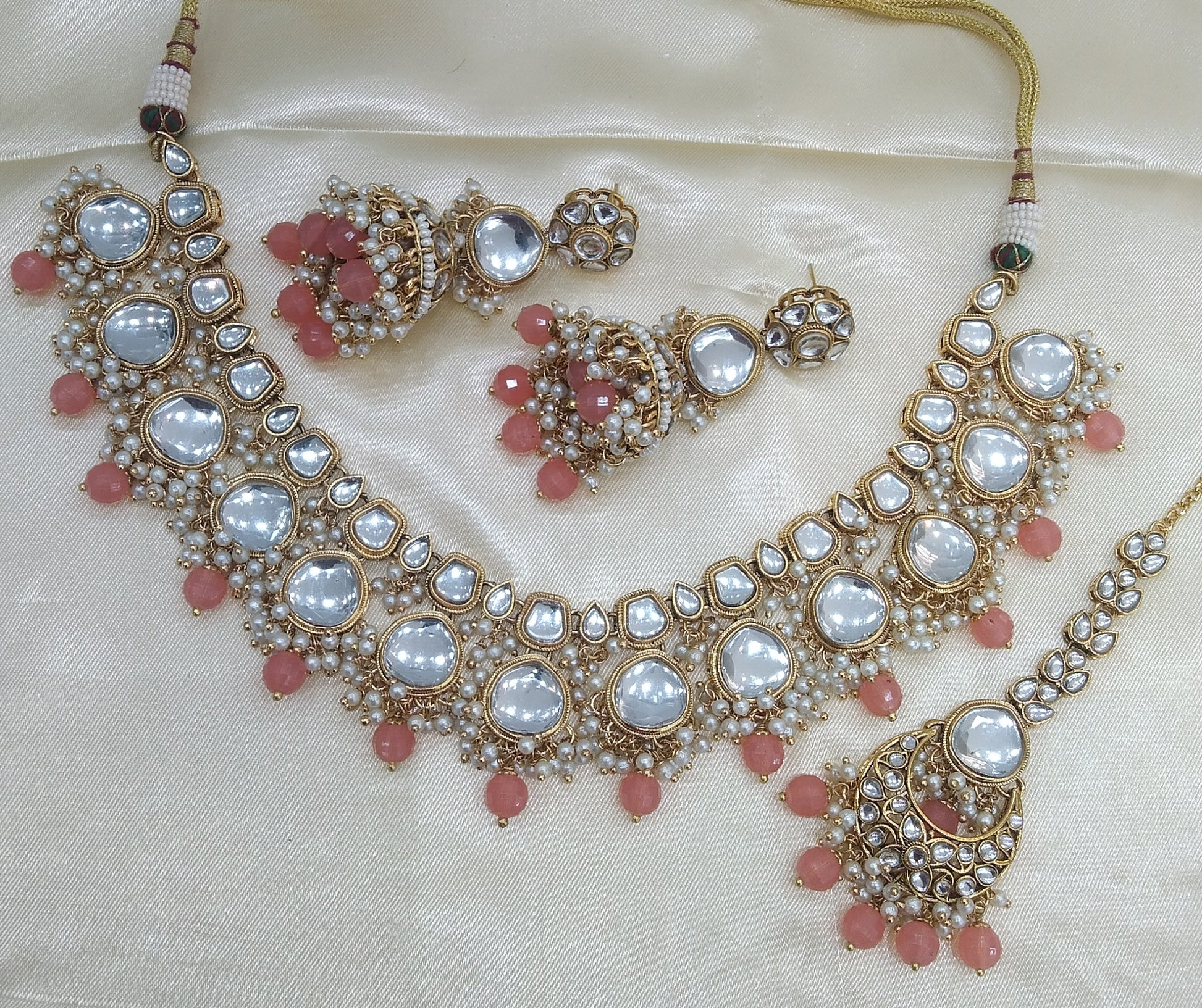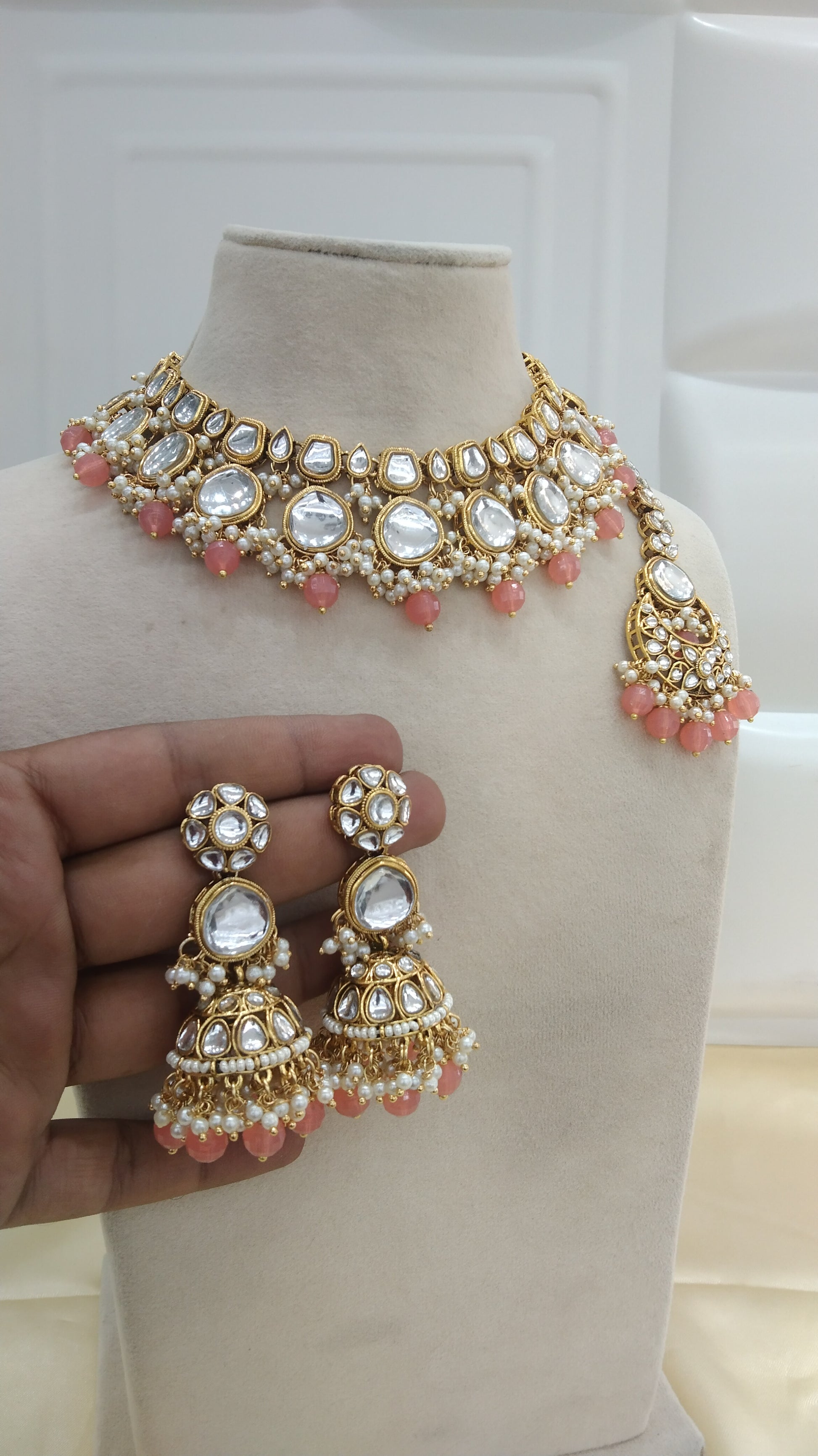 Lavi Orange kundan Indian Necklace Jewellery Set