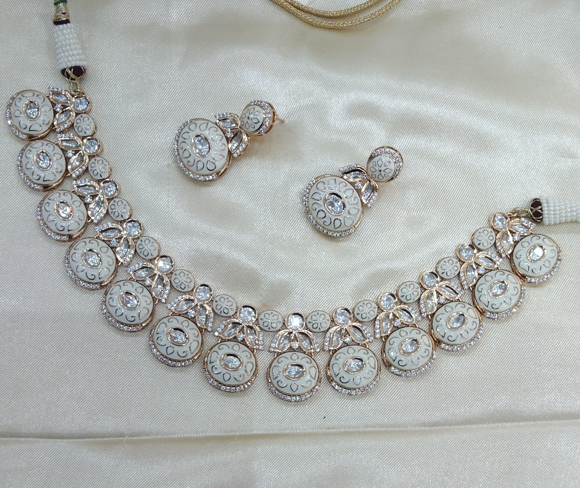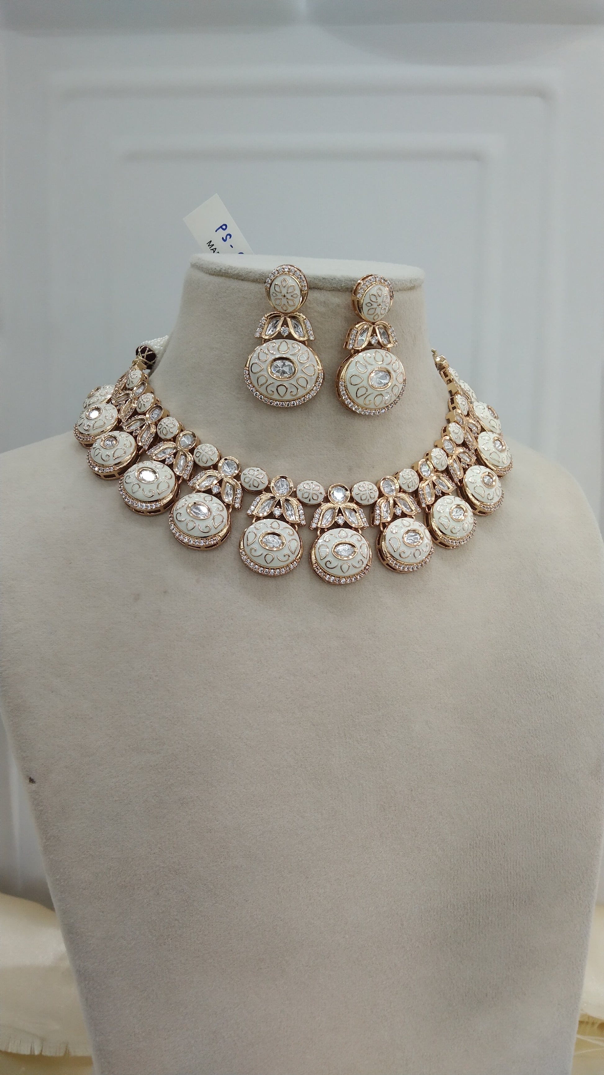 Chital Ivory kundan Indian Necklace Jewellery Set