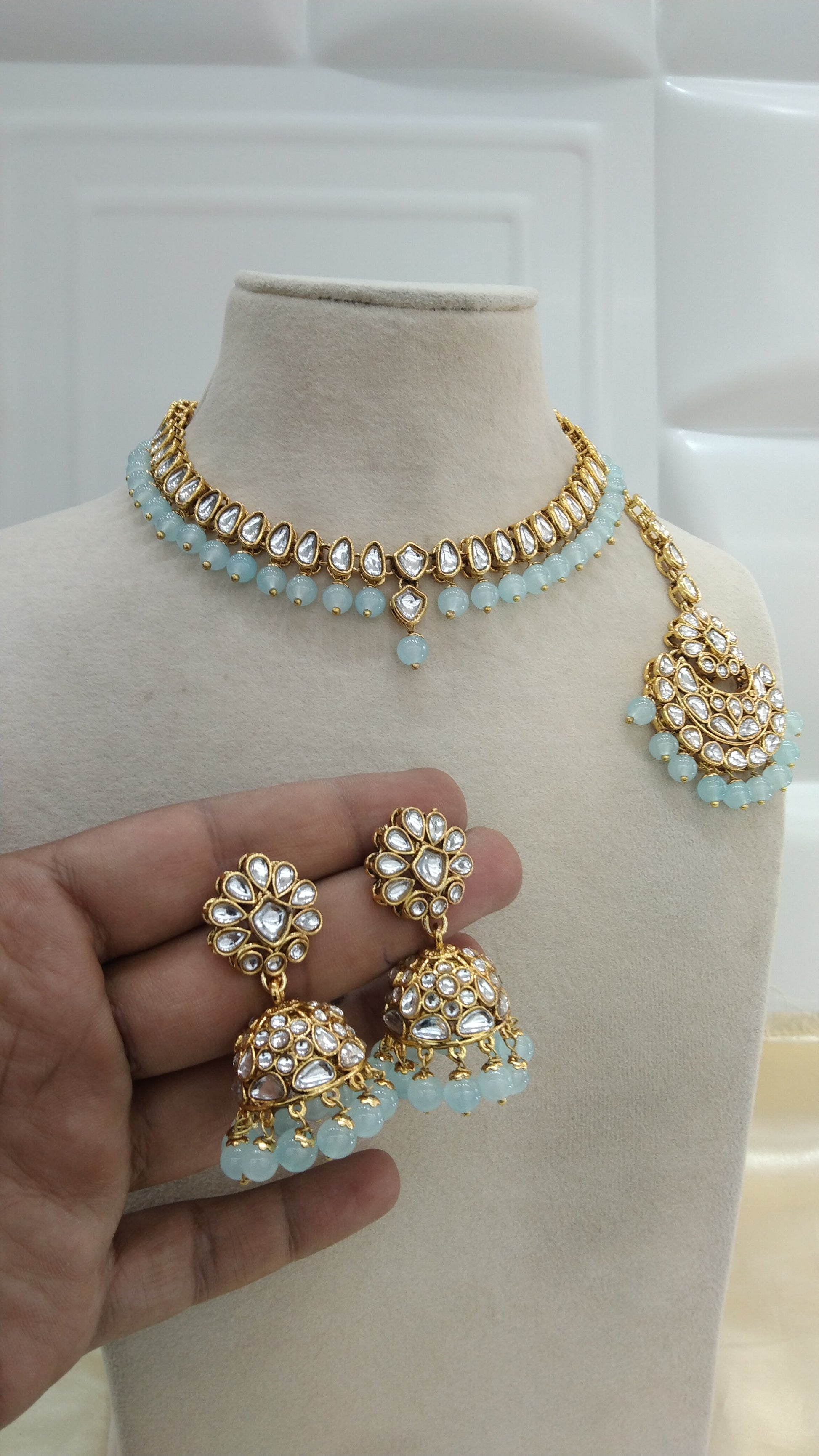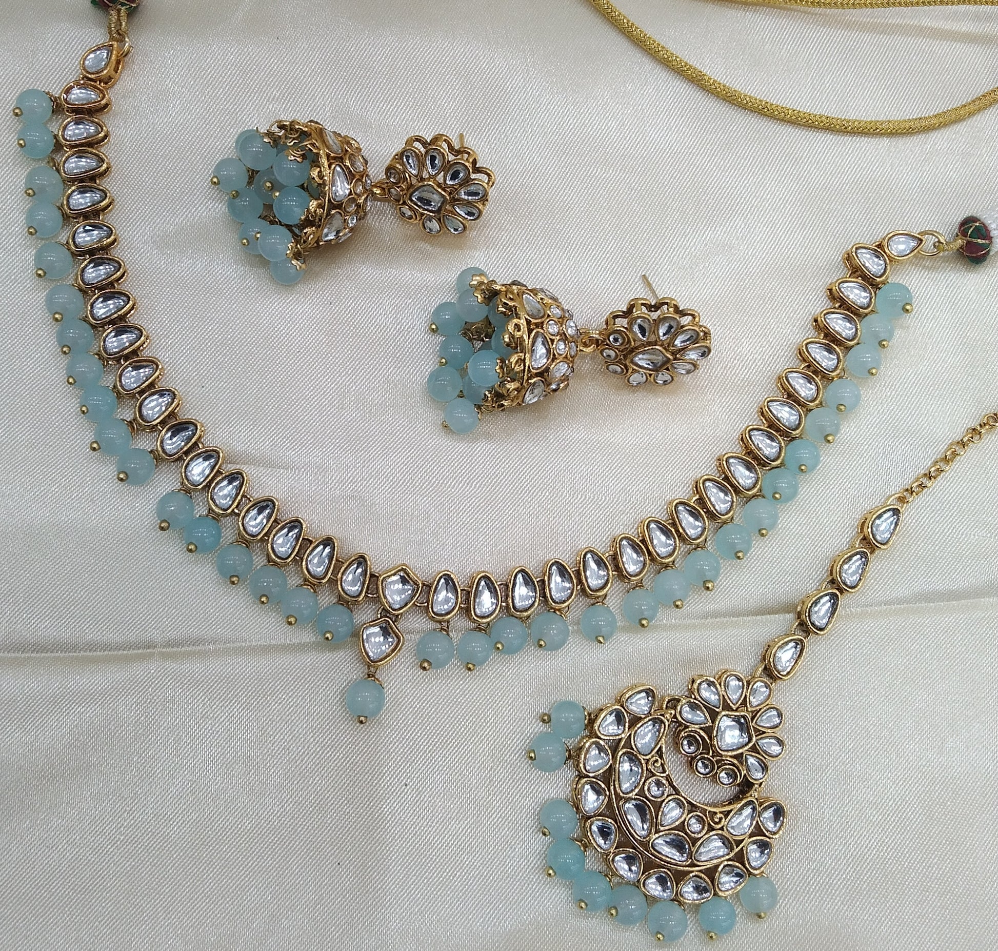 Lovpreet Sea Green kundan Indian Necklace Jewellery Set