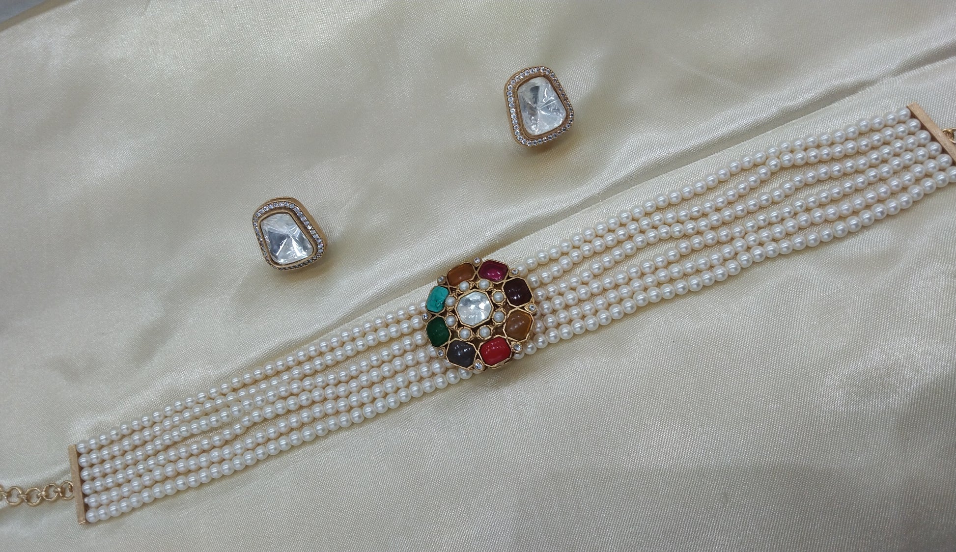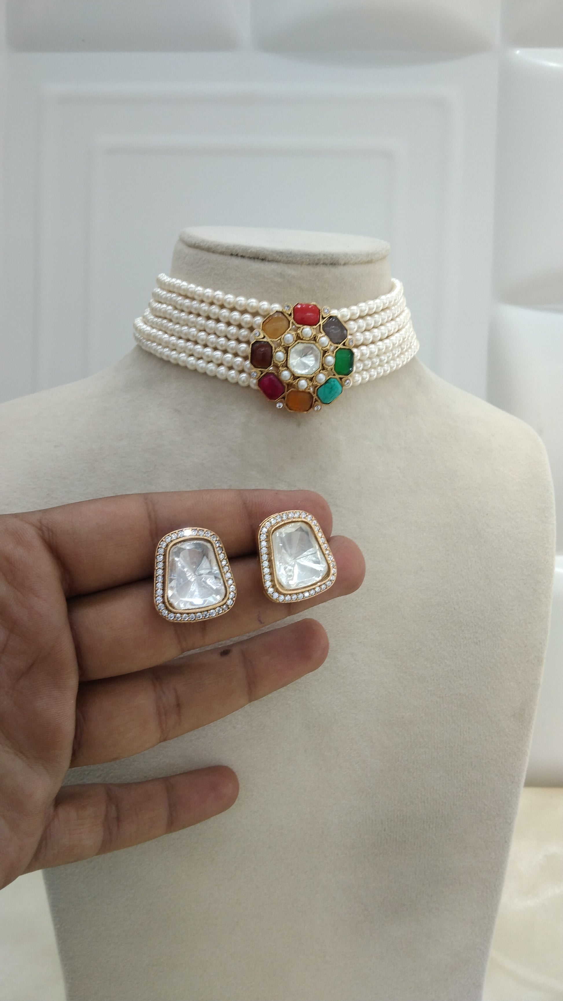 Nimo Multicolor kundan Indian Choker Jewellery Set