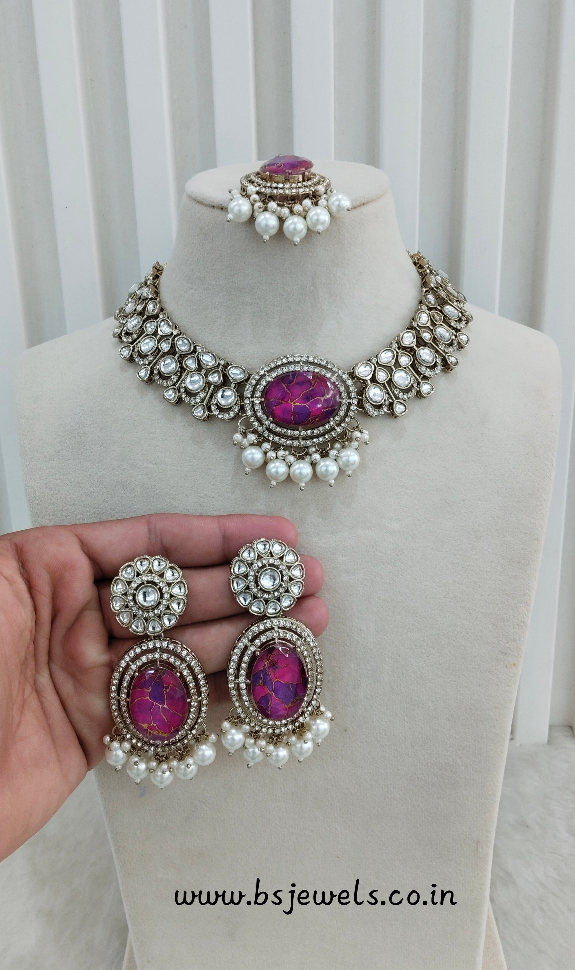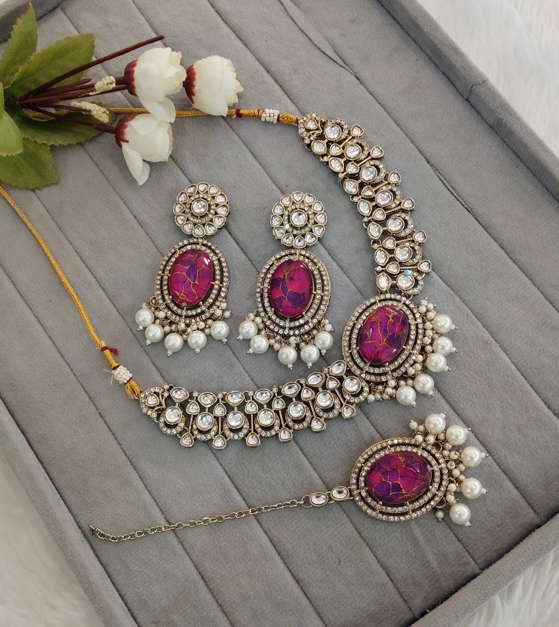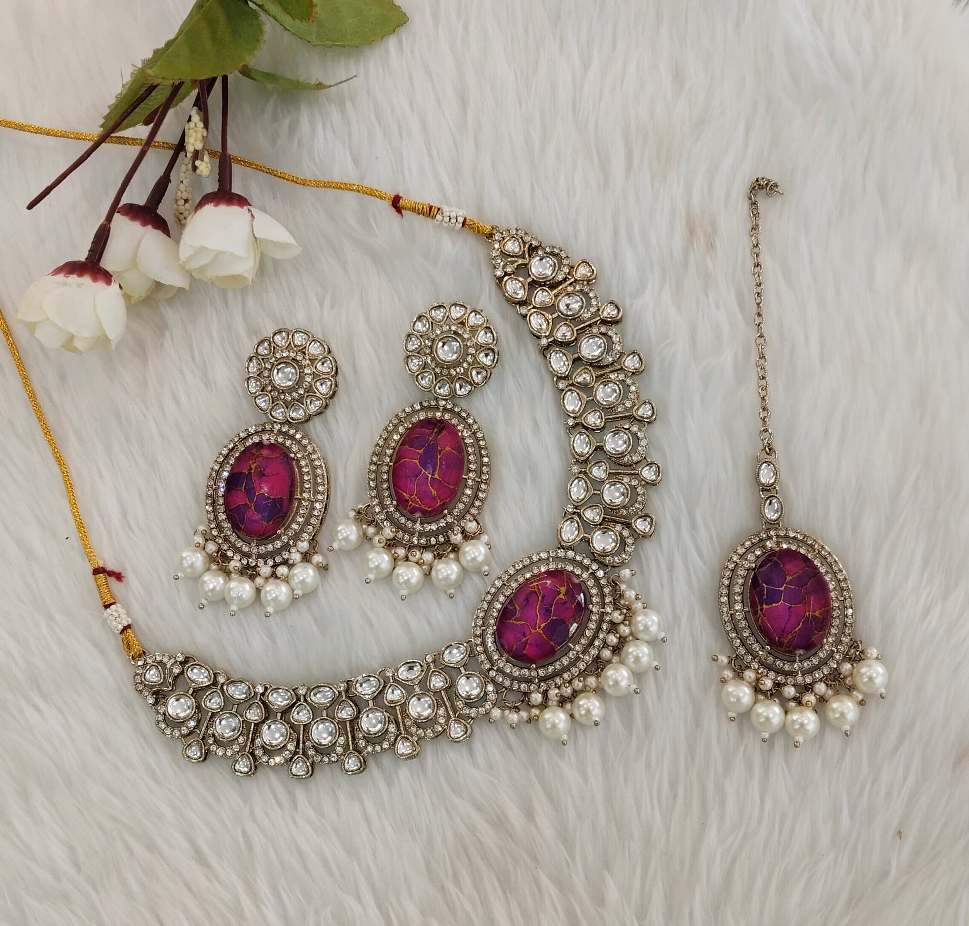 Majenta Antique Gold Kundan Necklace Jewellery Wanted Set