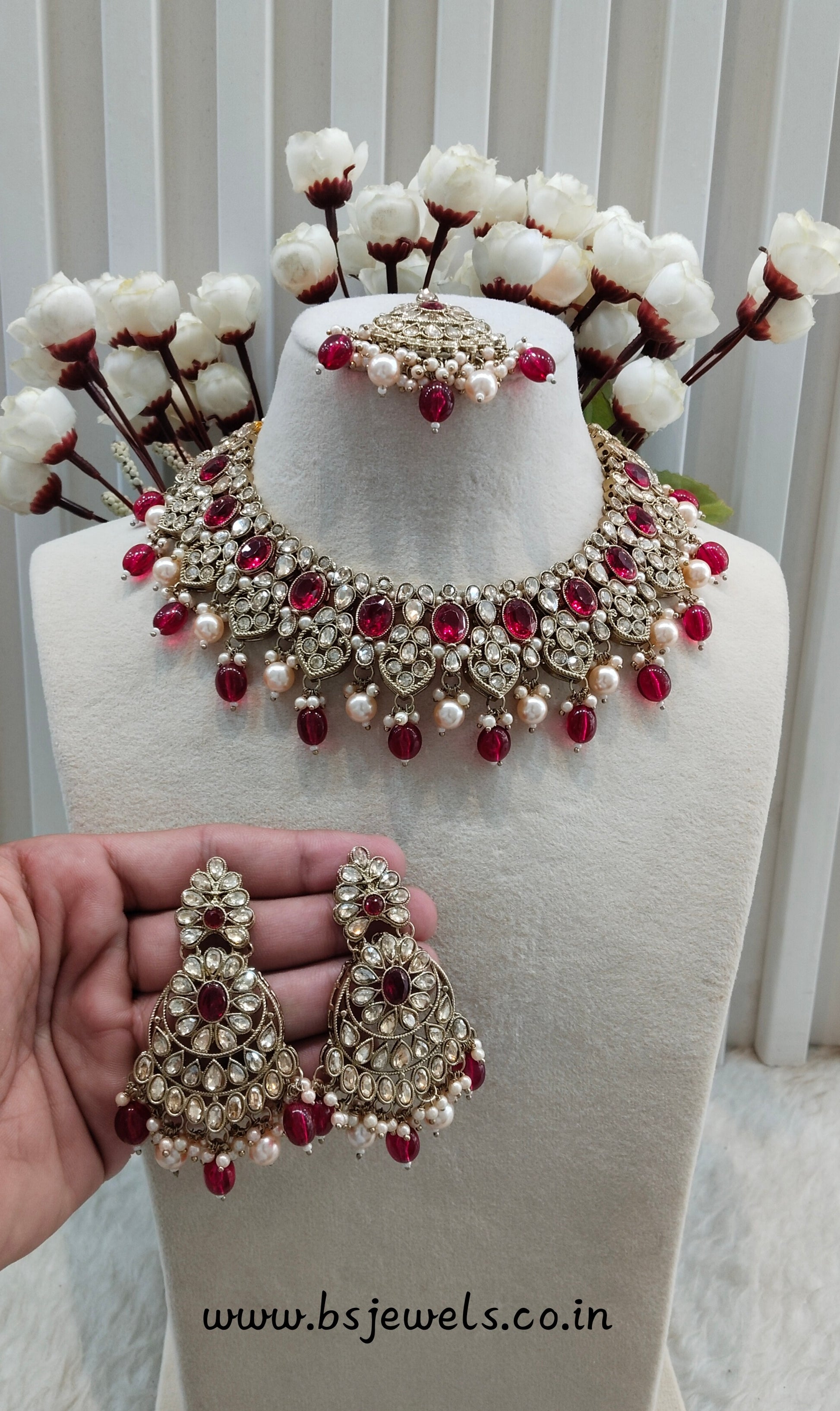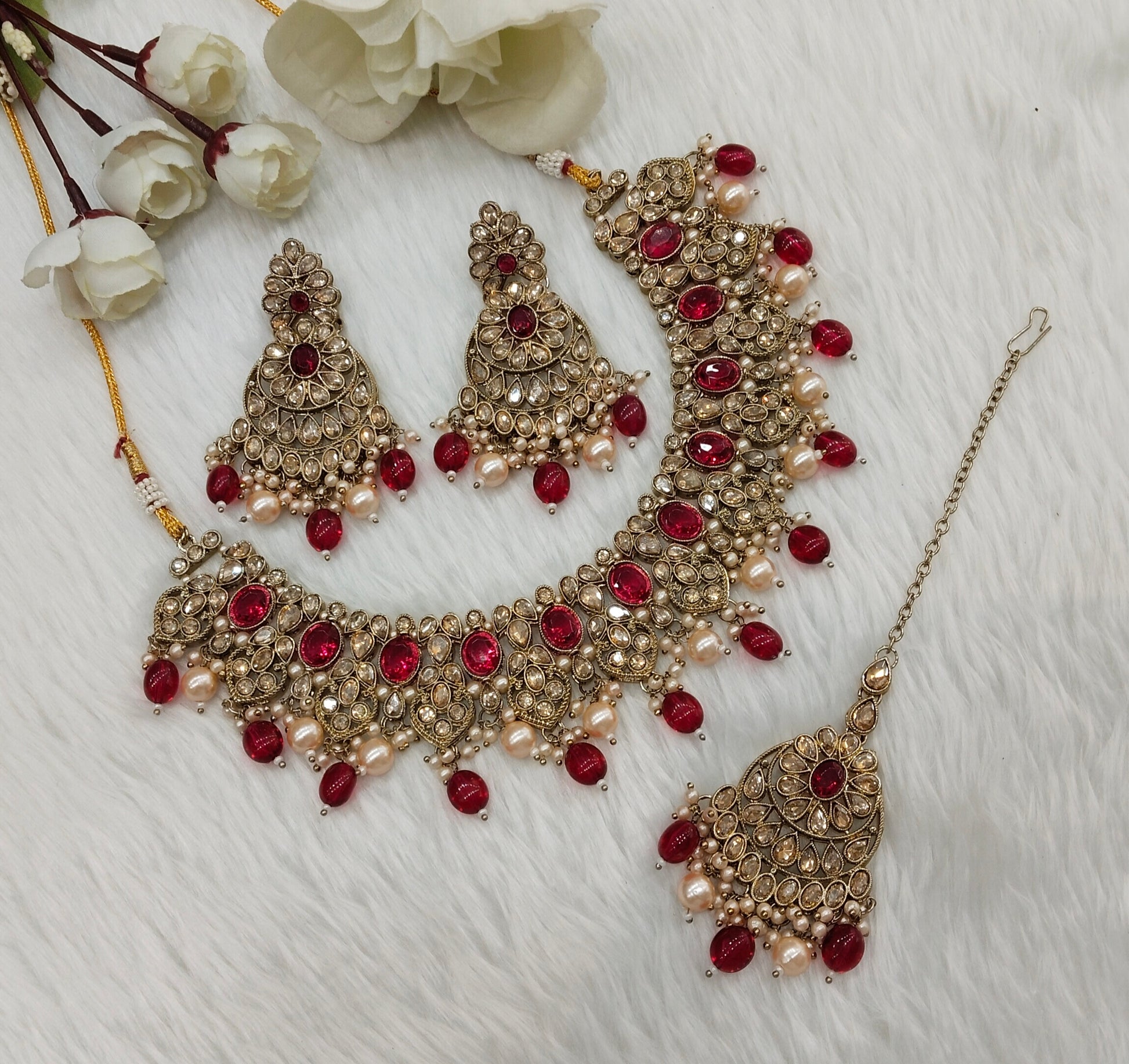 * Necklace set with earrings and tikka.