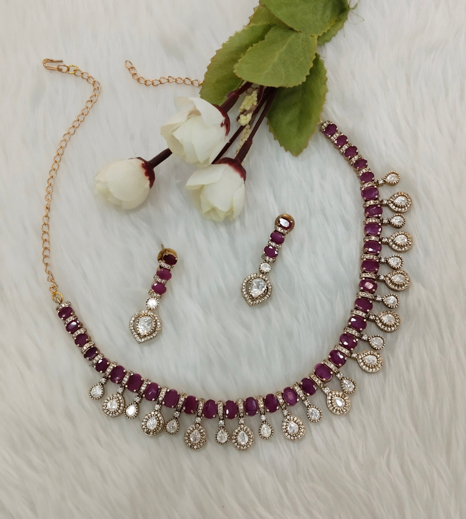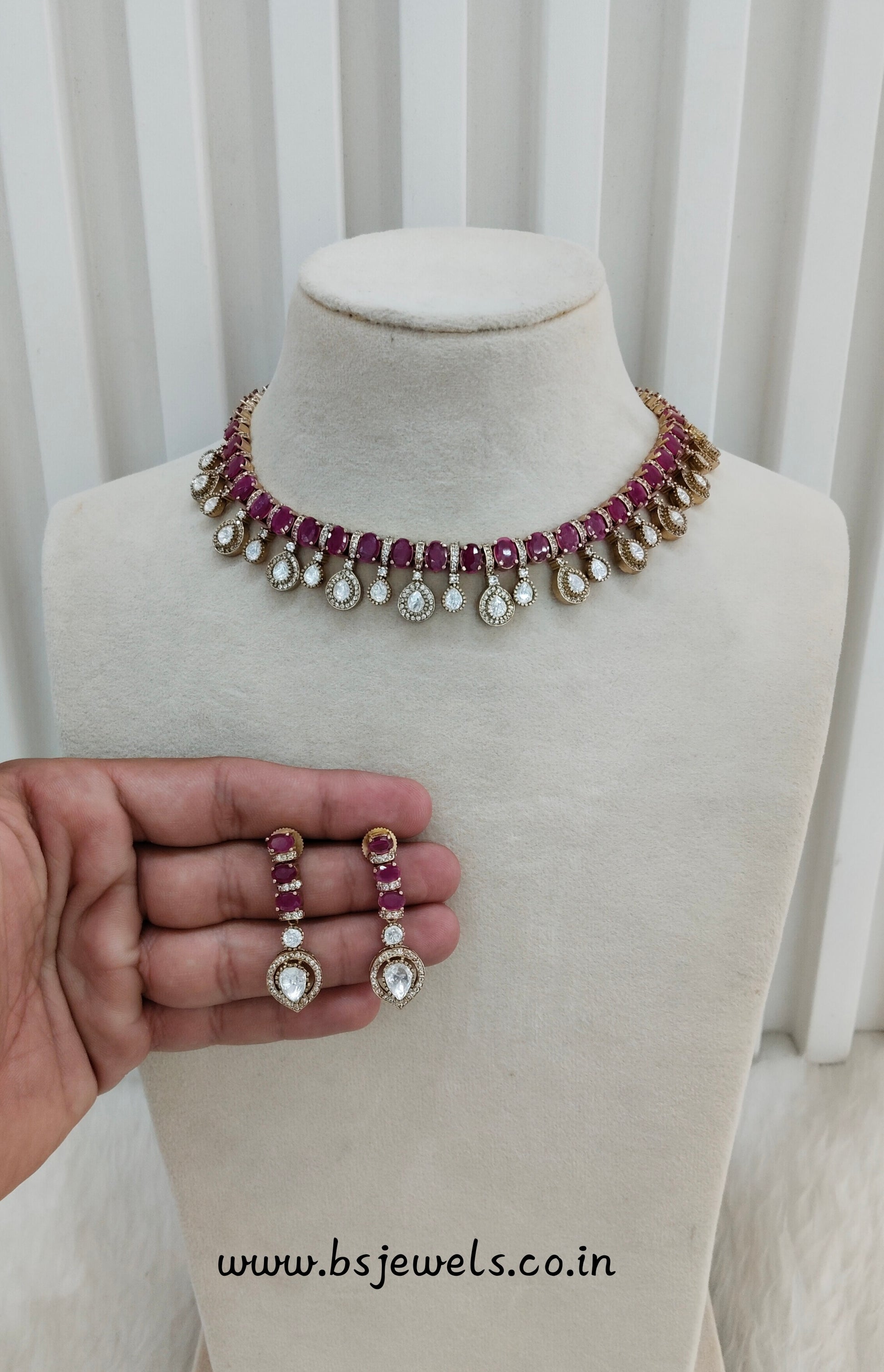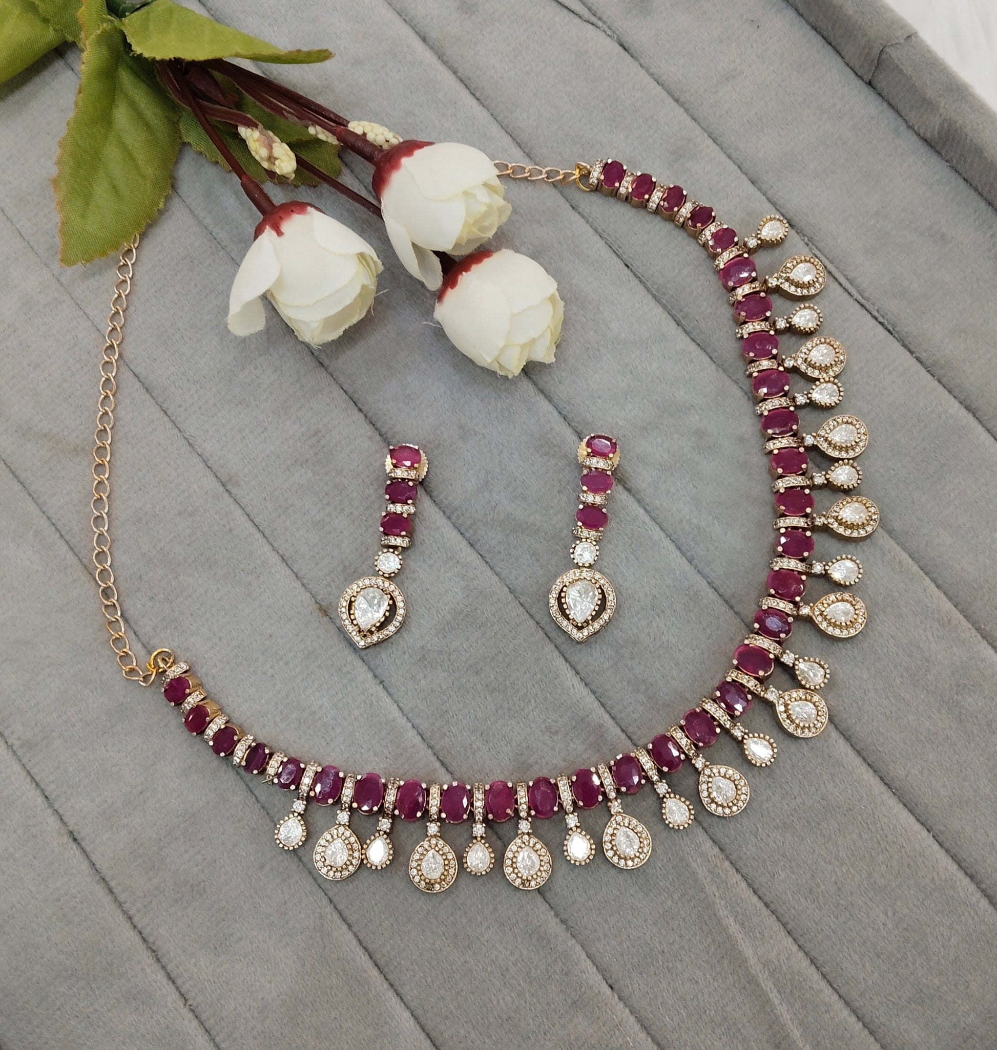 Majenta Gold Moissanite Kundan Necklace Jewellery Echer Set