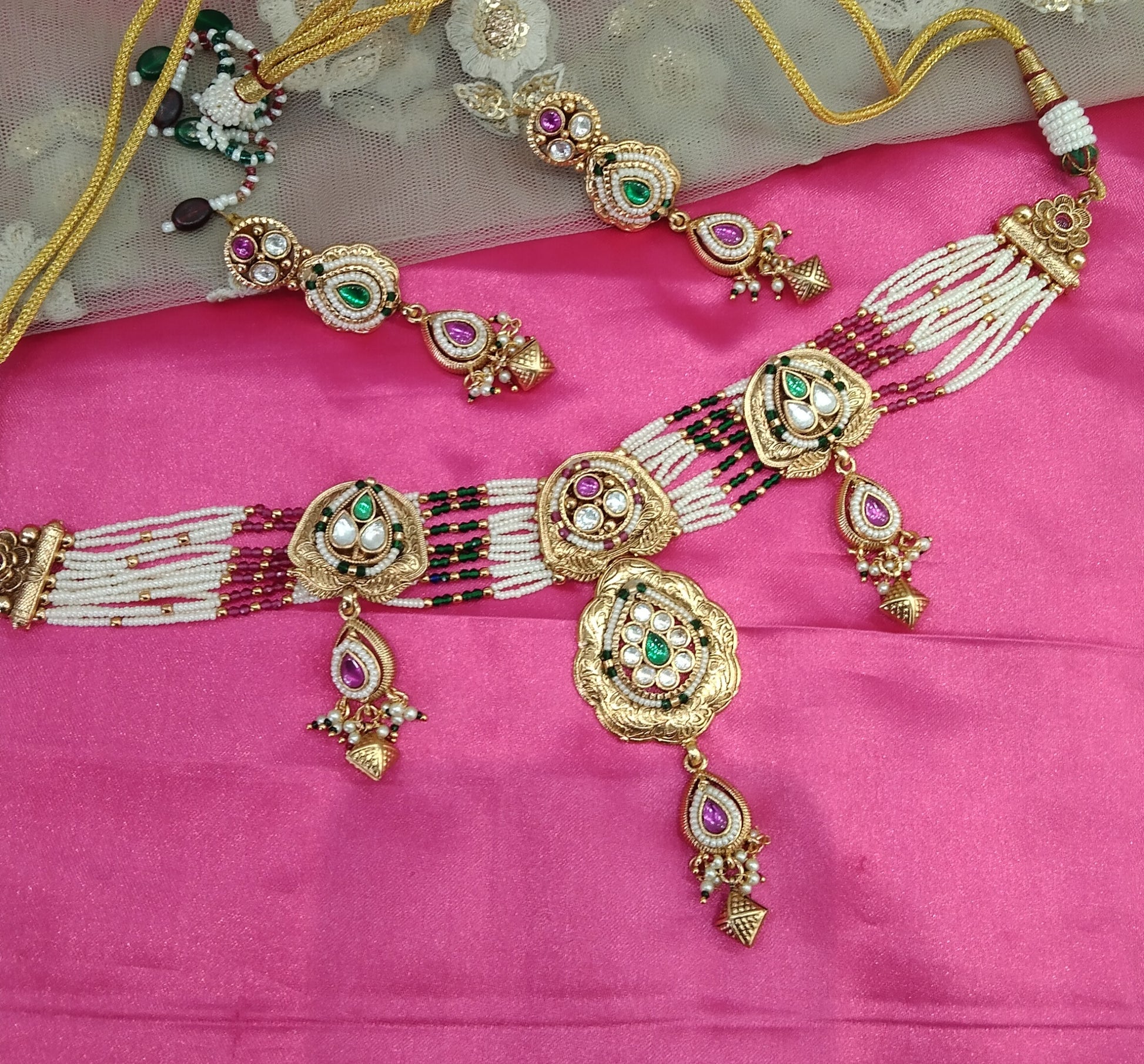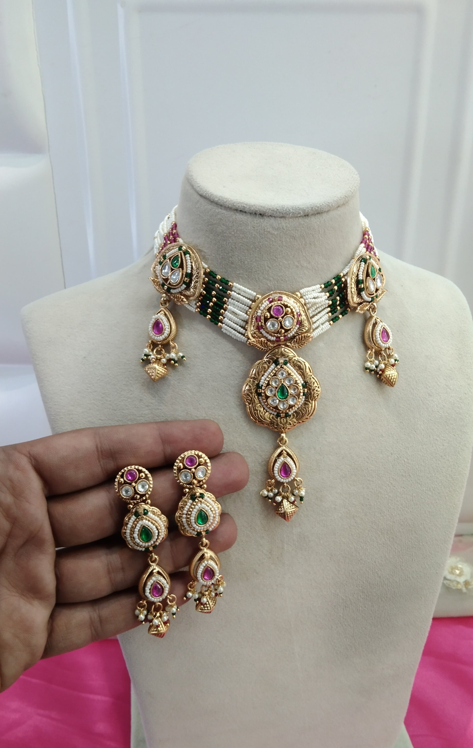Majenta Green Gold Polki Kundan Necklace Jewelry Siva Set