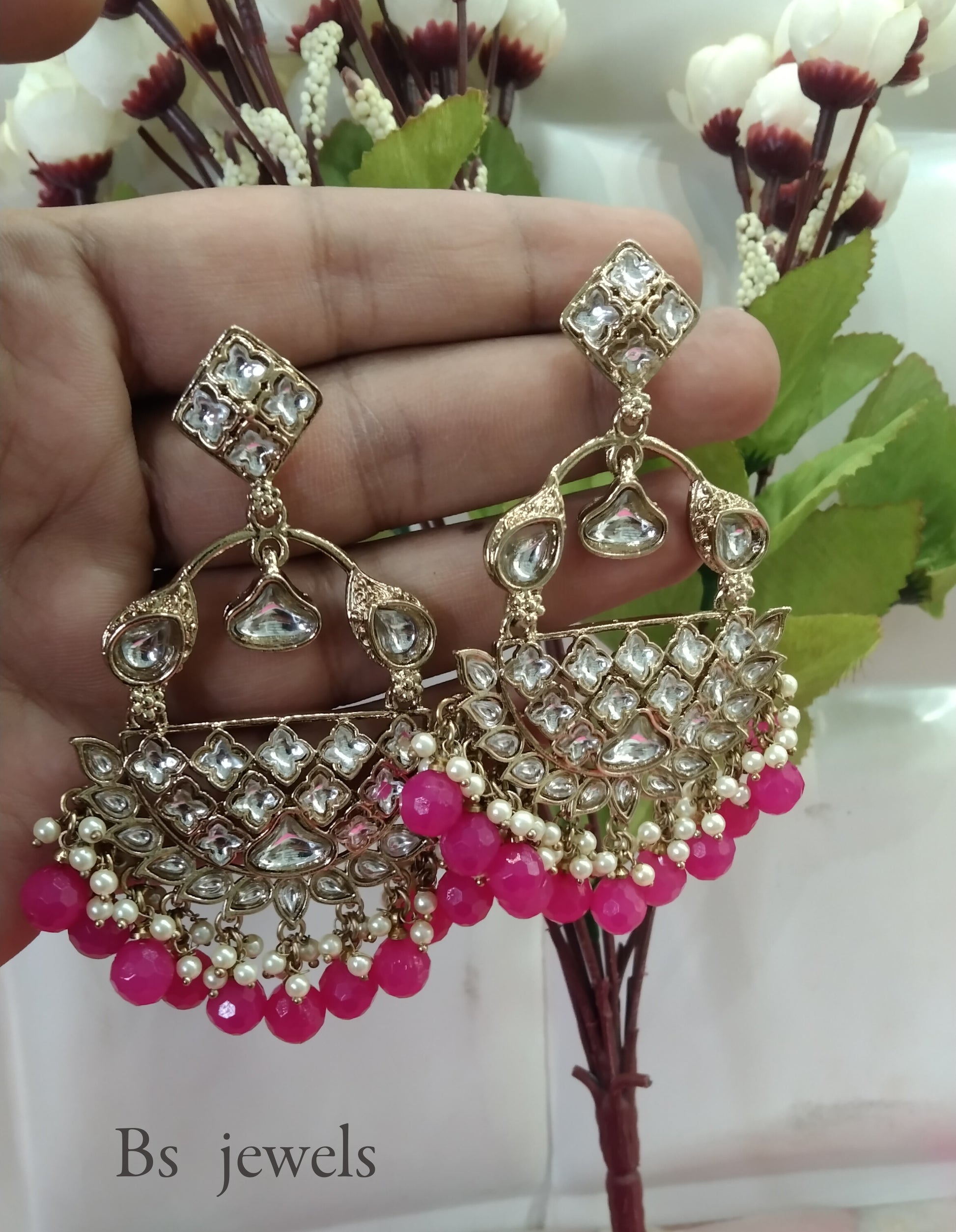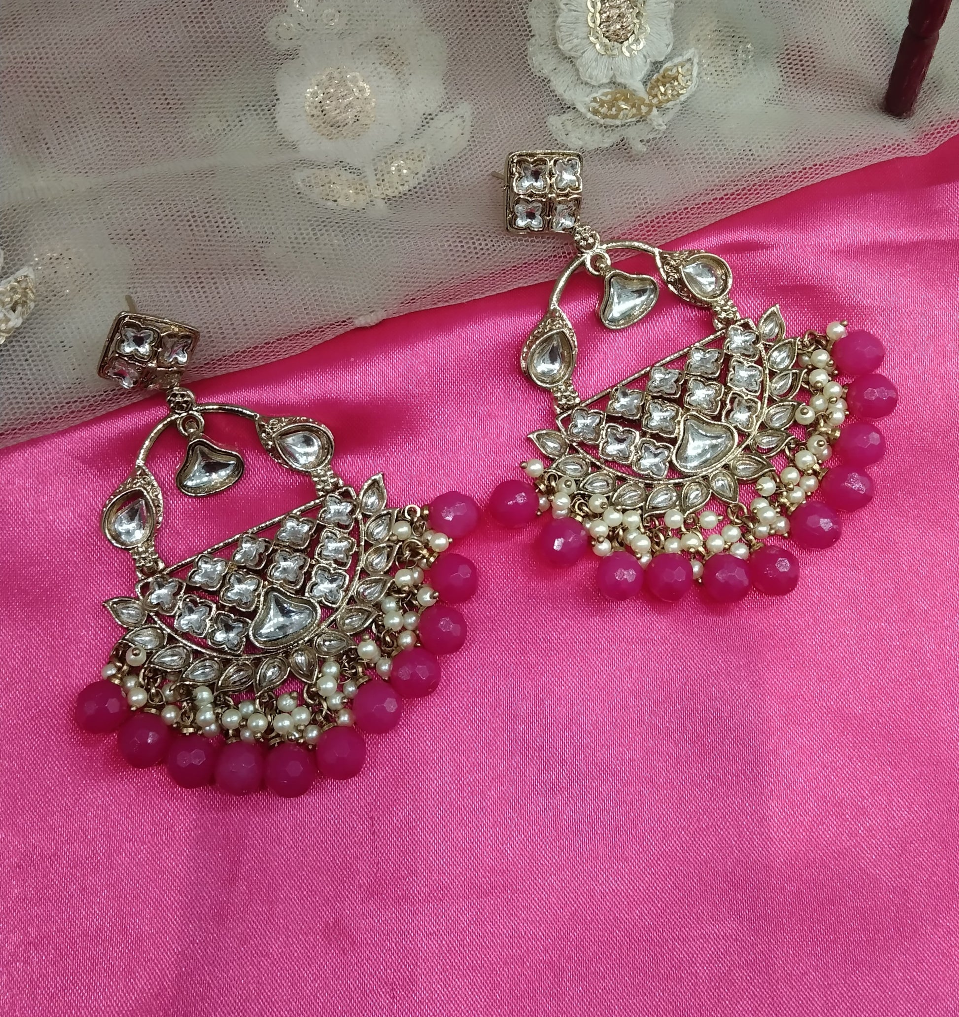 Dark Pink Kundan Tiger Bollywood Earrings