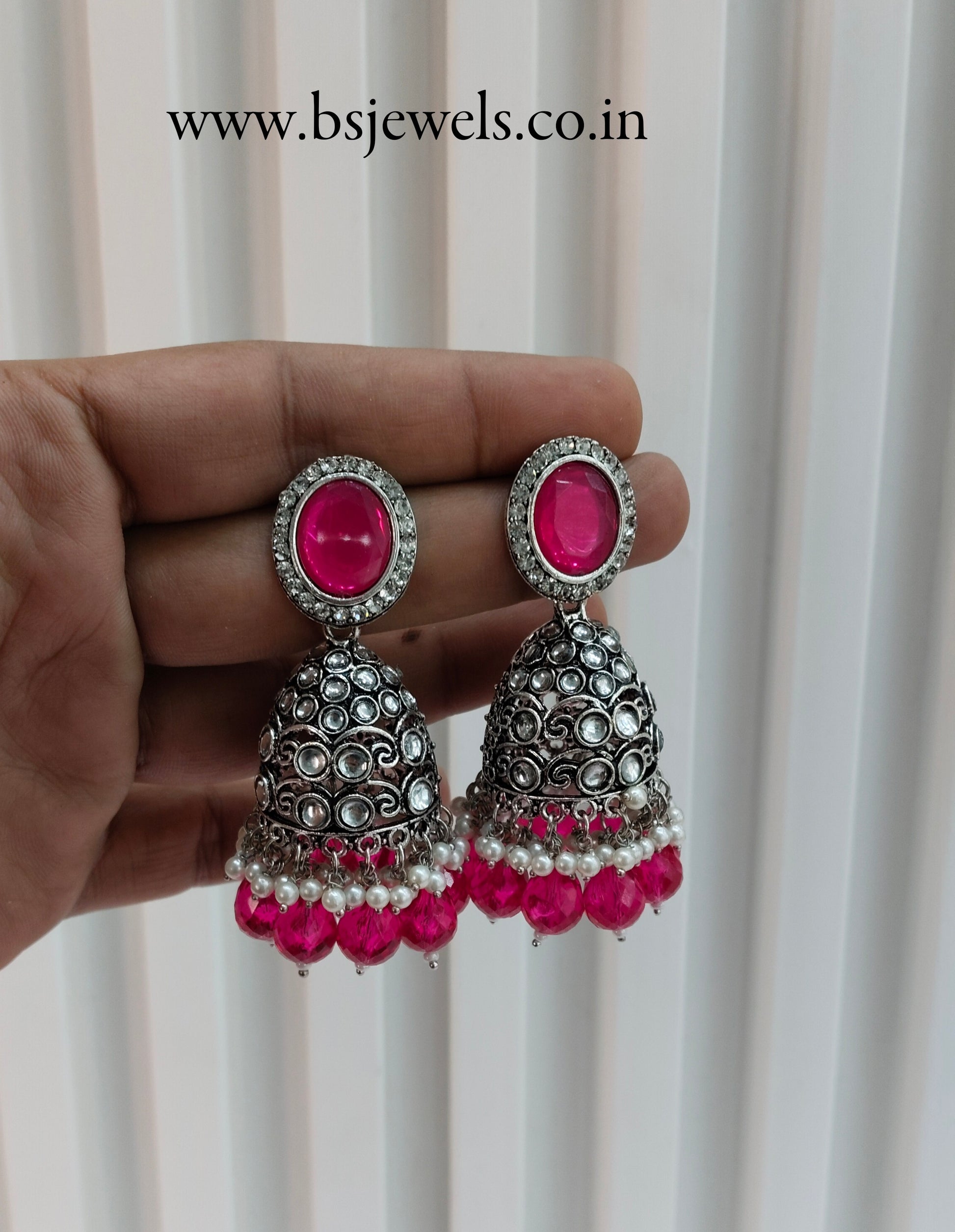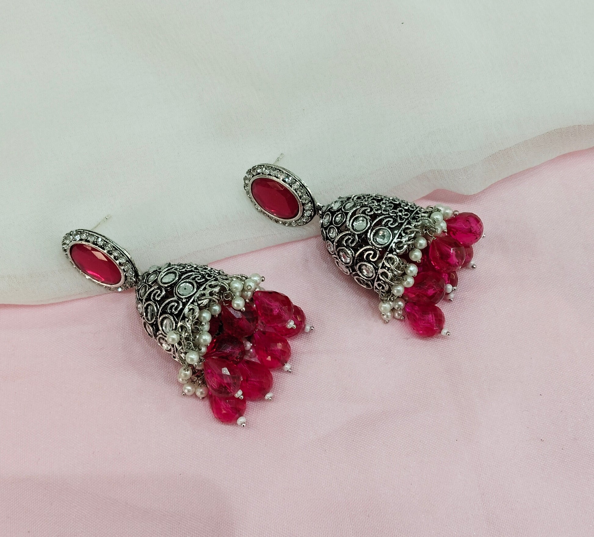 Majenta Oxidized Metal Denber Jhumka Earrings