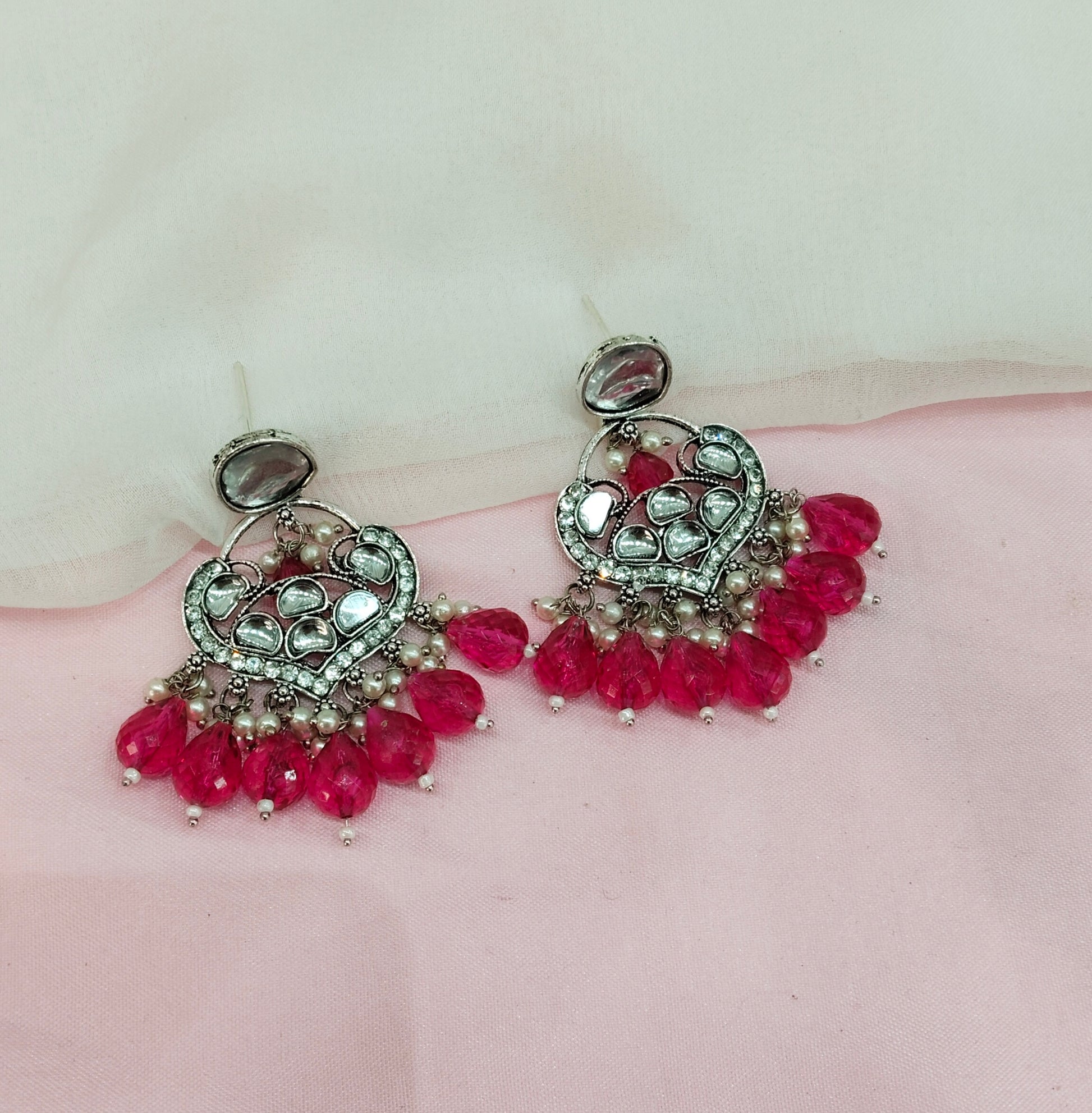 Majenta Oxidized Metal Pushpa Earrings Set