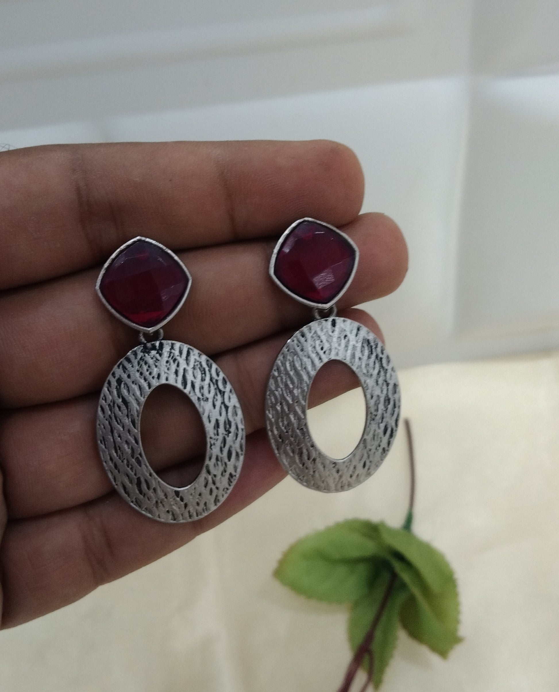 Majenta Oxidized Metal Shalu Bollywood Earrings Jewellery