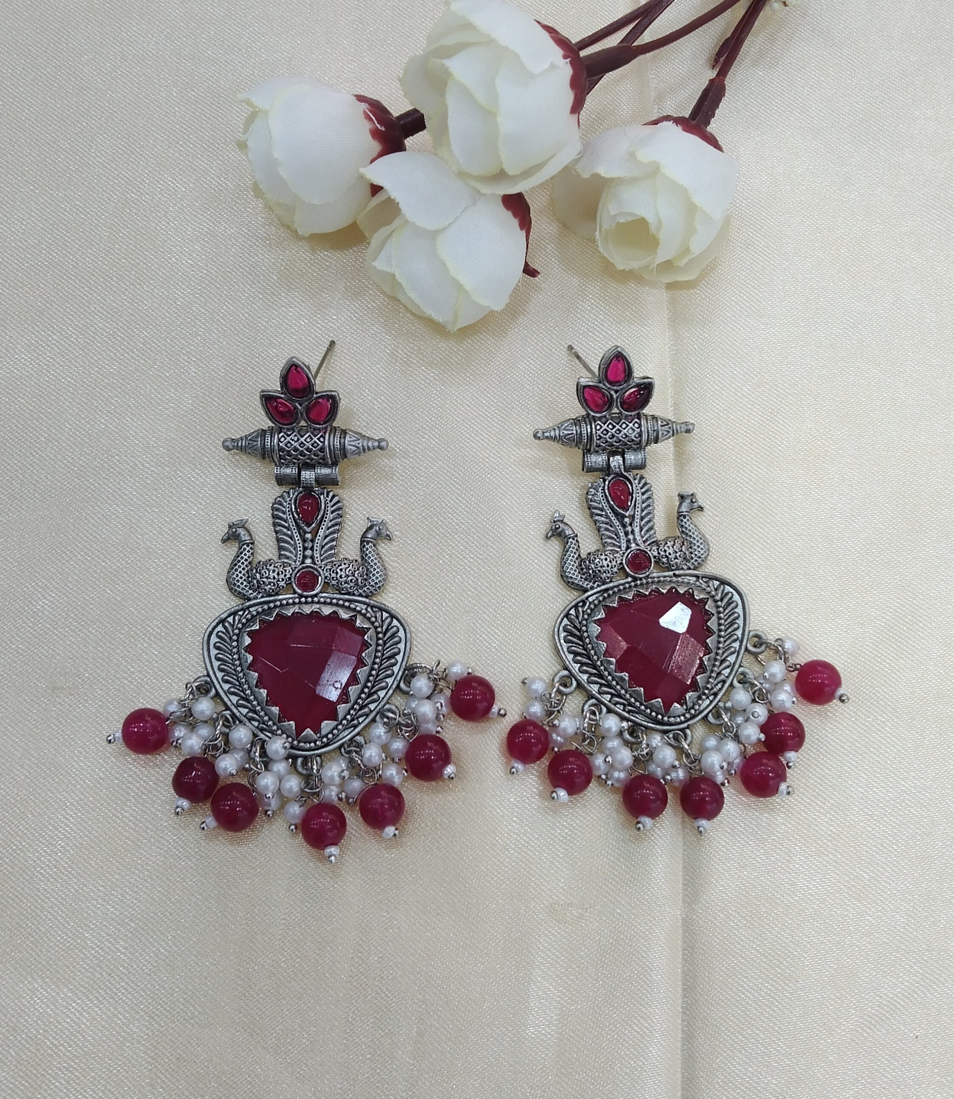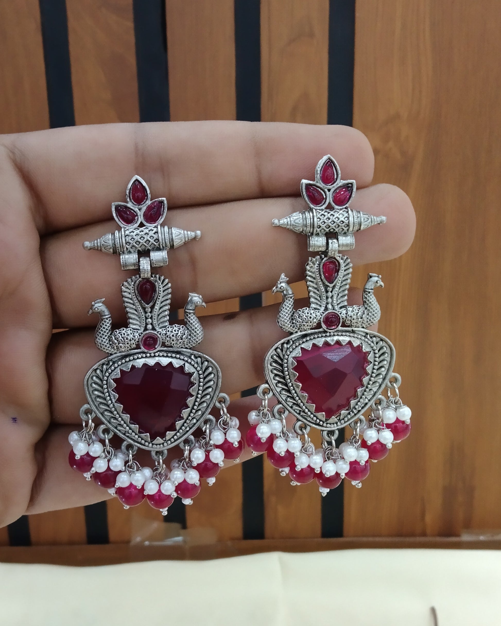 Majenta Oxidized Metal Shalu Bollywood Earrings Jewellery