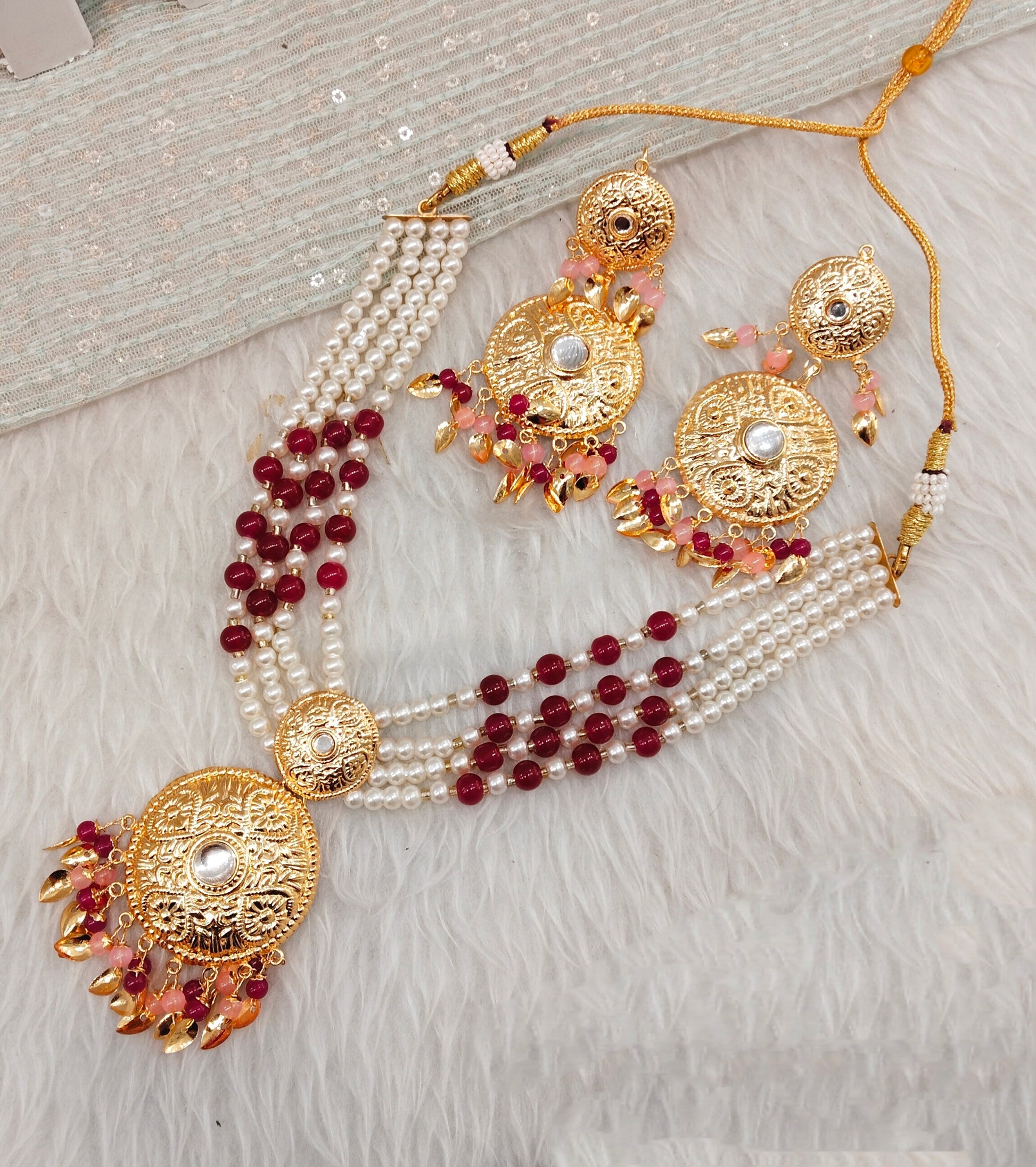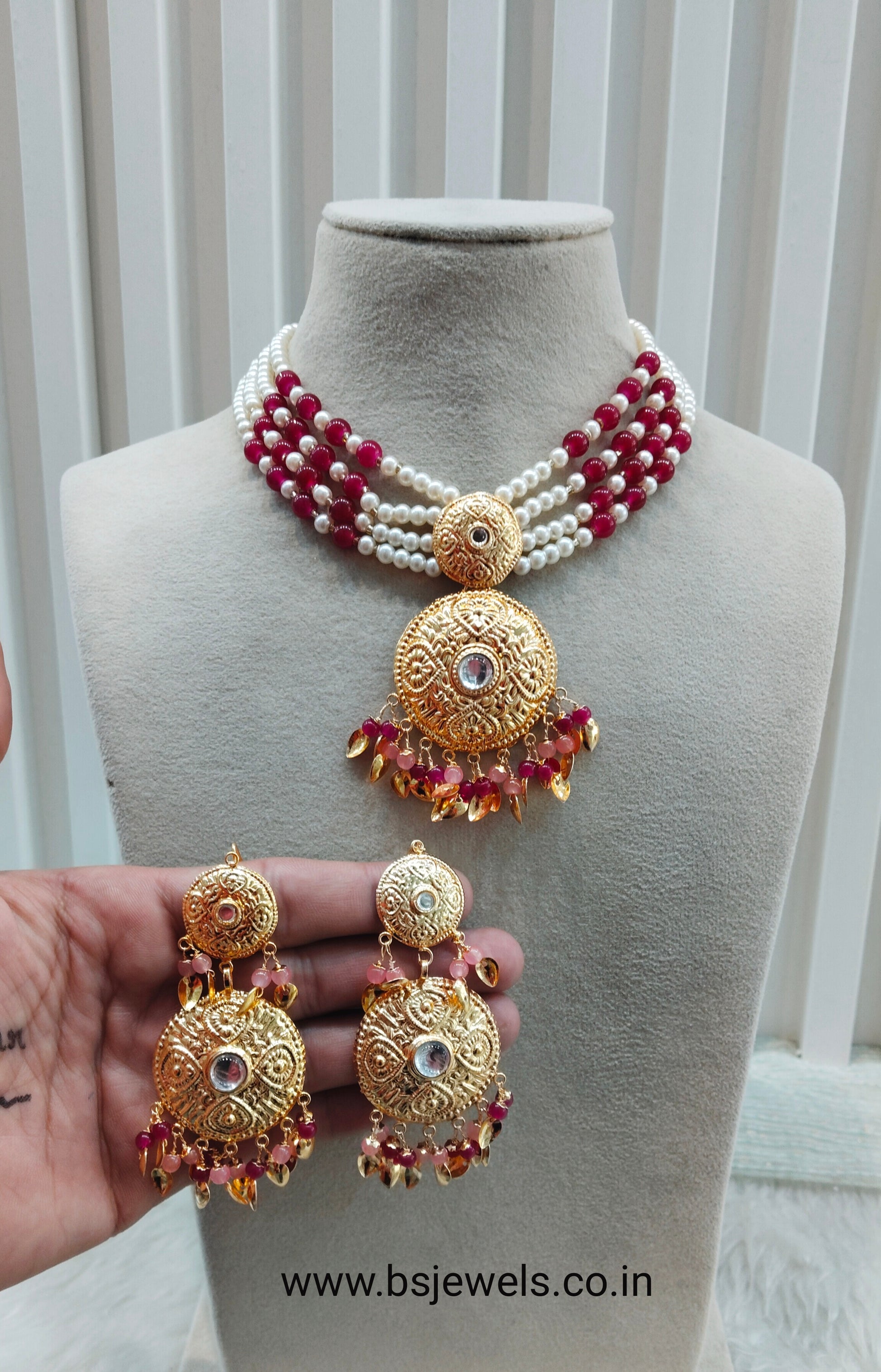 Majenta Pink Gold Jadau Punjabi Style Choker Jewellery Smith Set