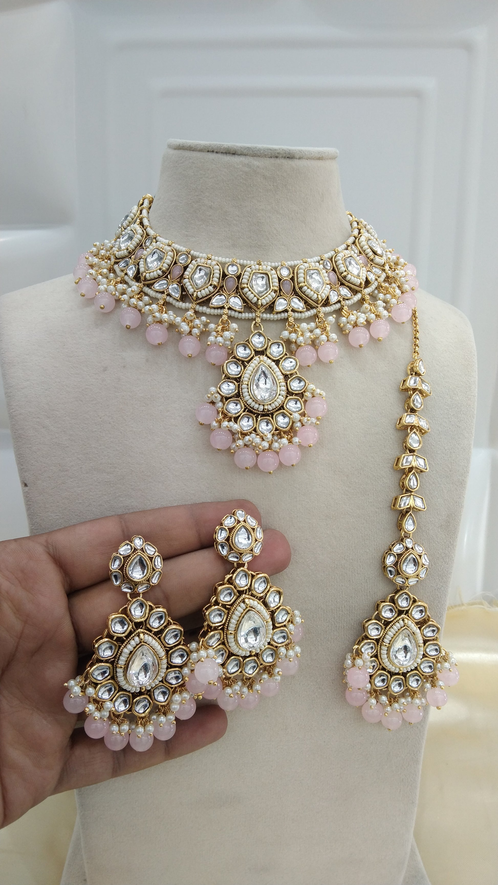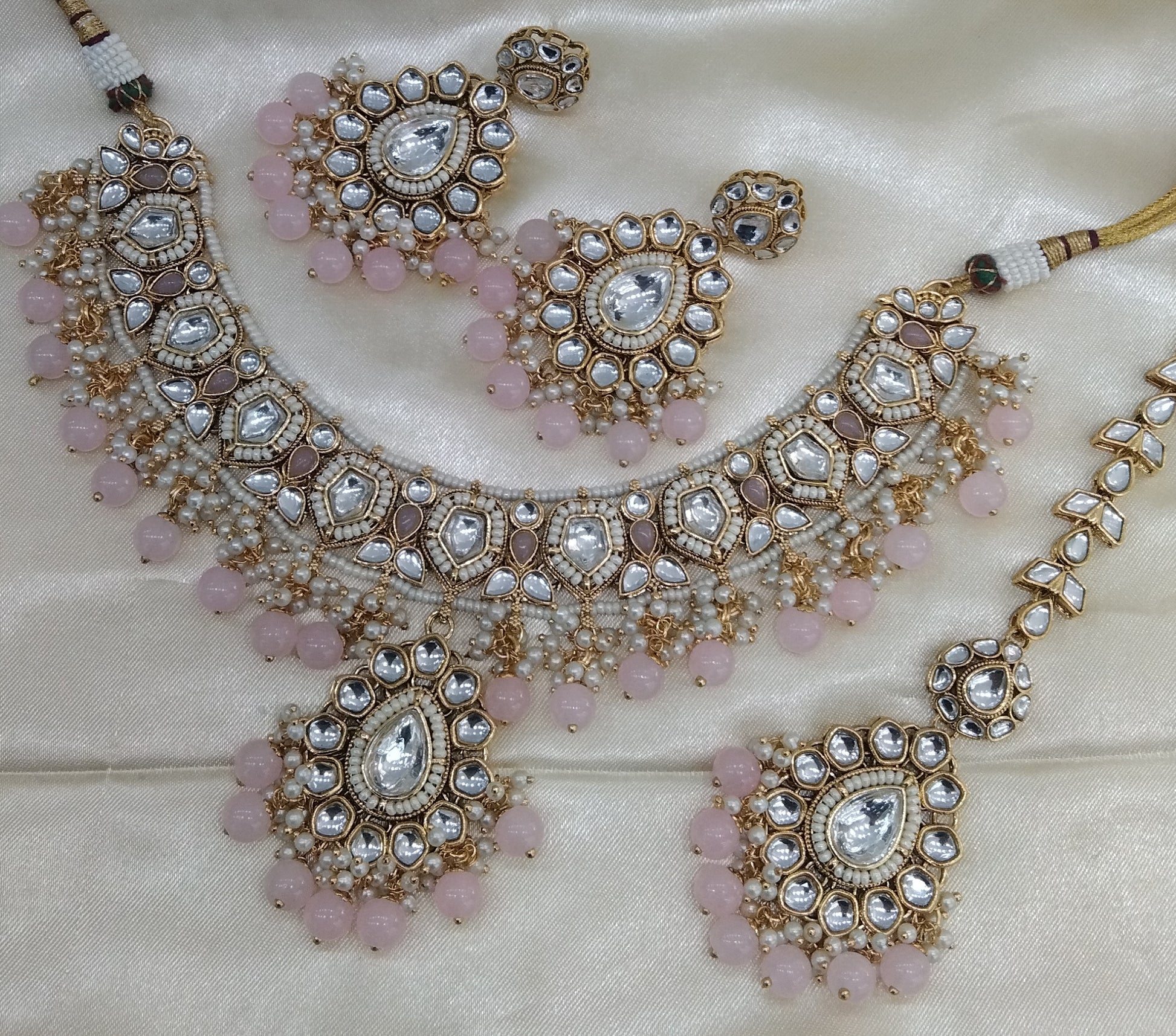 Mannu Sky Blue Pink kundan Indian Necklace Jewellery Set