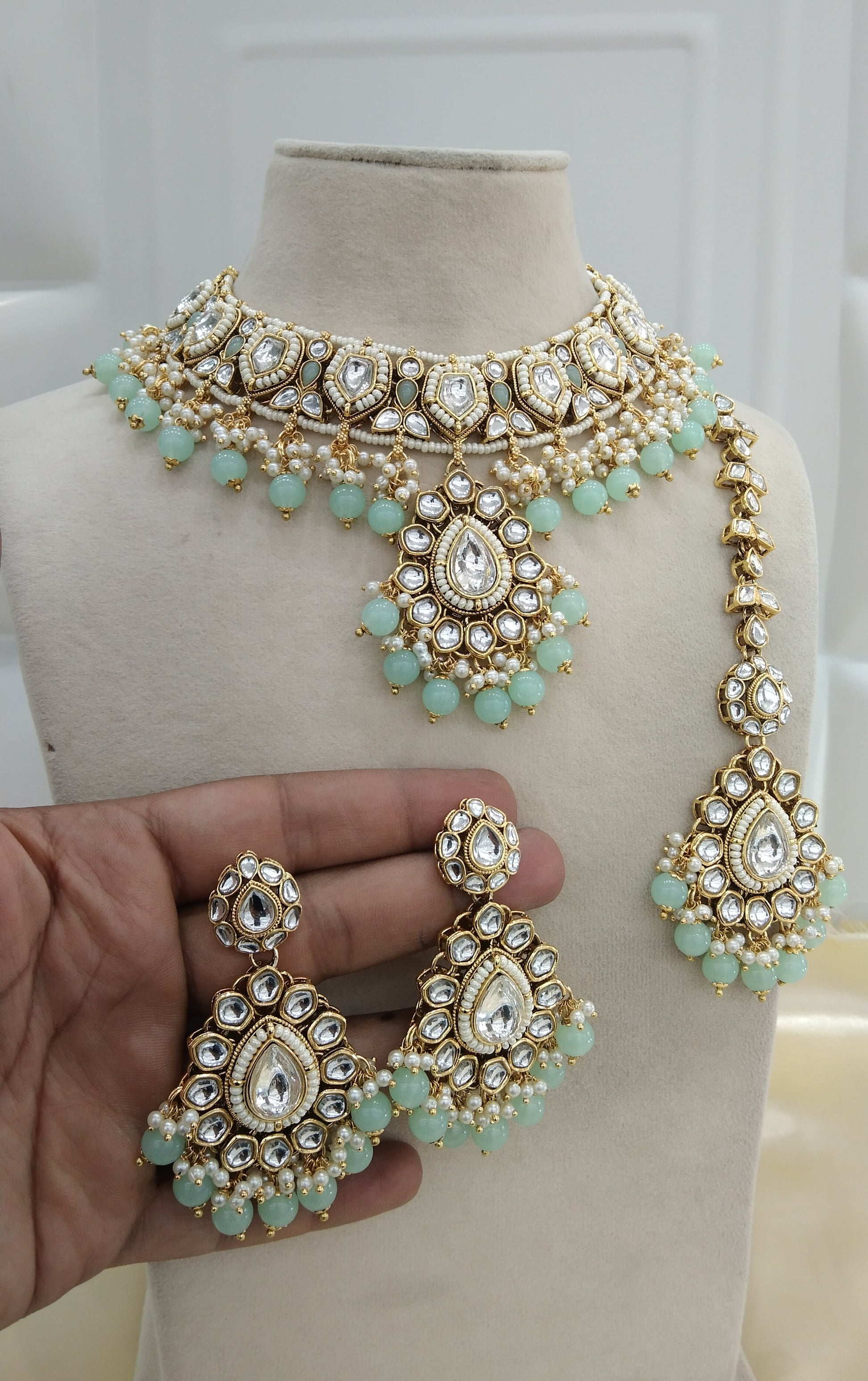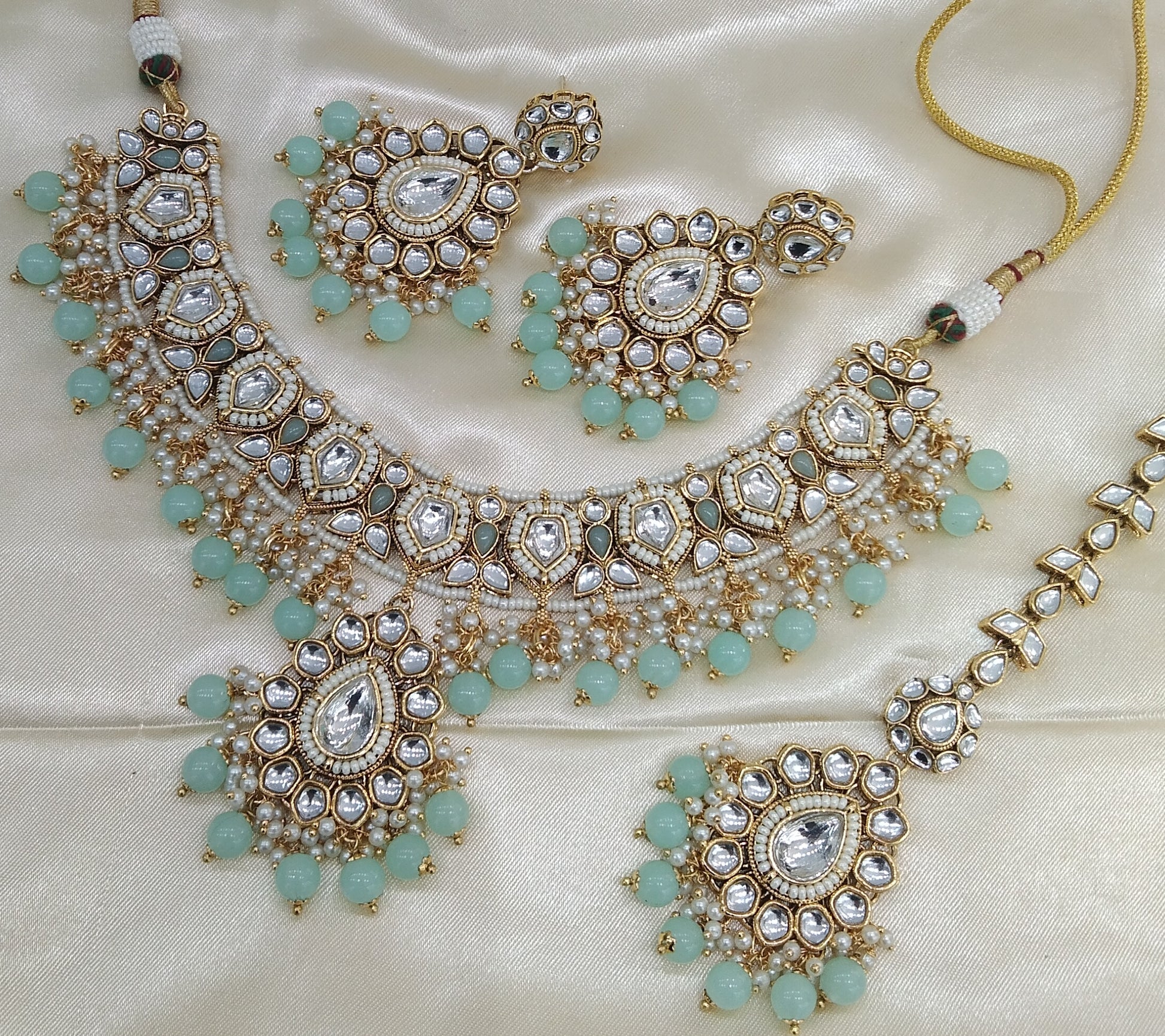 Mannu Pista kundan Indian Necklace Jewellery Set
