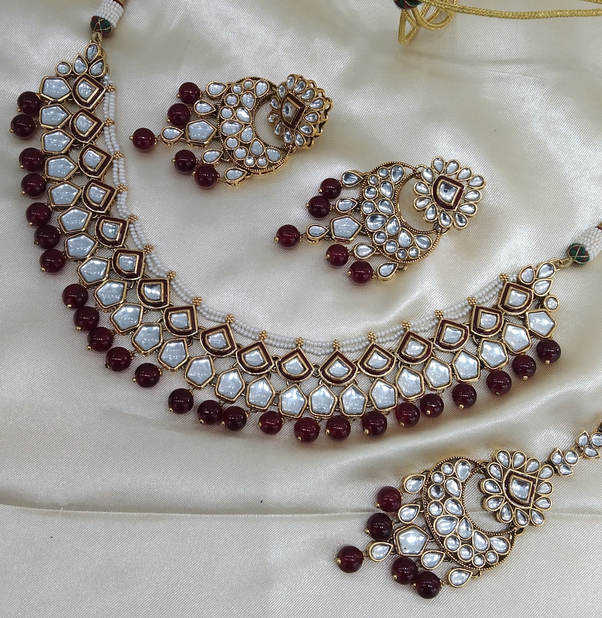 *Kundan necklace set with earrings and tikka.