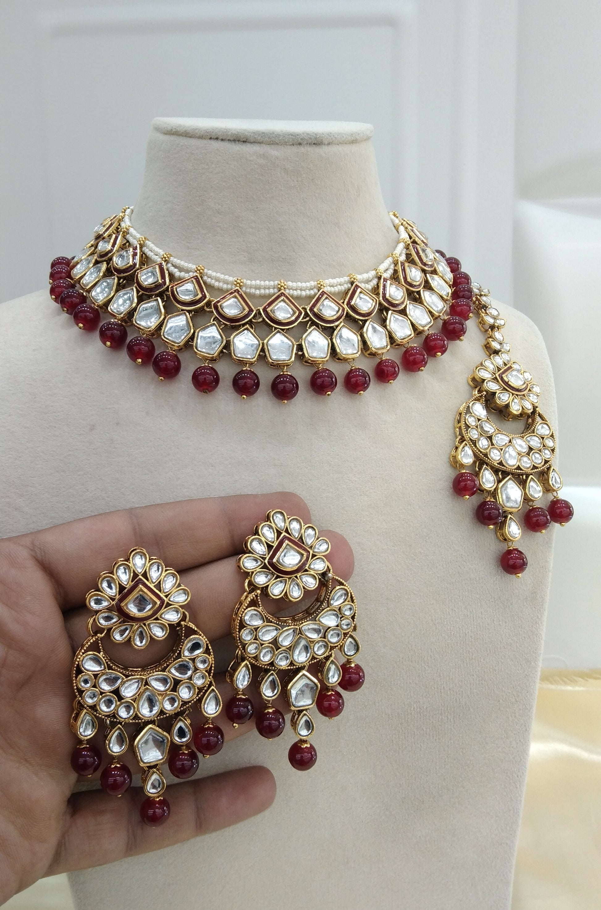 Manvi Maroon kundan Indian Necklace Jewellery Set
