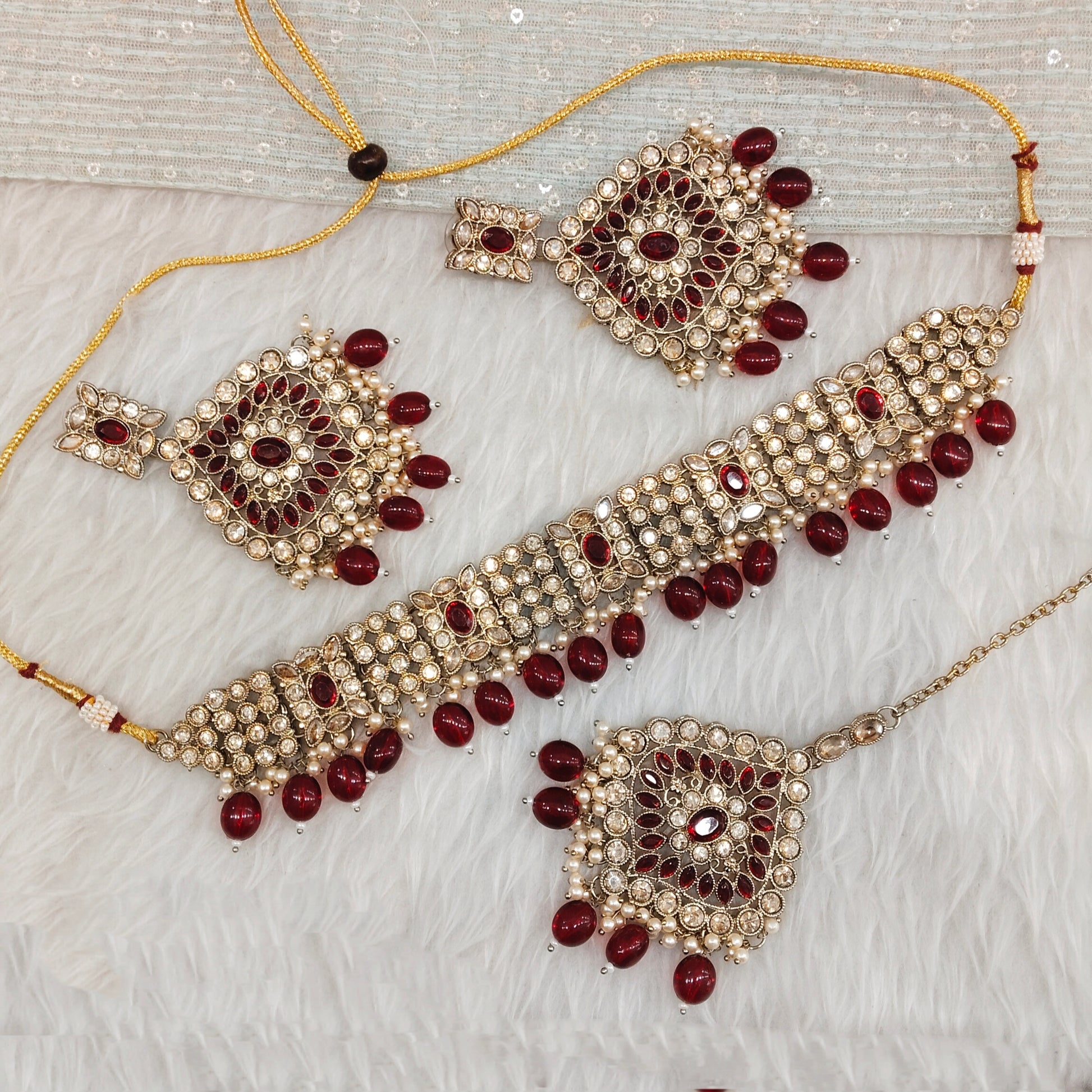 Maroon Antique Gold Choker Jewellery Hanish Set
