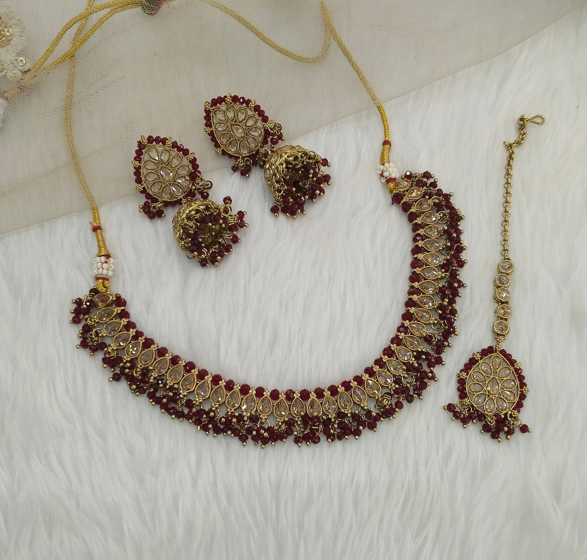 * Necklace set with earrings and tikka.