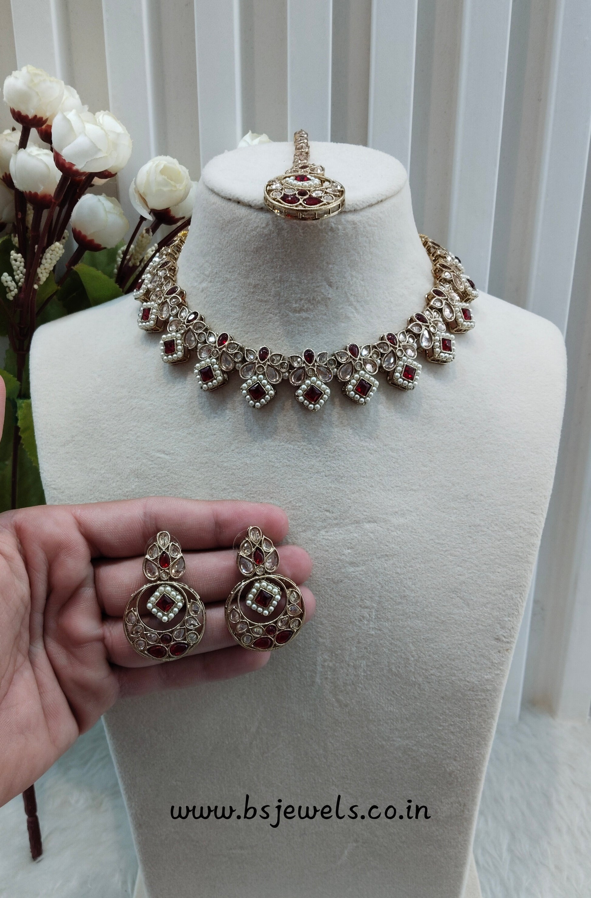 *Necklace set with earrings and tikka.