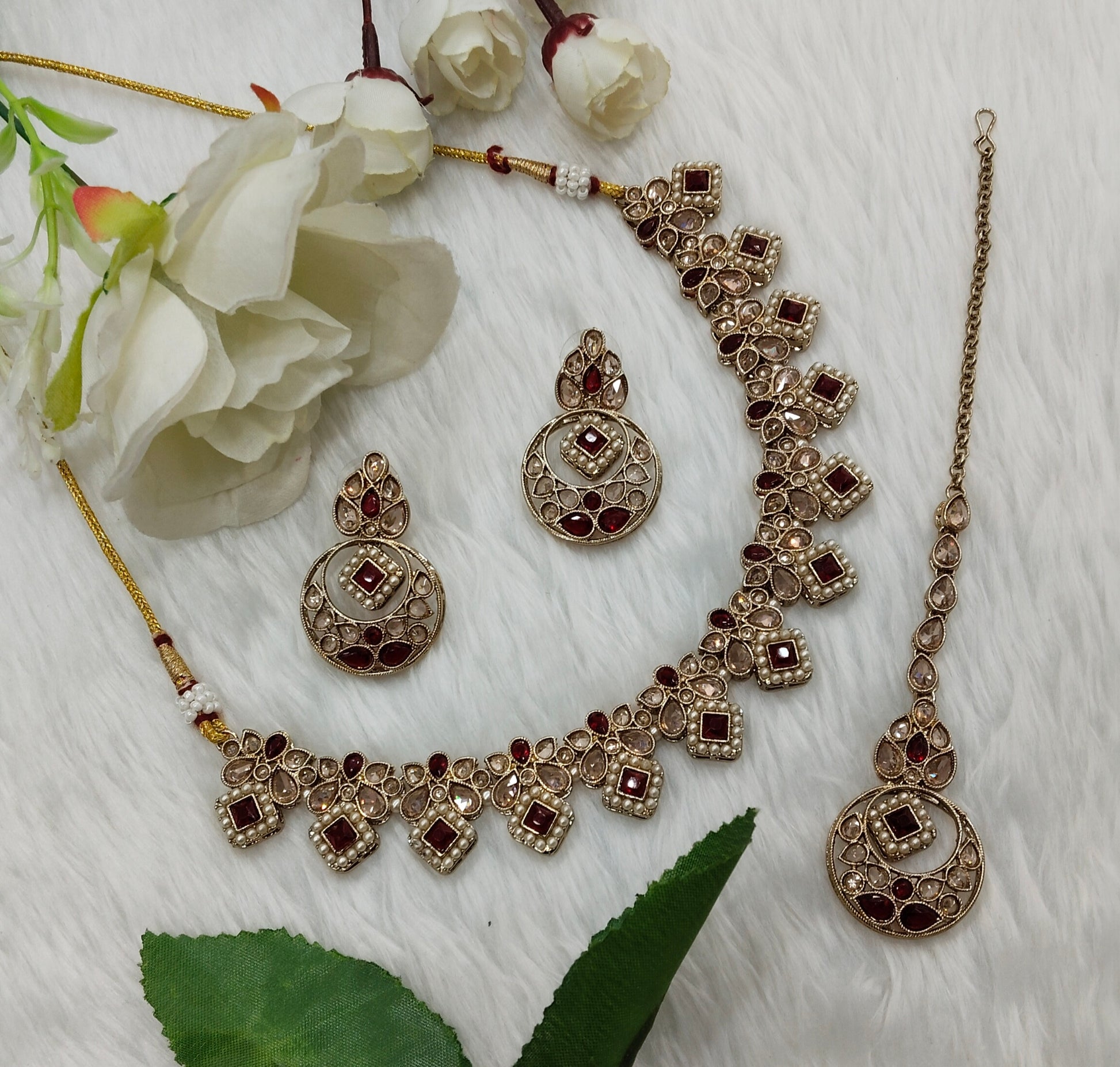 Maroon Antique Gold Necklace Jewellery Race Set