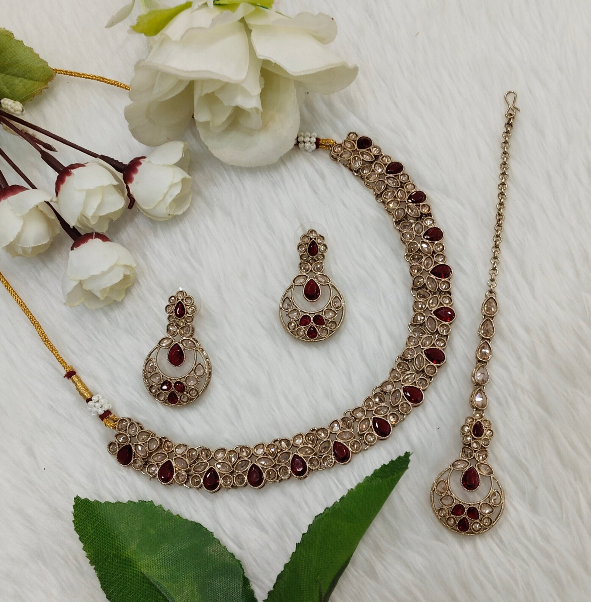 Maroon Antique Gold Necklace Jewellery Race Set