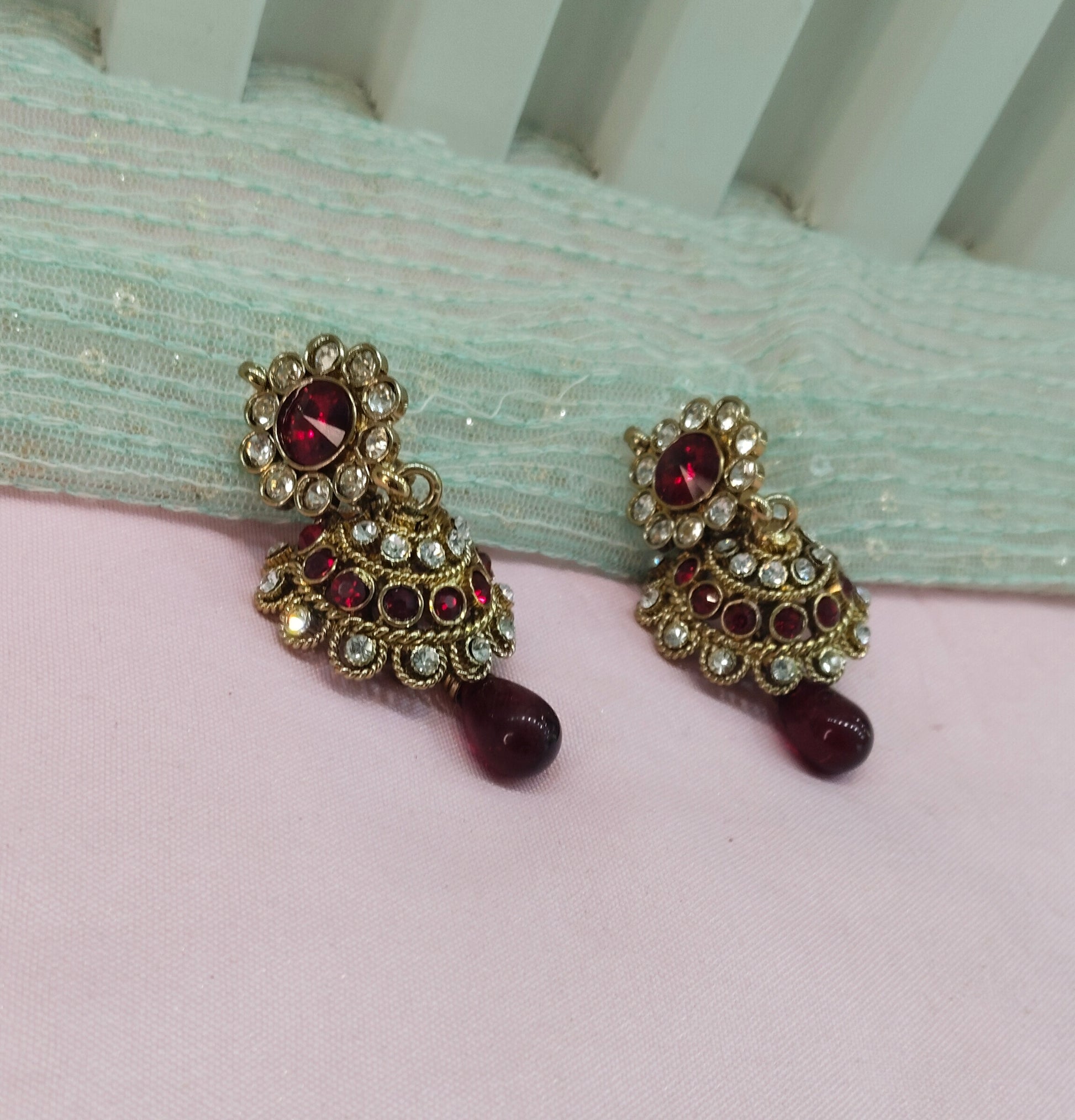 Maroon Bollywood Sachin Jhumki Earrings Jewellery